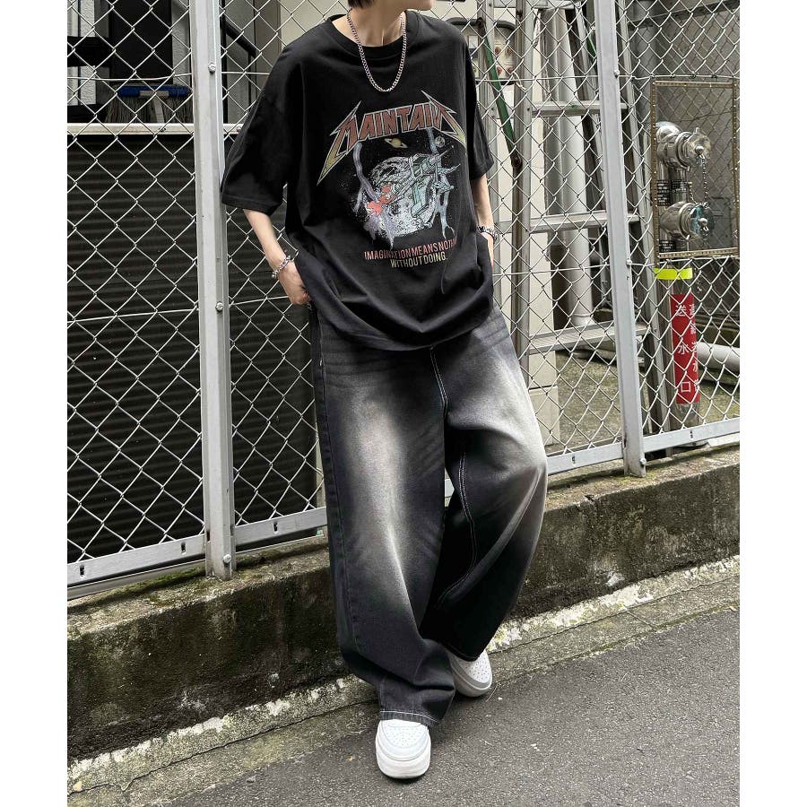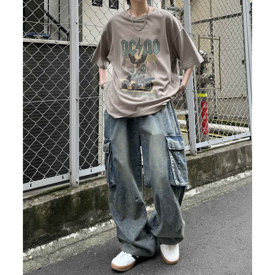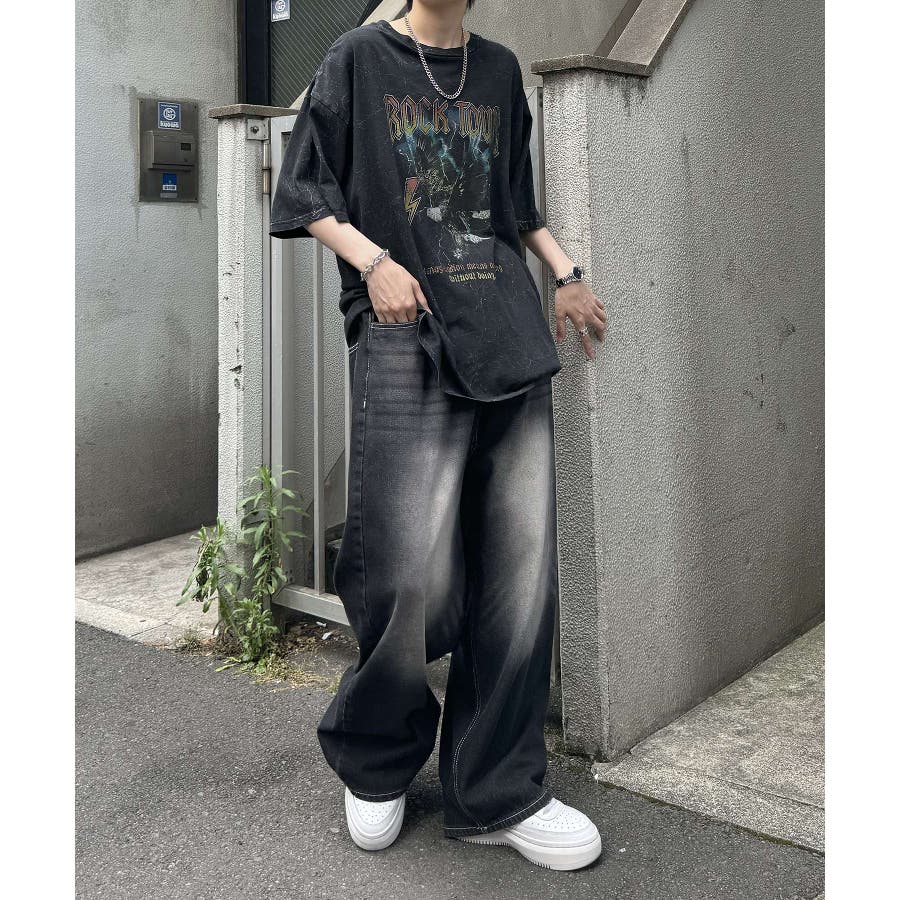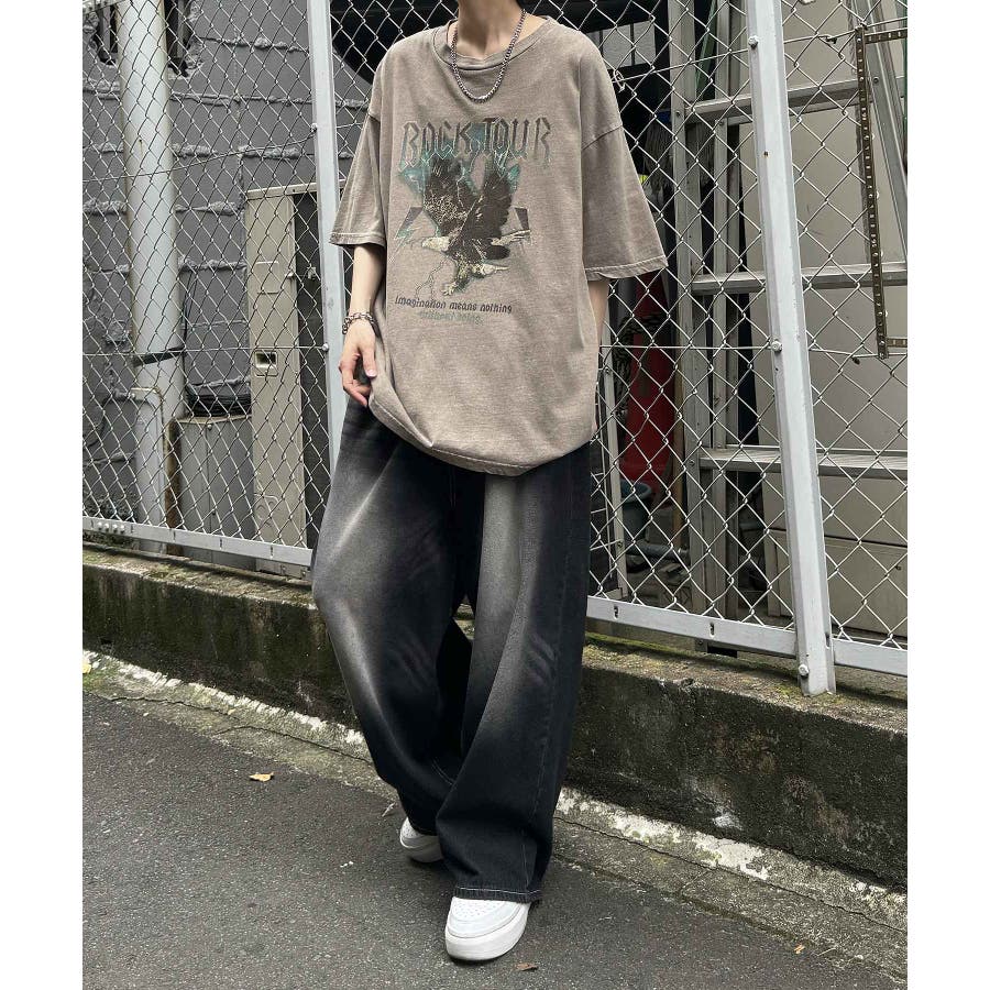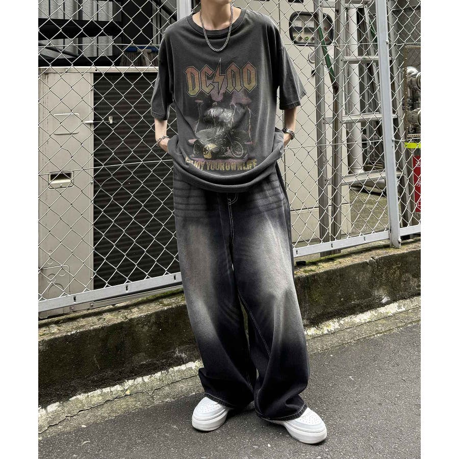 フリンジデニムやオーバーダイデニム、ダメージデニムを合わせたグランジカジュアルスタイルも。