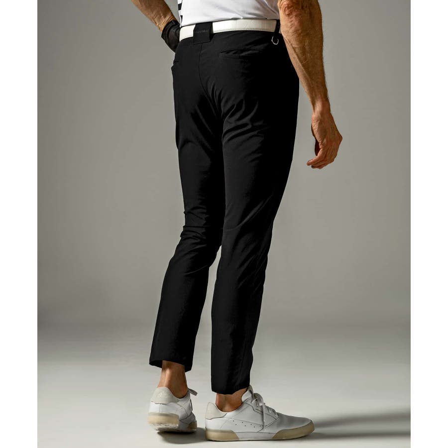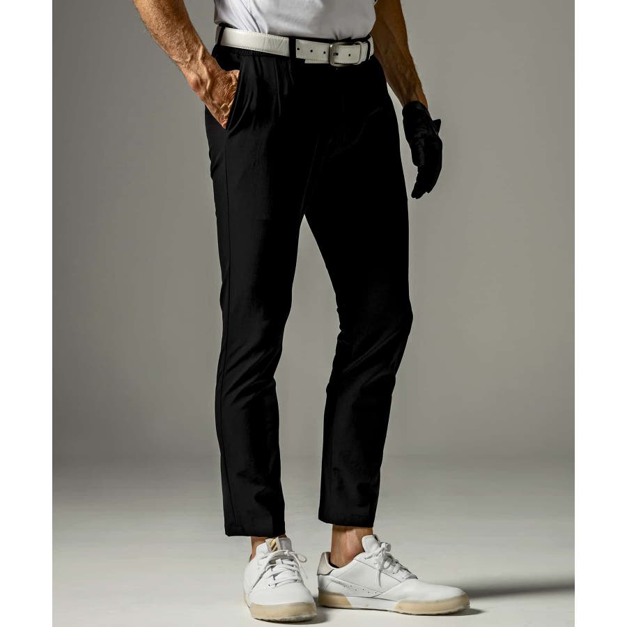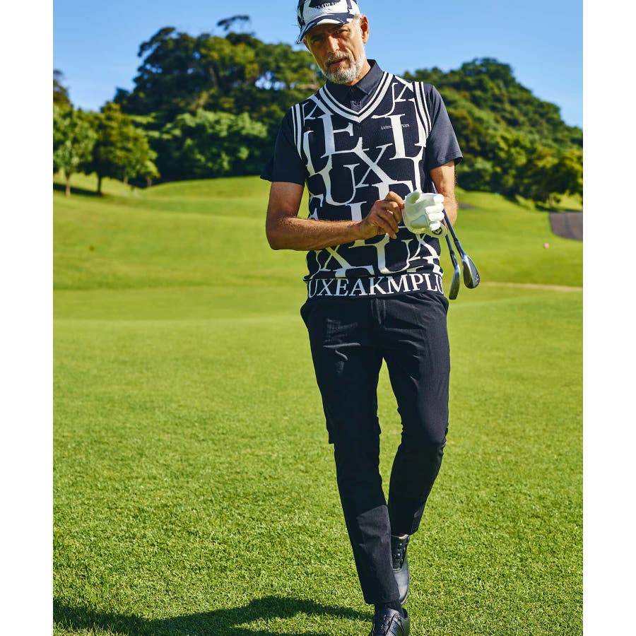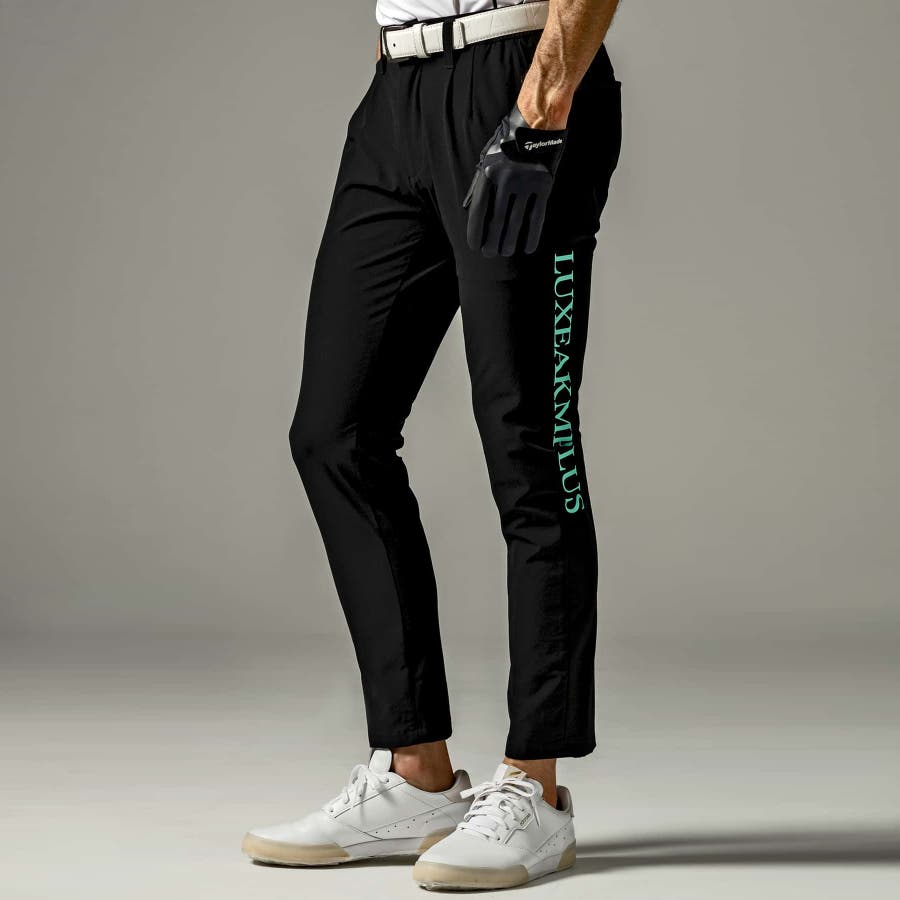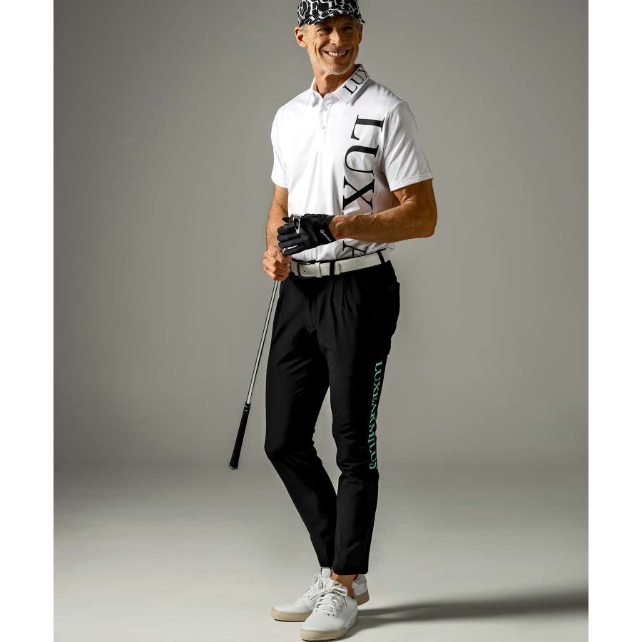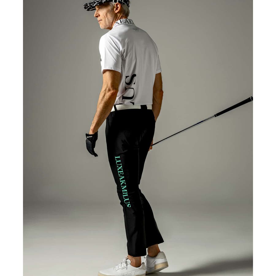 サイドロゴデザインがスポーティかつラグジュアリーな表情を形成するストレッチパンツ。
