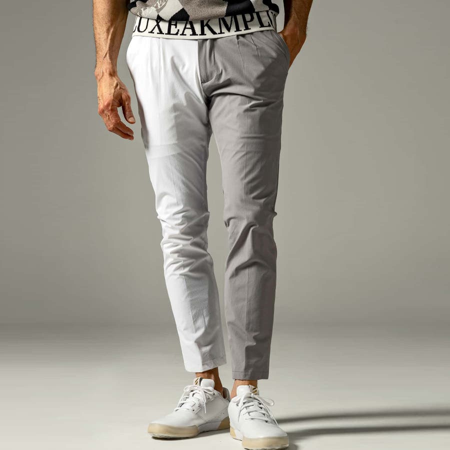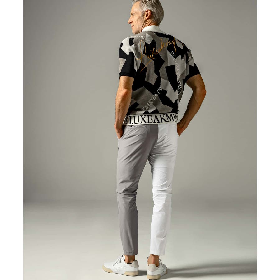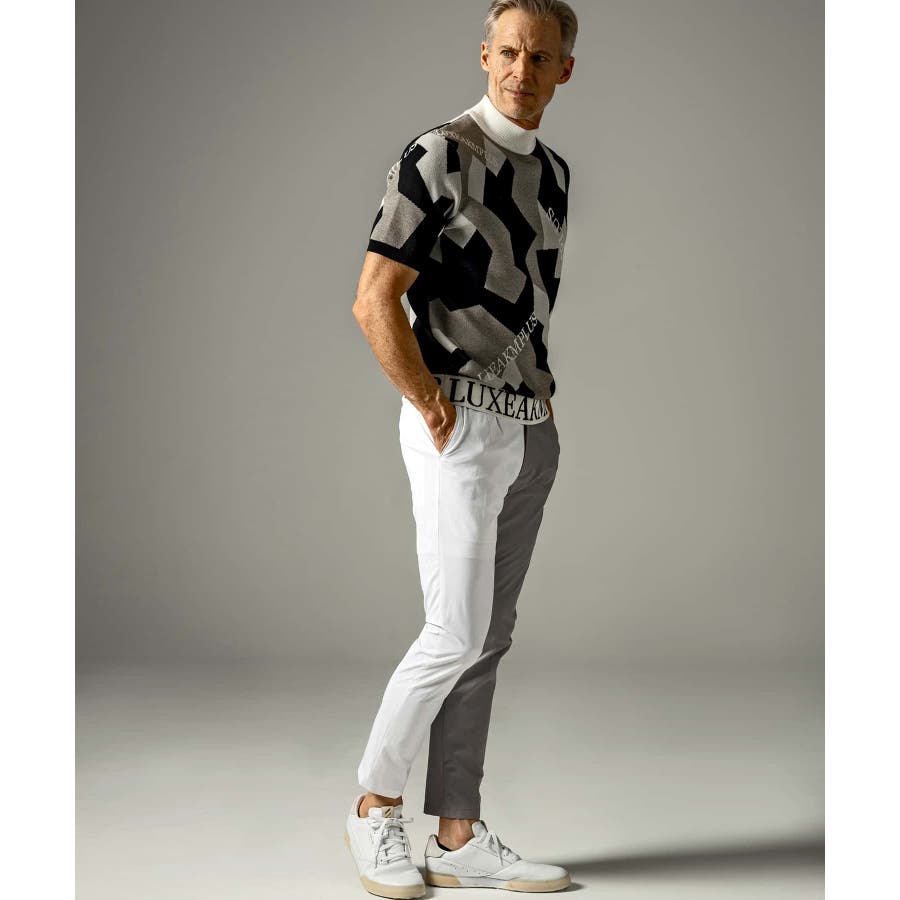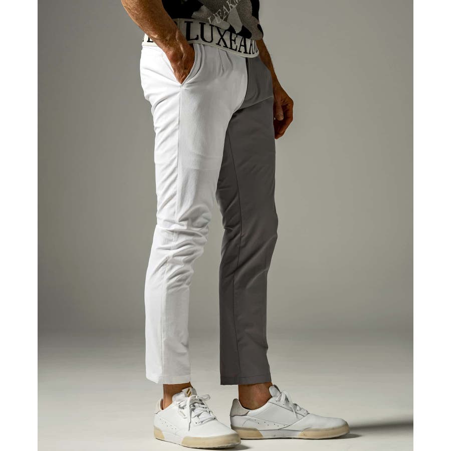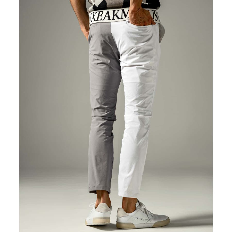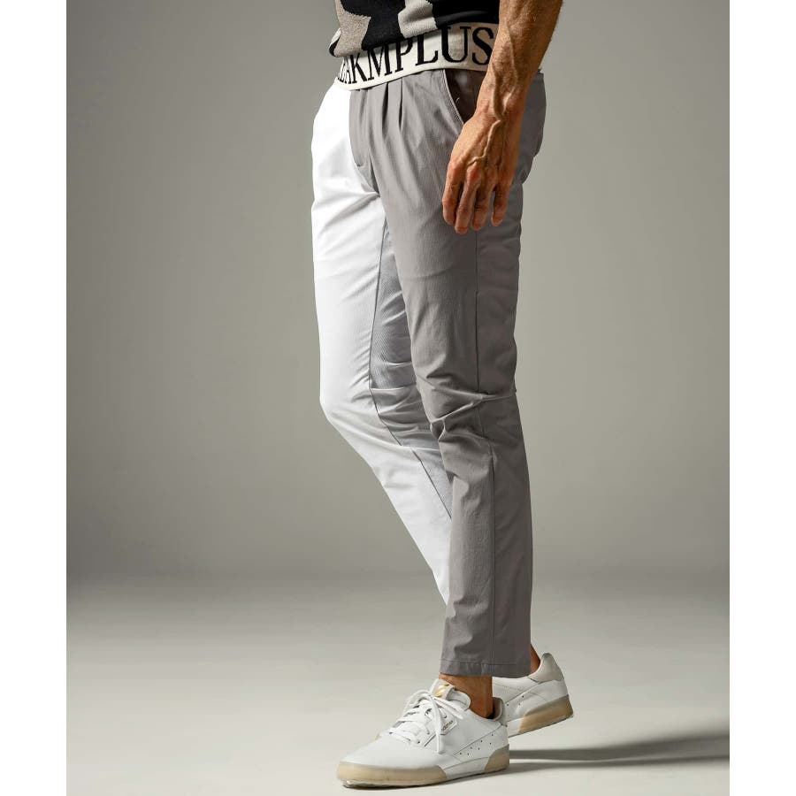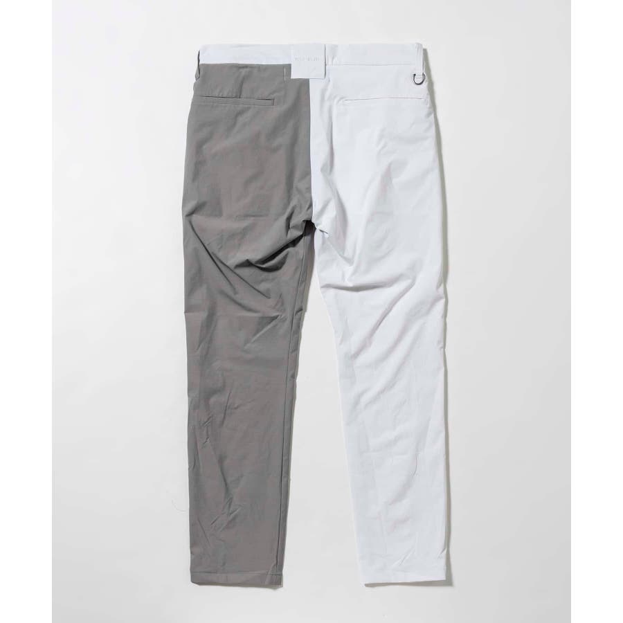 大胆に色を切り替えたバイカラーデザインがスタイリッシュなスラックス。