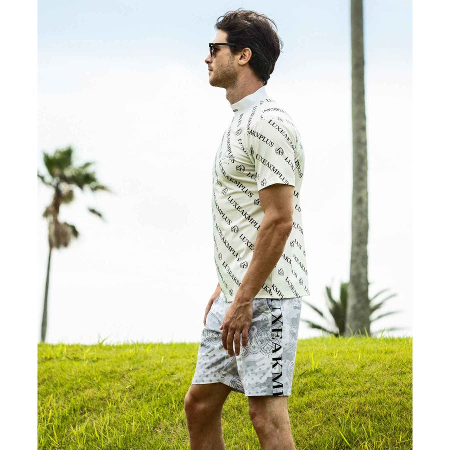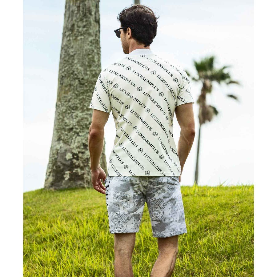 ブラック、ホワイトのモノトーンなカラーに加えて、コーディネートのアクセントになるLUXEAKMオリジナルのカペイズリーカモ柄デザイン(2色)の4色展開。