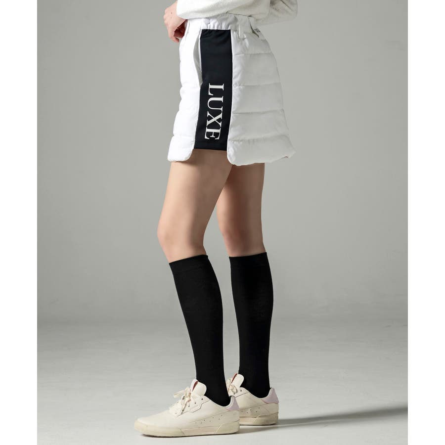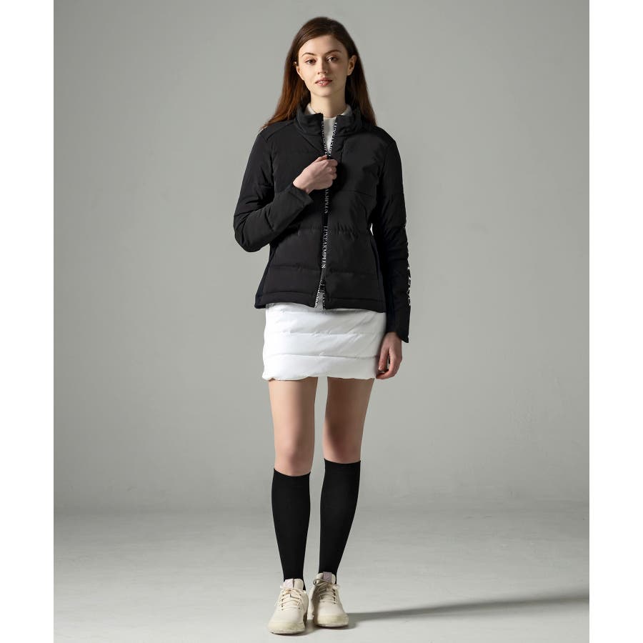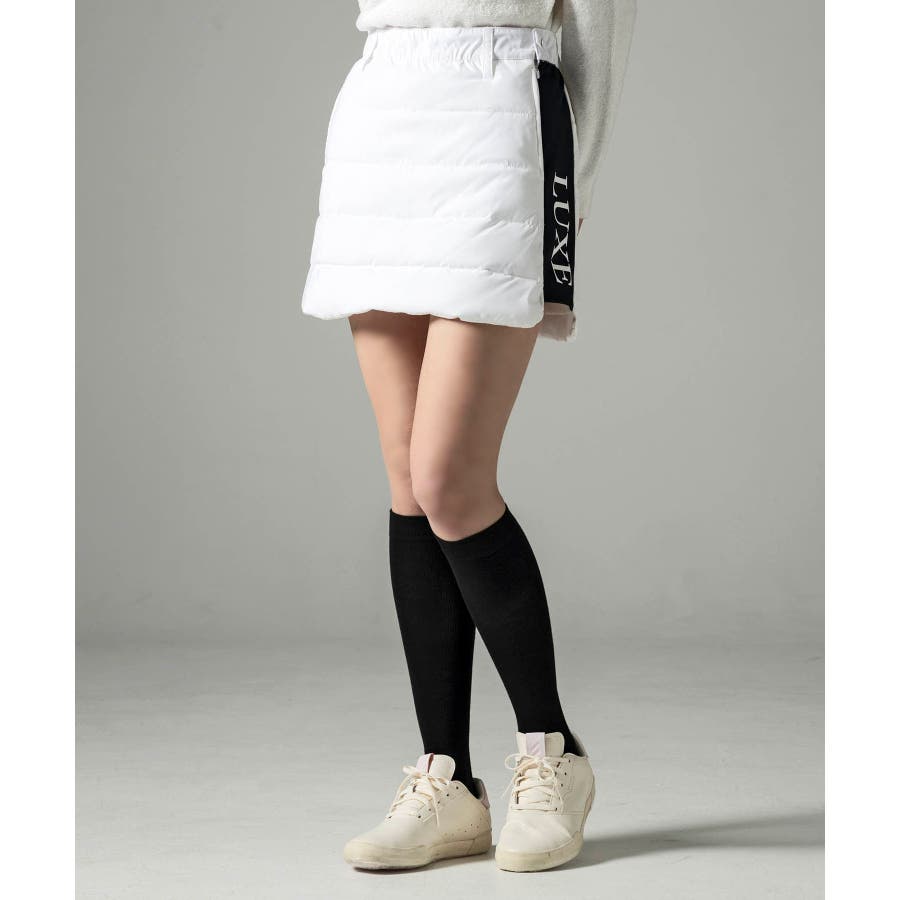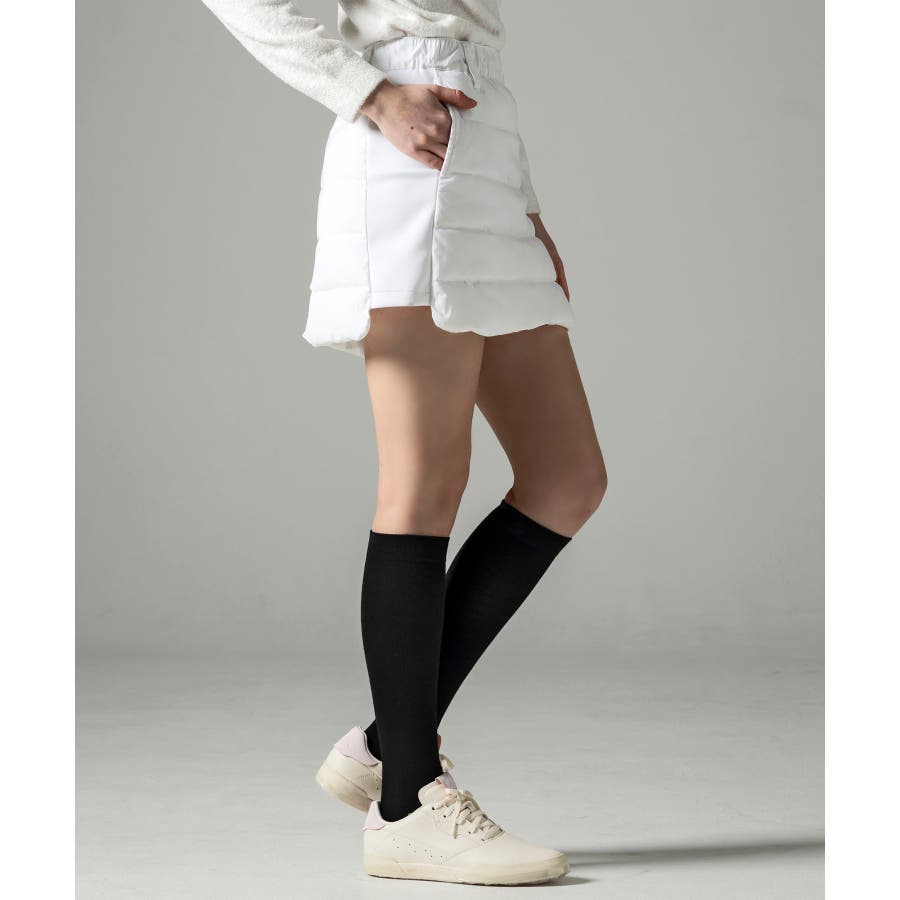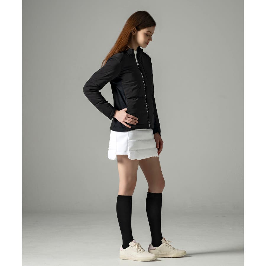 ストレッチ性の高いタフタ素材を使用した中綿スカート。