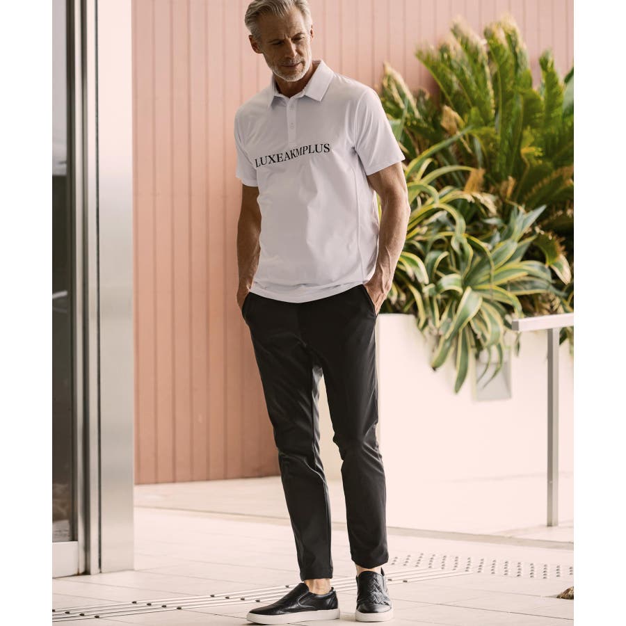 フロントにブランドロゴを配したベーシックなポロシャツ。