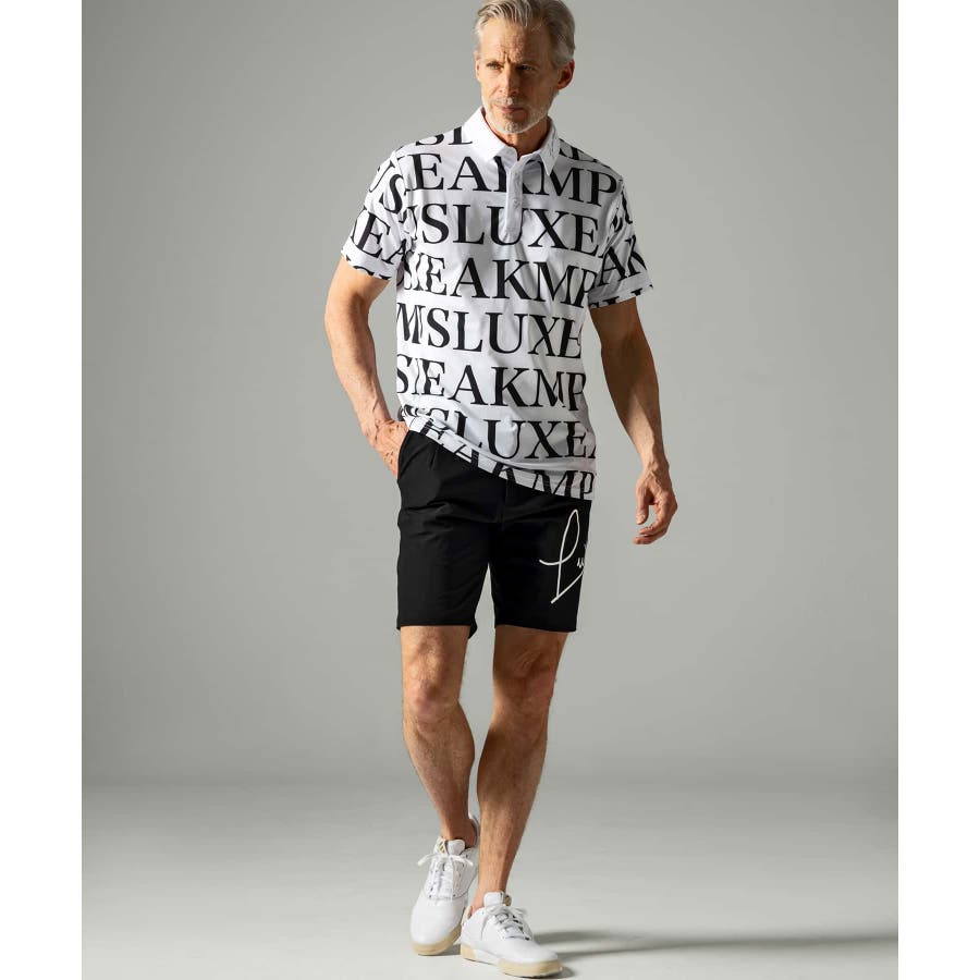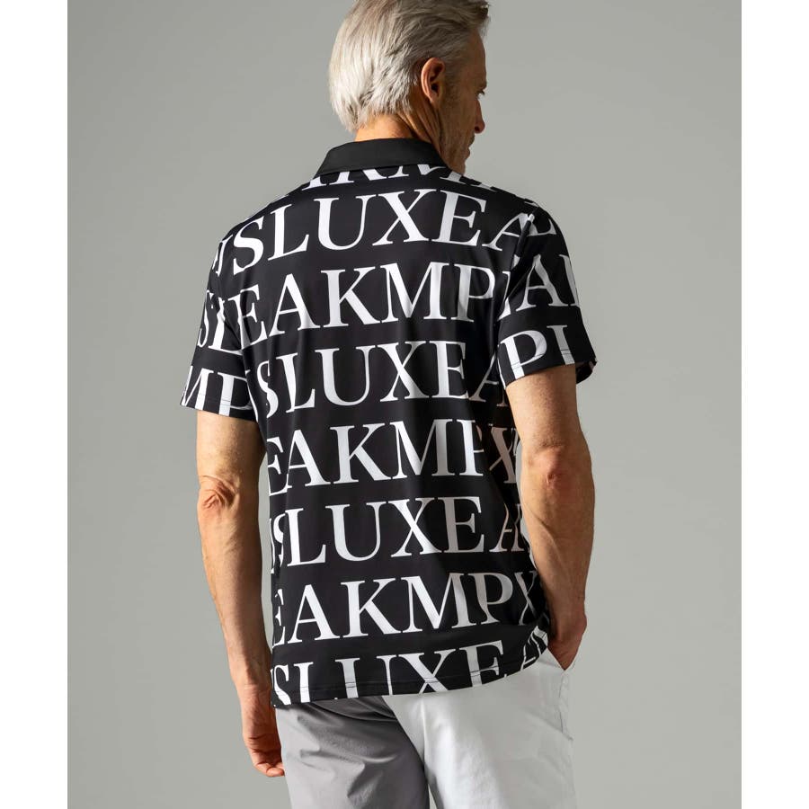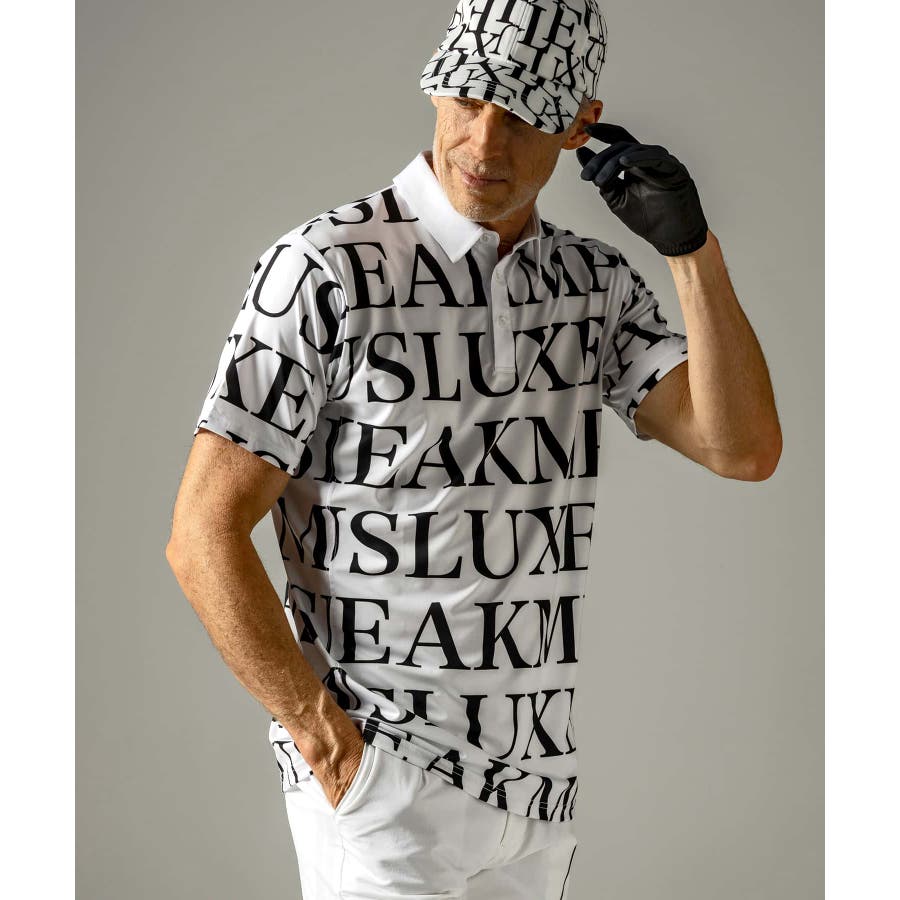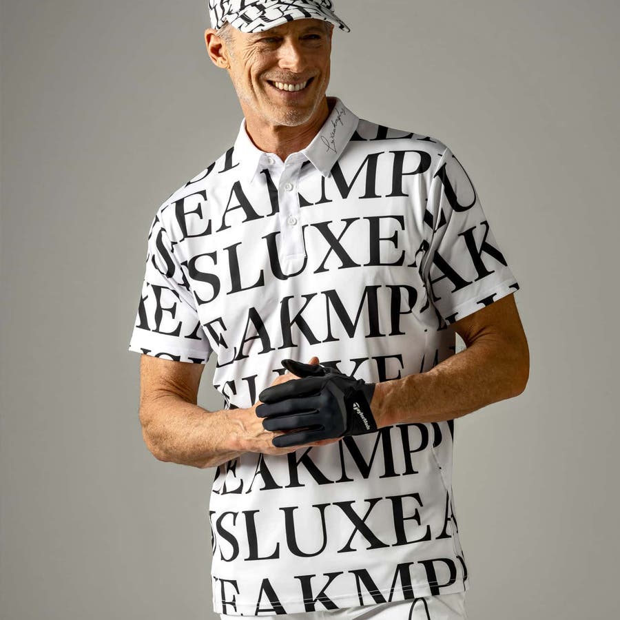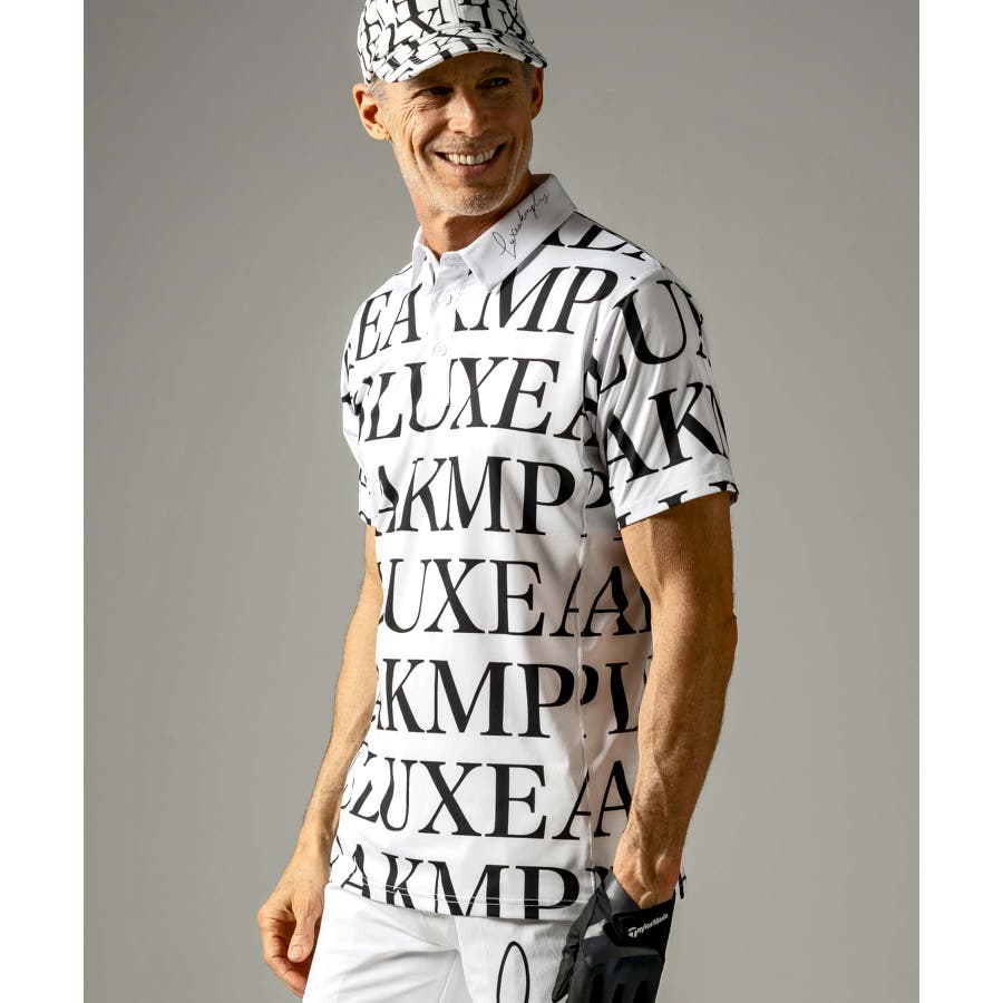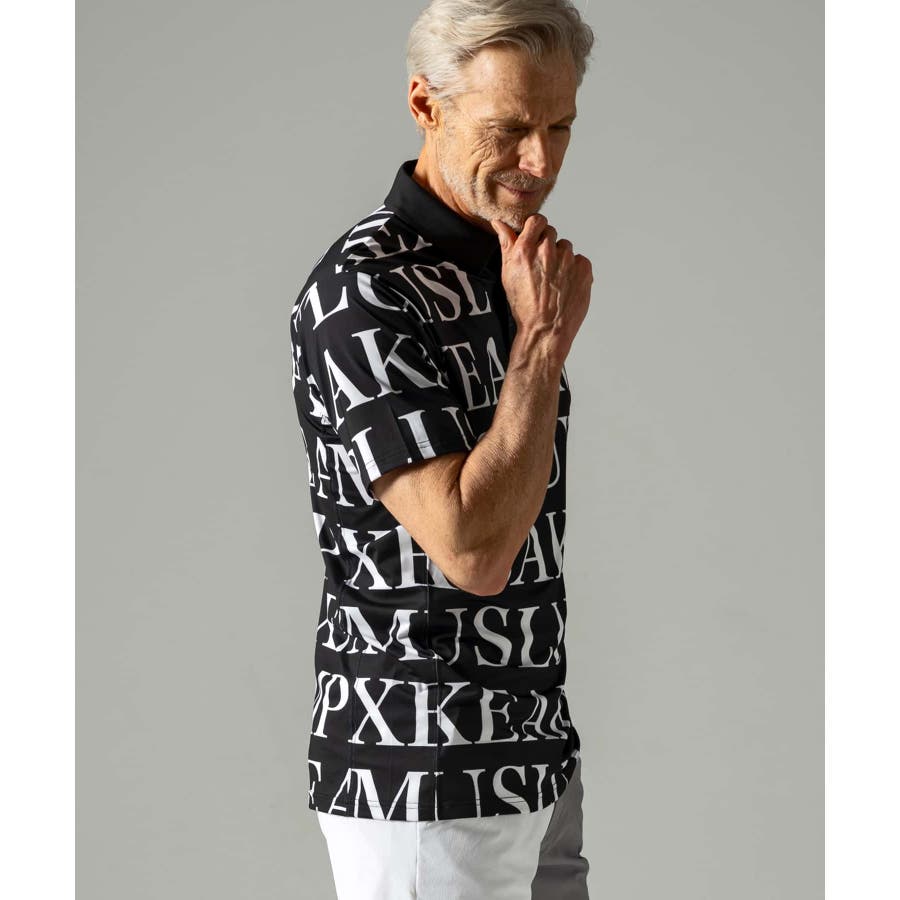 ブランドロゴを全面に配置した総柄デザインが目を惹くポロシャツ。