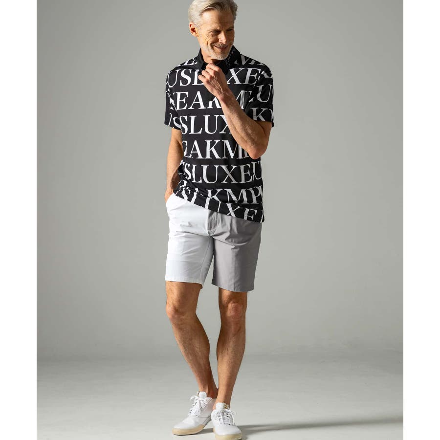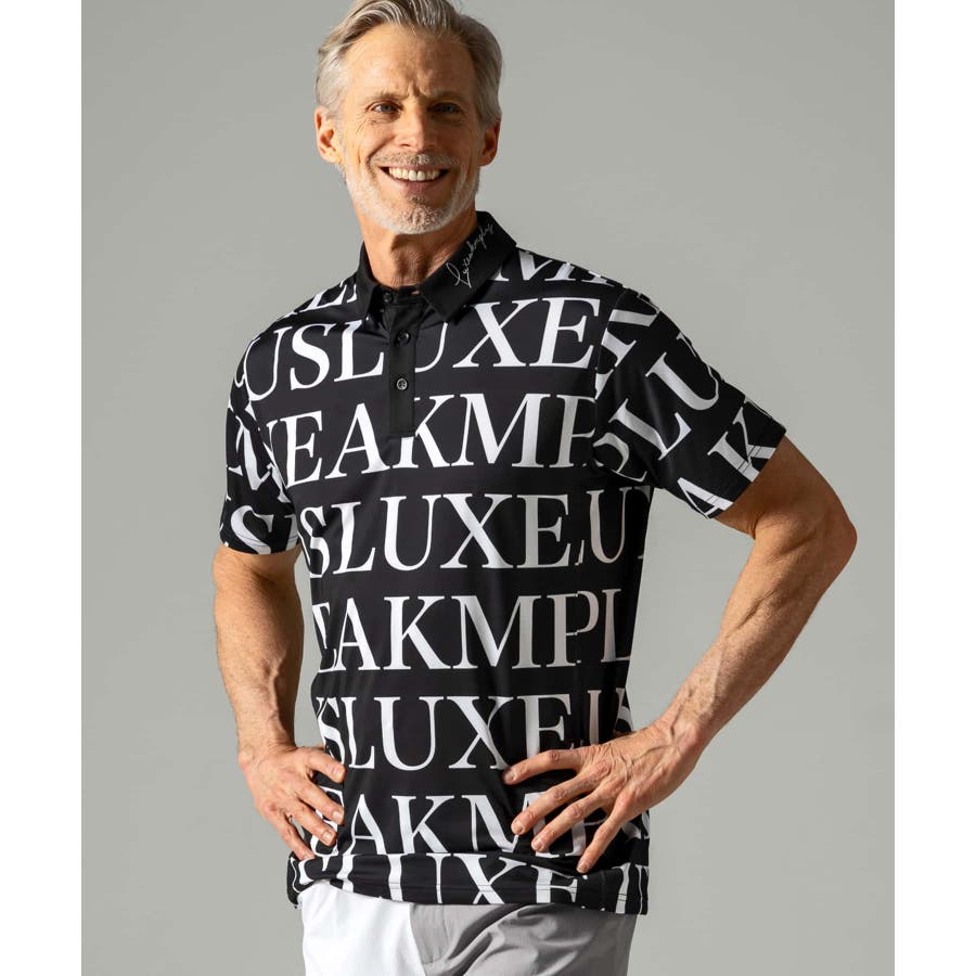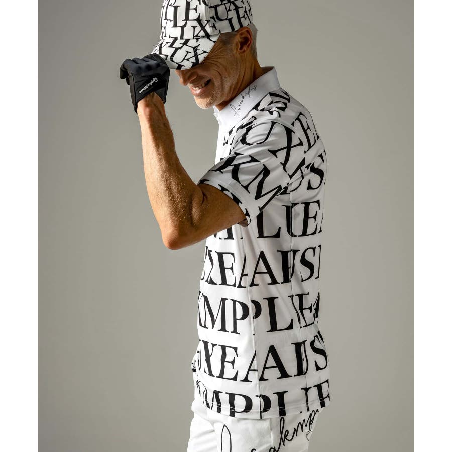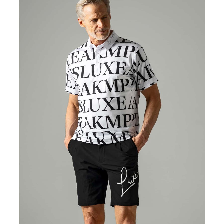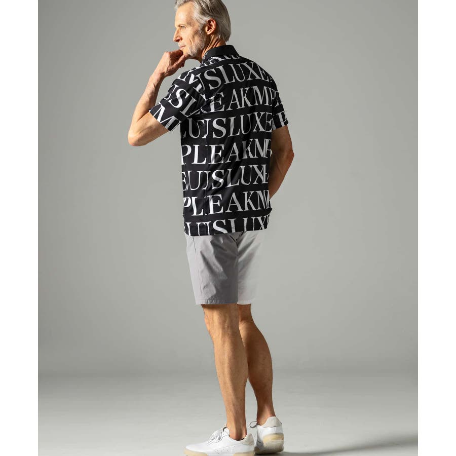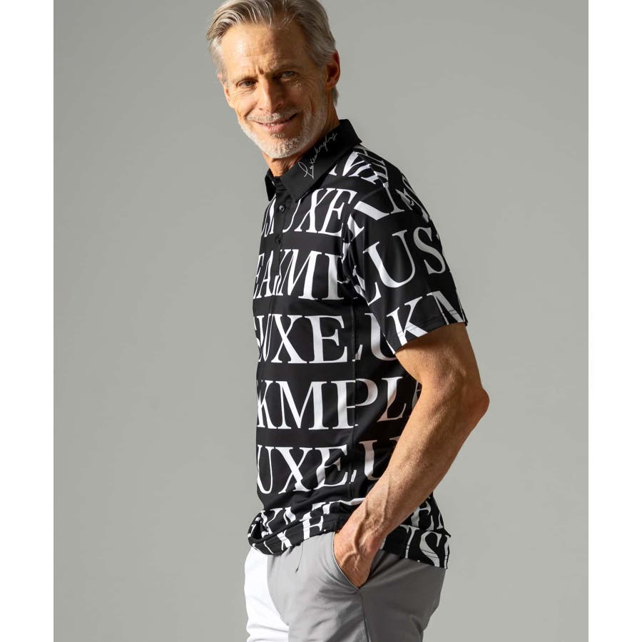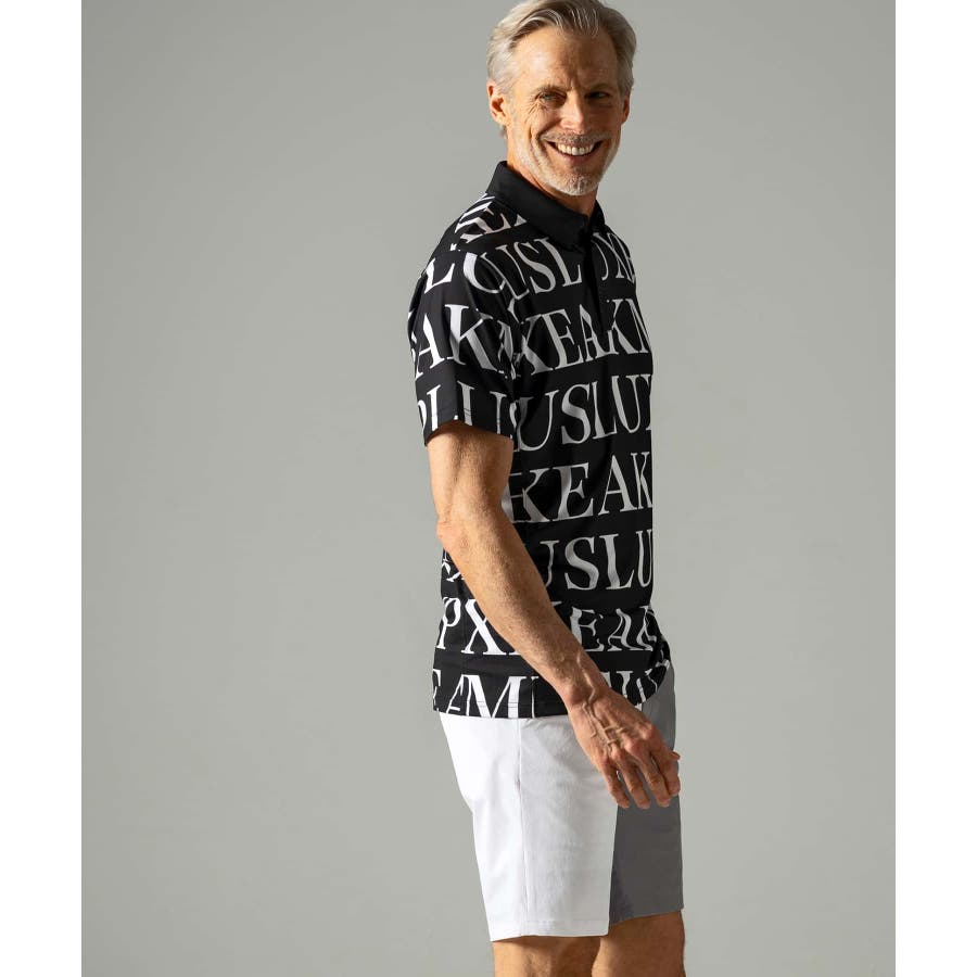 ブランドロゴを全面に配置した総柄デザインが目を惹くポロシャツ。