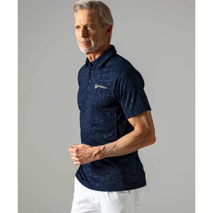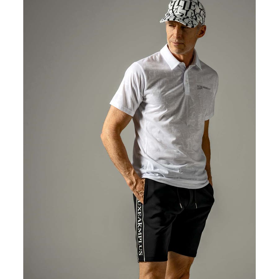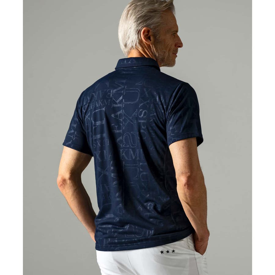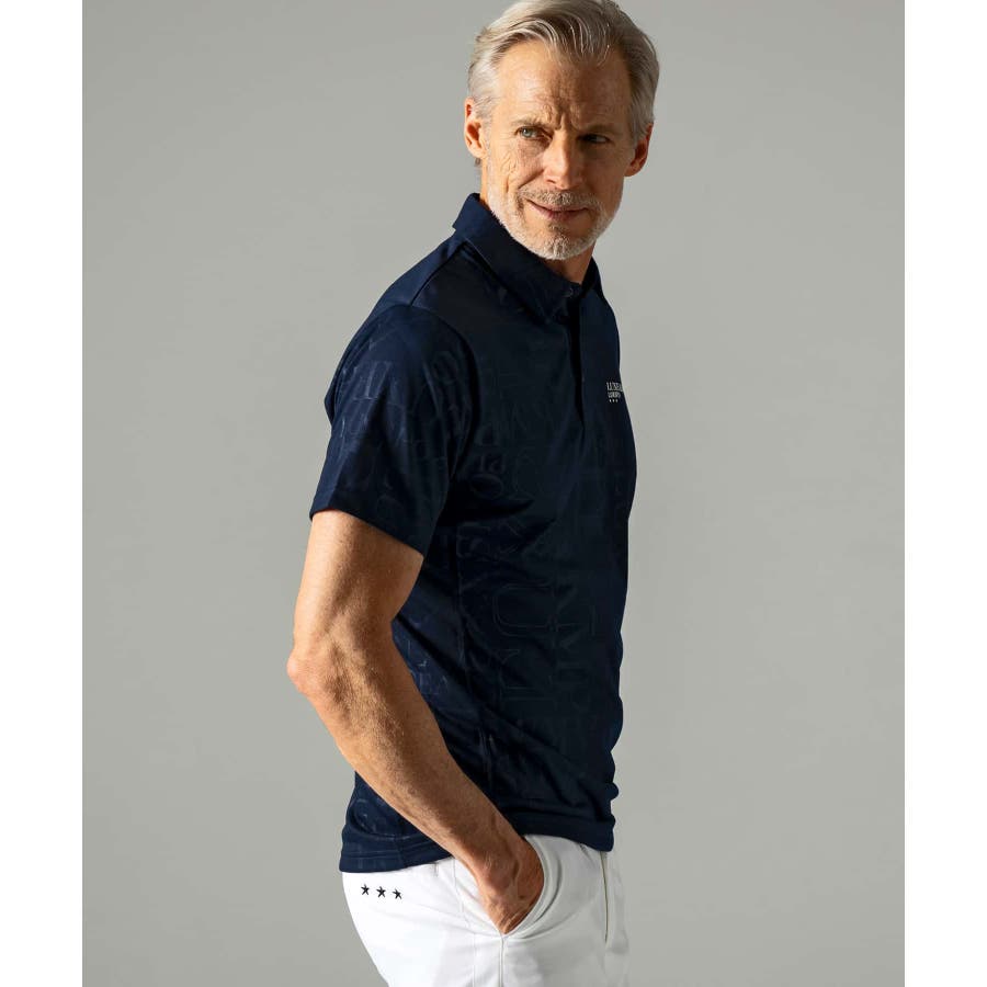 ブランドロゴを全面に配置した総柄デザインが目を惹くポロシャツ。