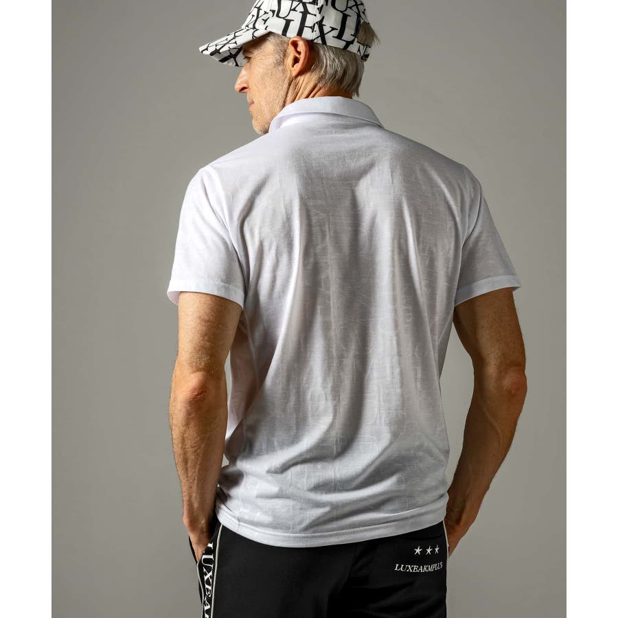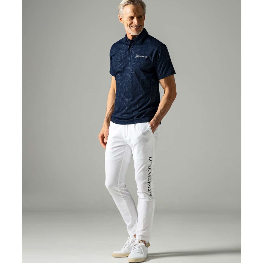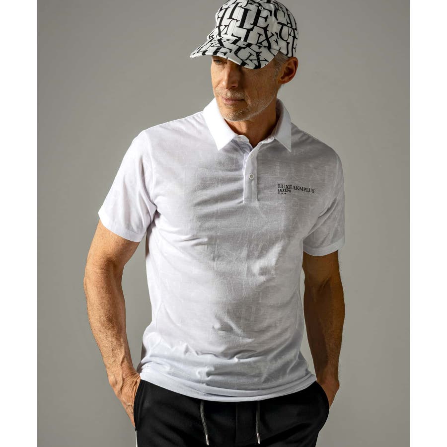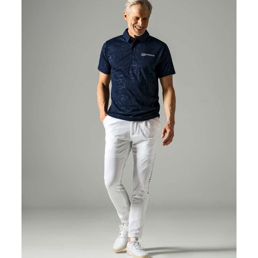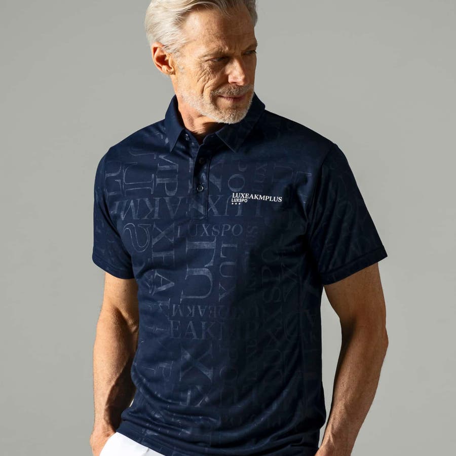 ブランドロゴを全面に配置した総柄デザインが目を惹くポロシャツ。