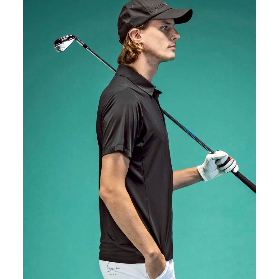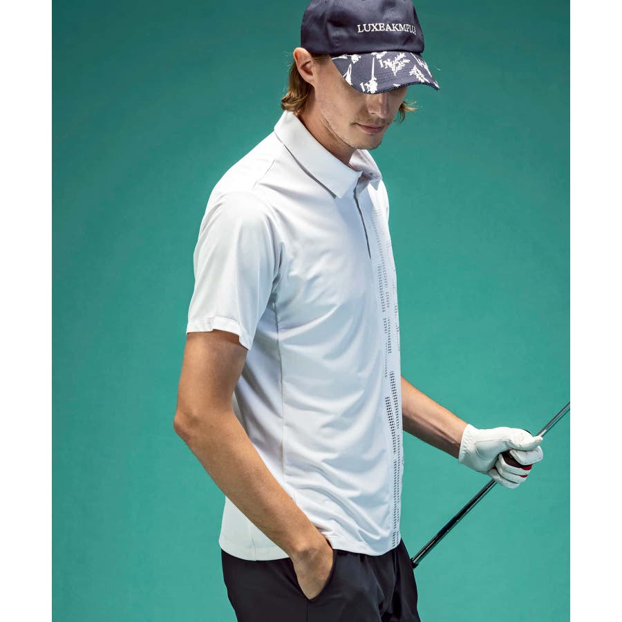 左右に異なる機能性素材を使用し、ドッキングさせたオリジナルな半袖ポロシャツです。