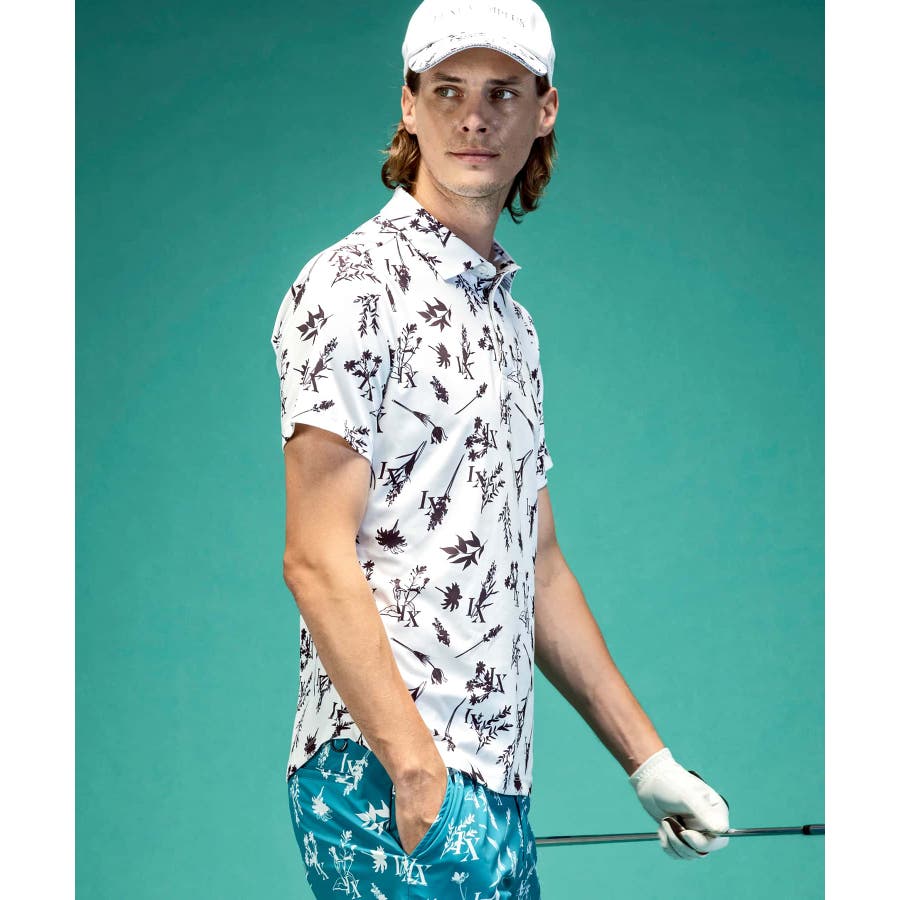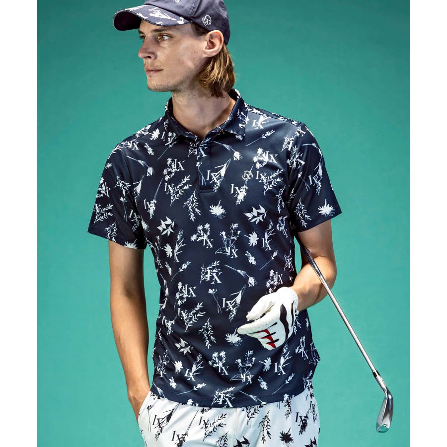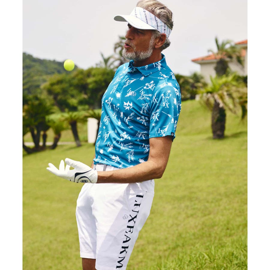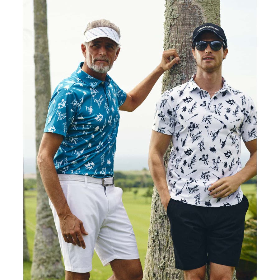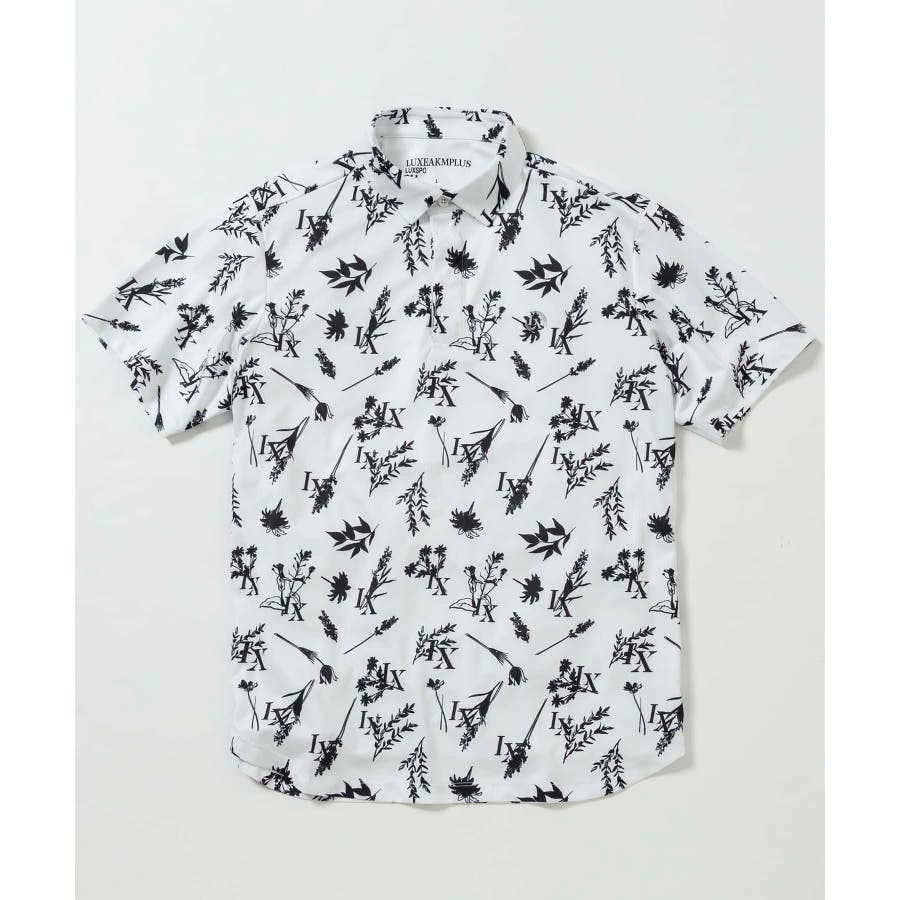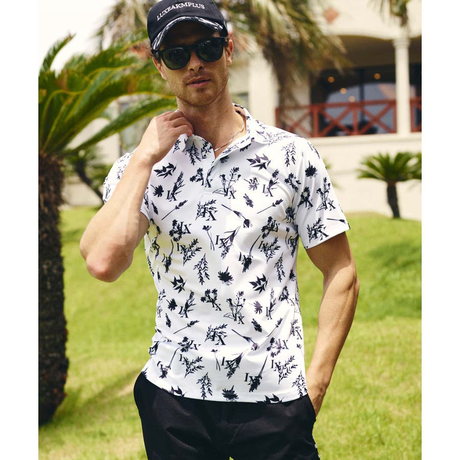 LUXEオリジナルの上品なボタニカル柄のポロシャツ。