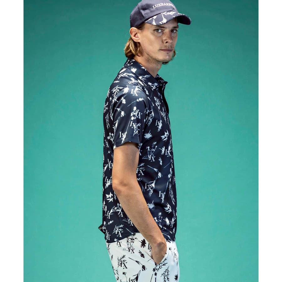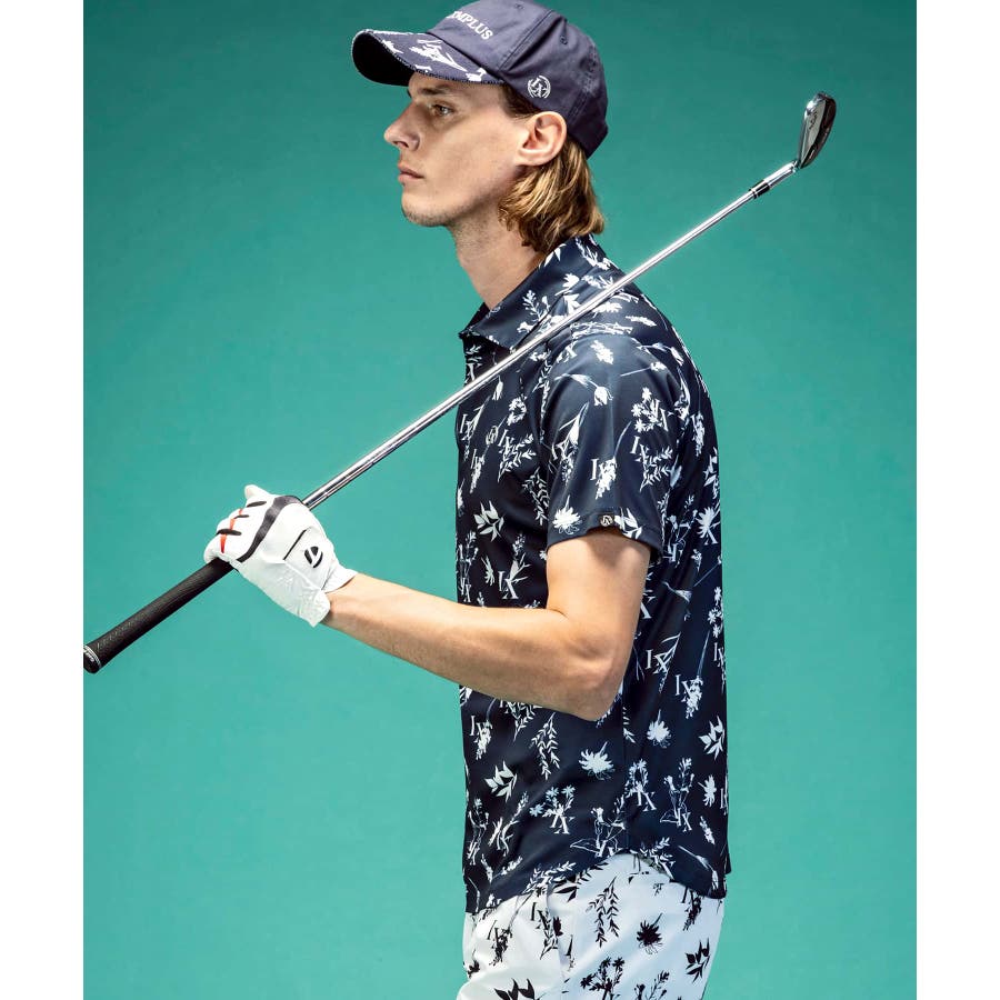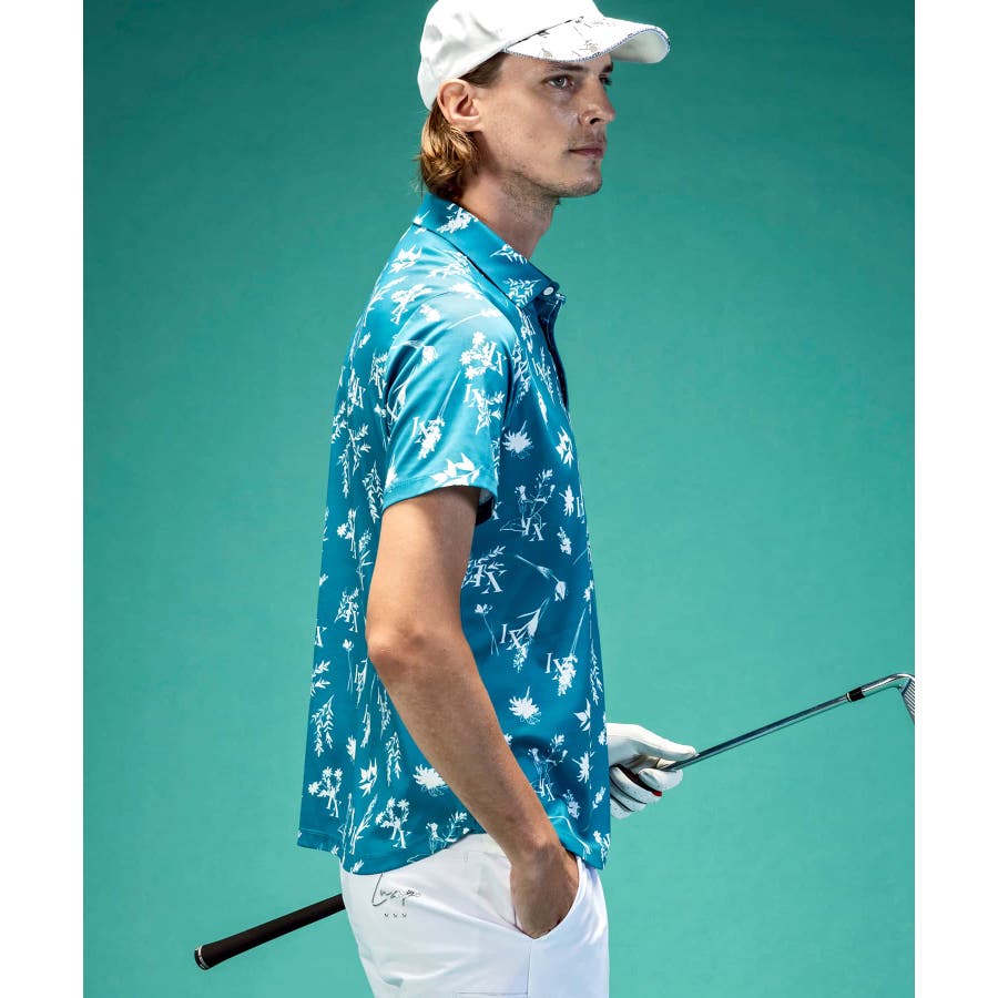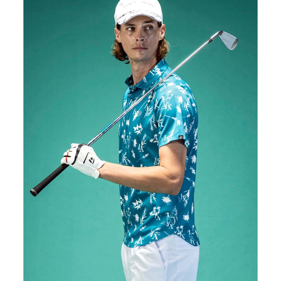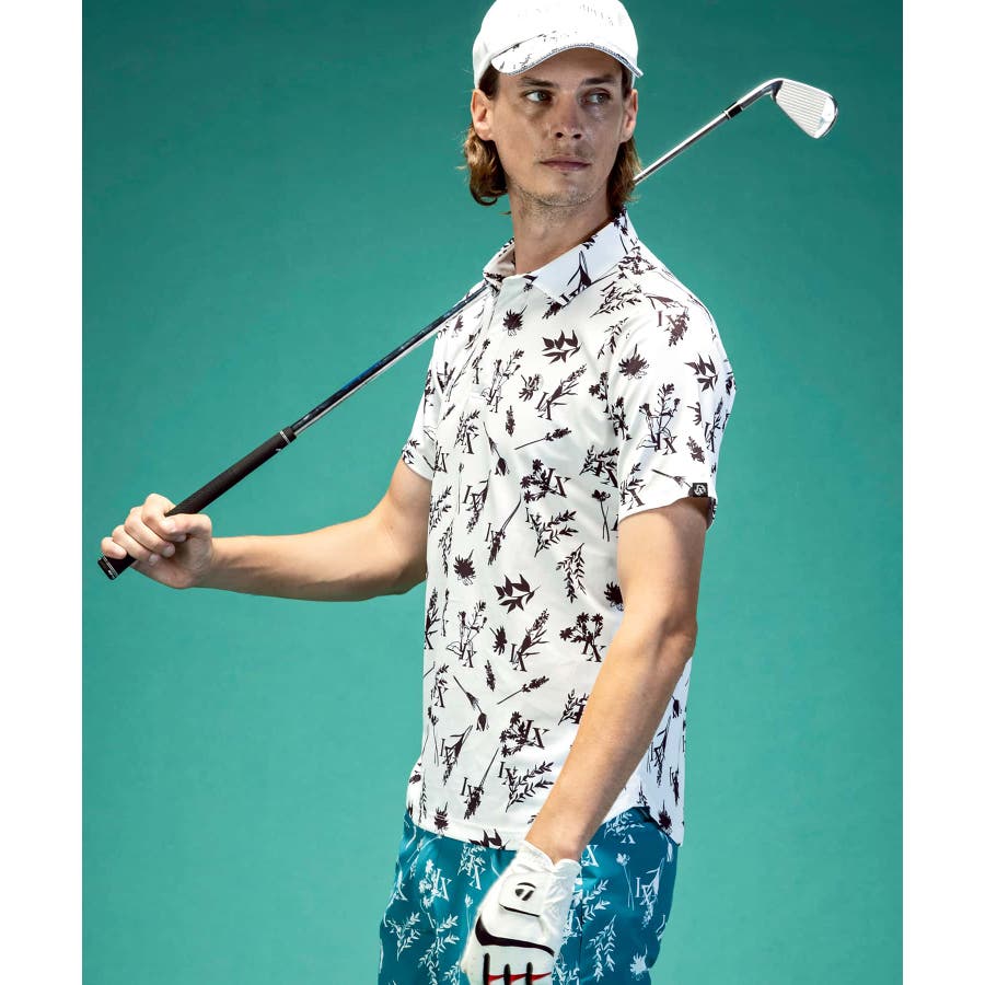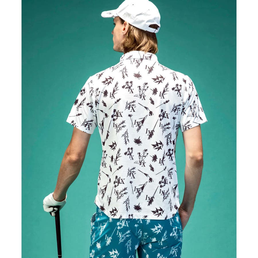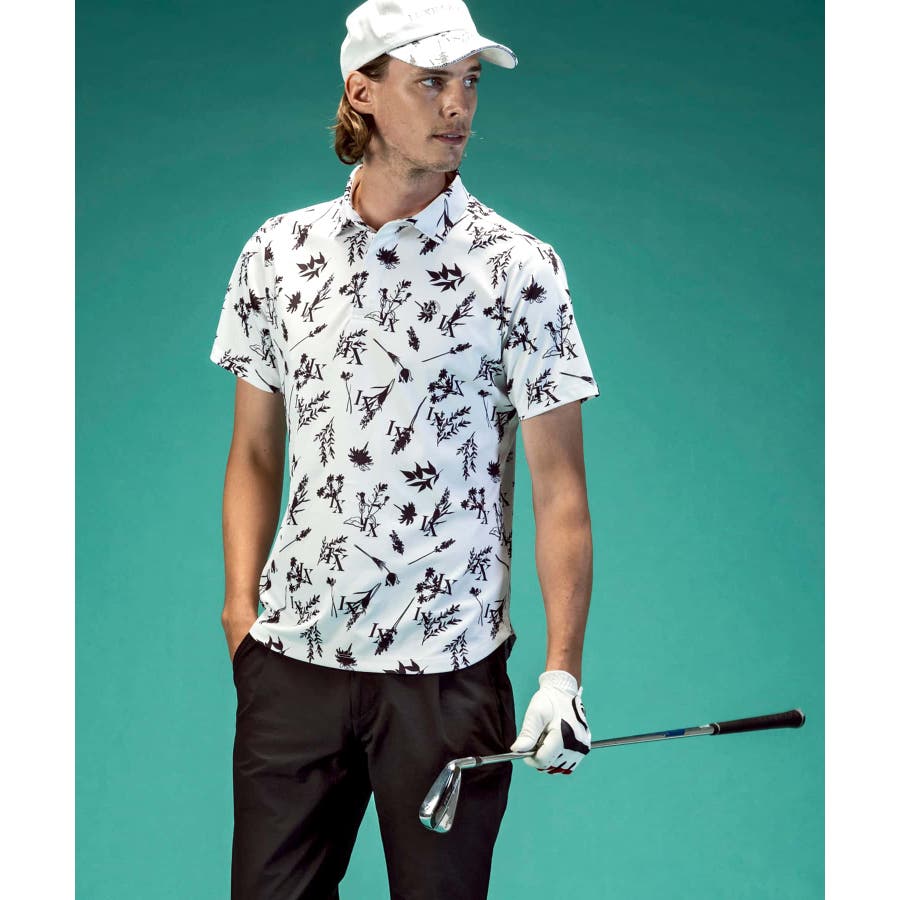 LUXEオリジナルの上品なボタニカル柄のポロシャツ。