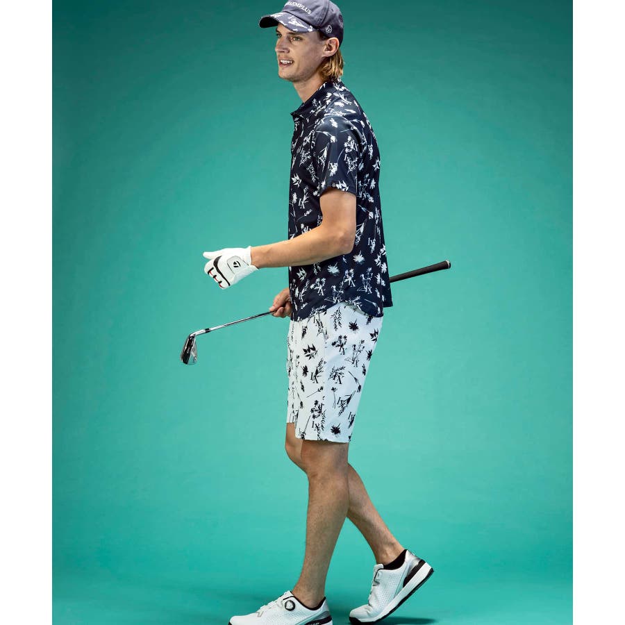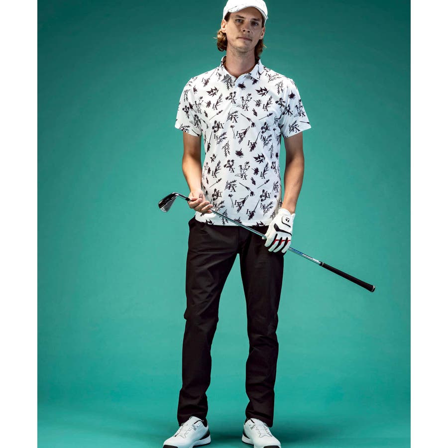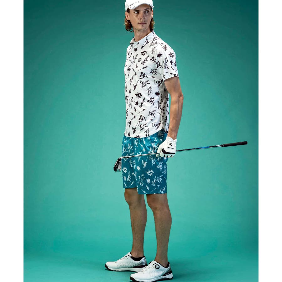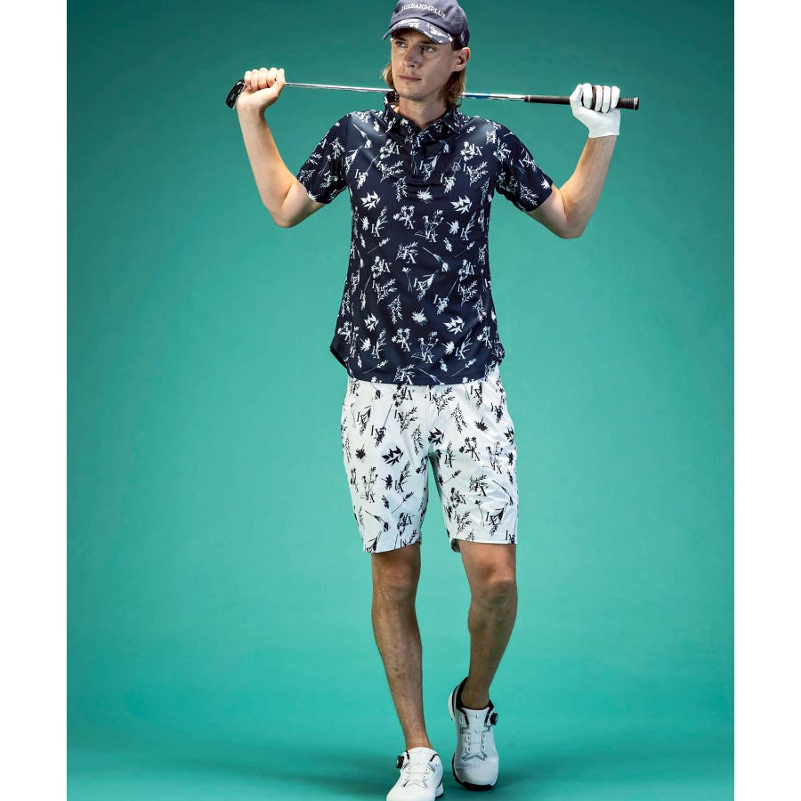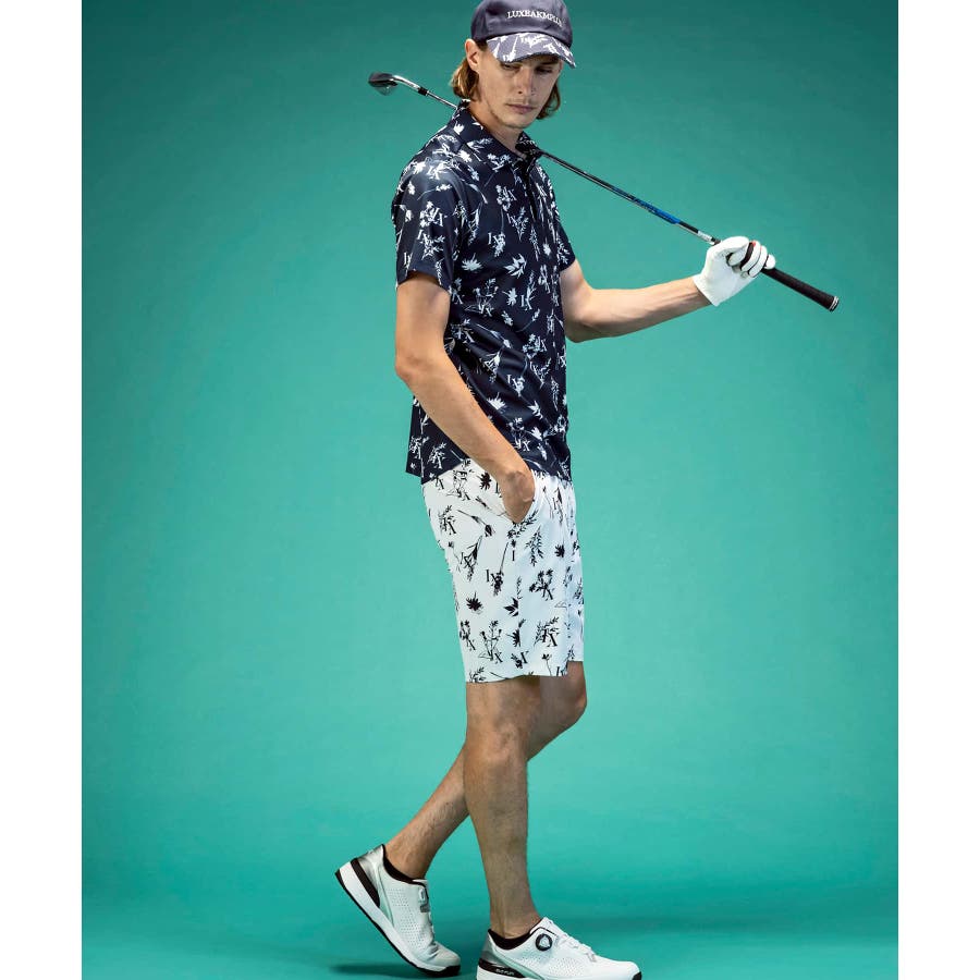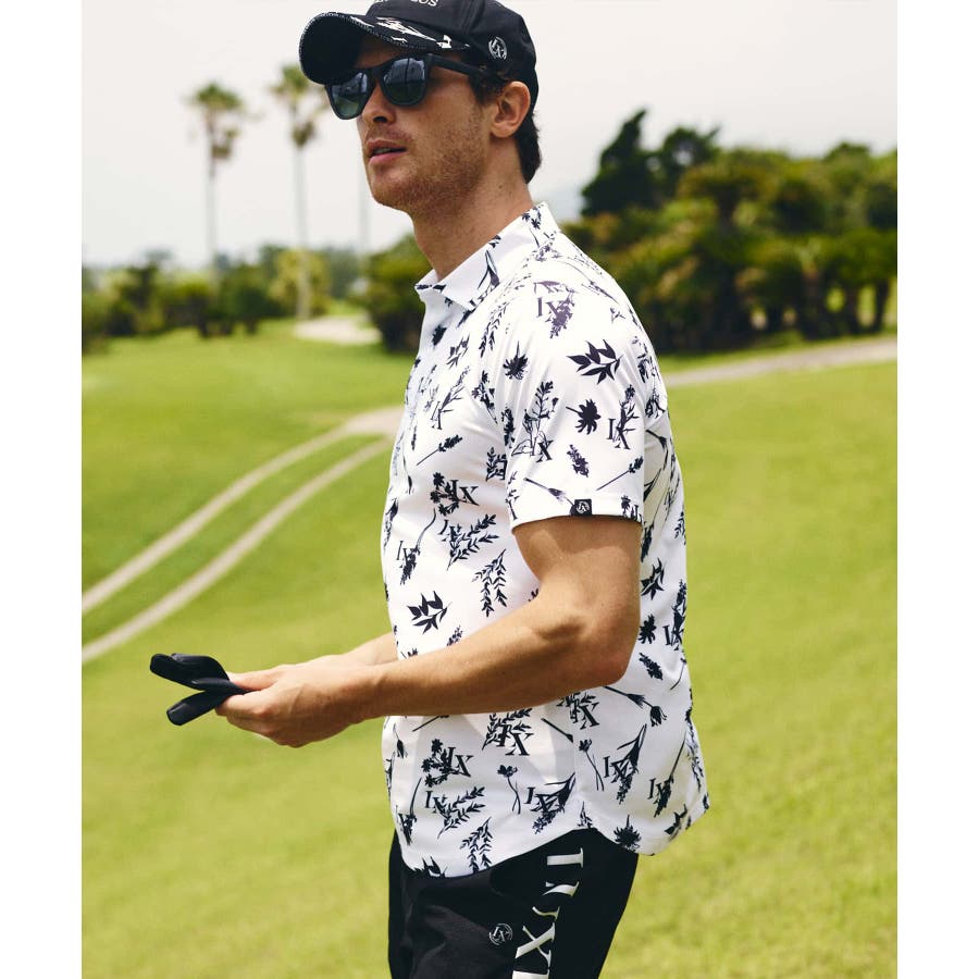 LUXEオリジナルの上品なボタニカル柄のポロシャツ。