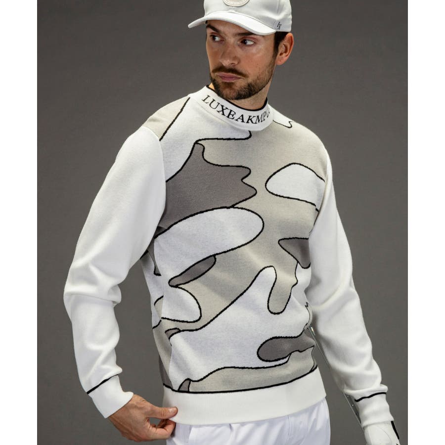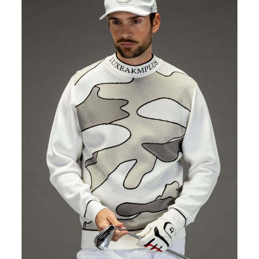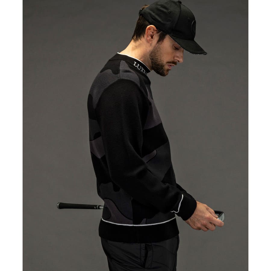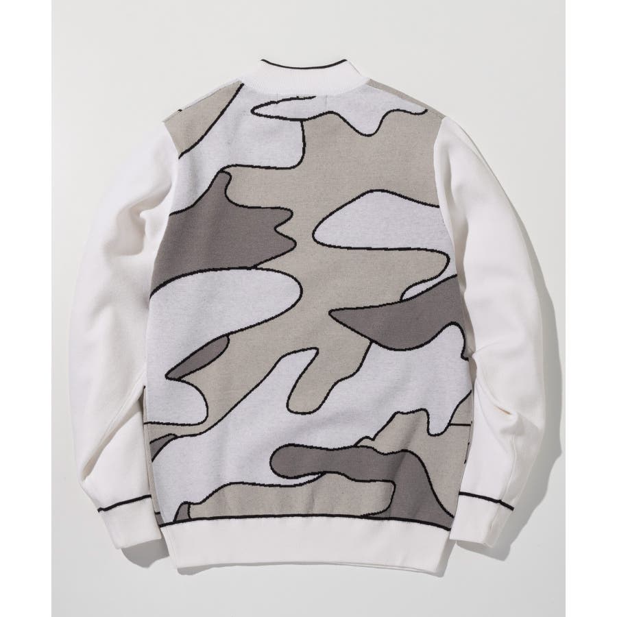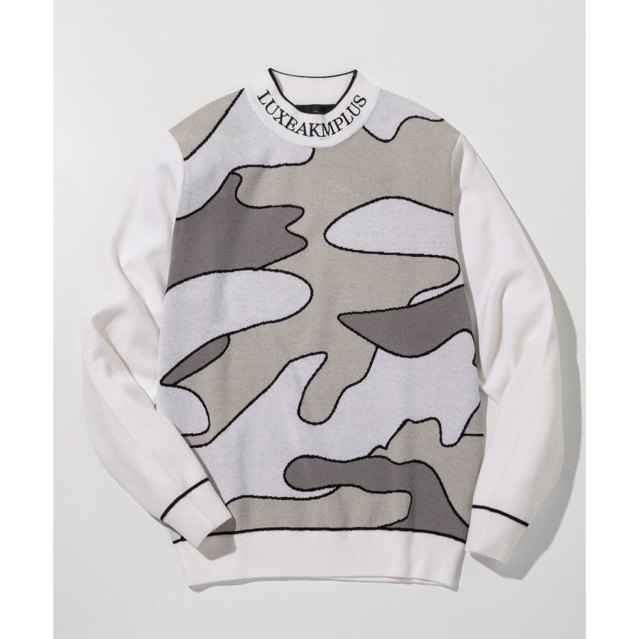 身頃にはLUXEオリジナルのカモ柄をジャガード編みで表現。