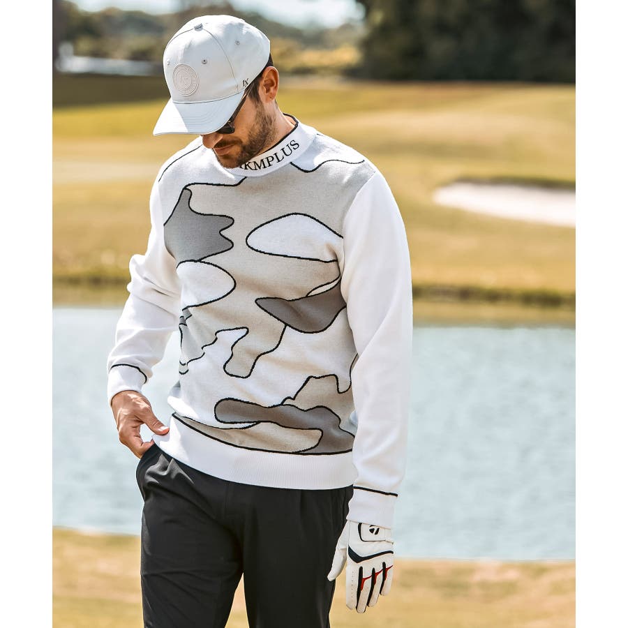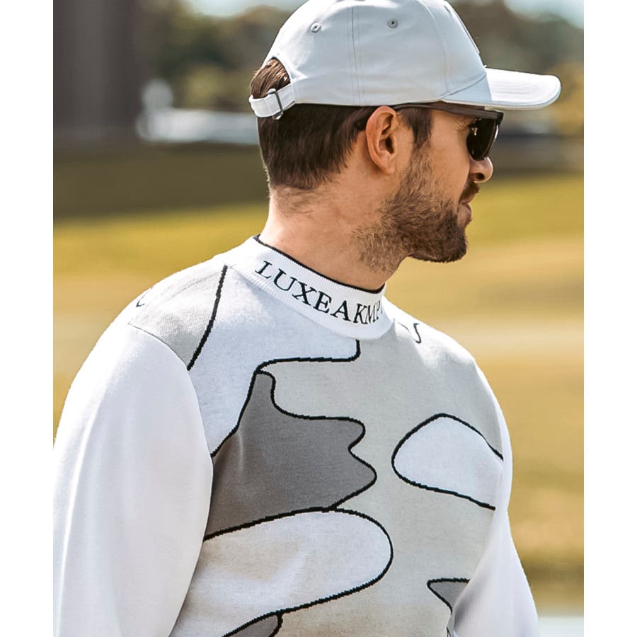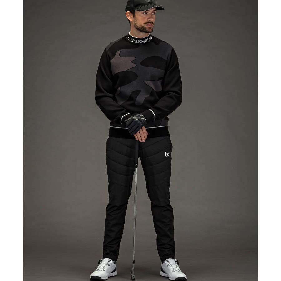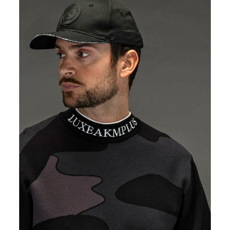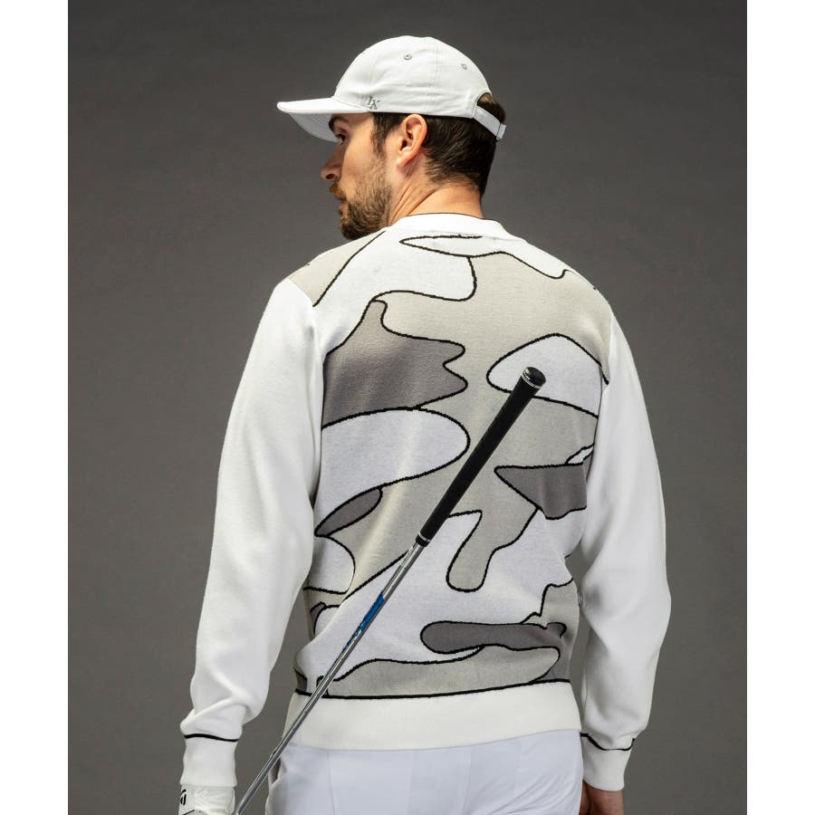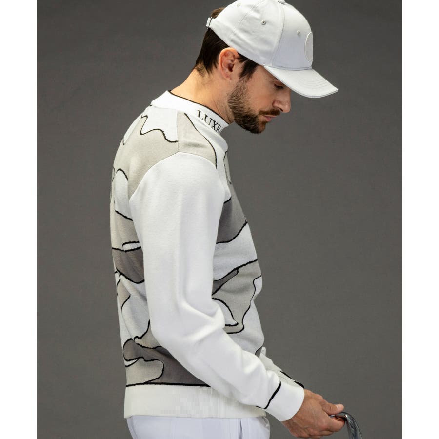 身頃にはLUXEオリジナルのカモ柄をジャガード編みで表現。