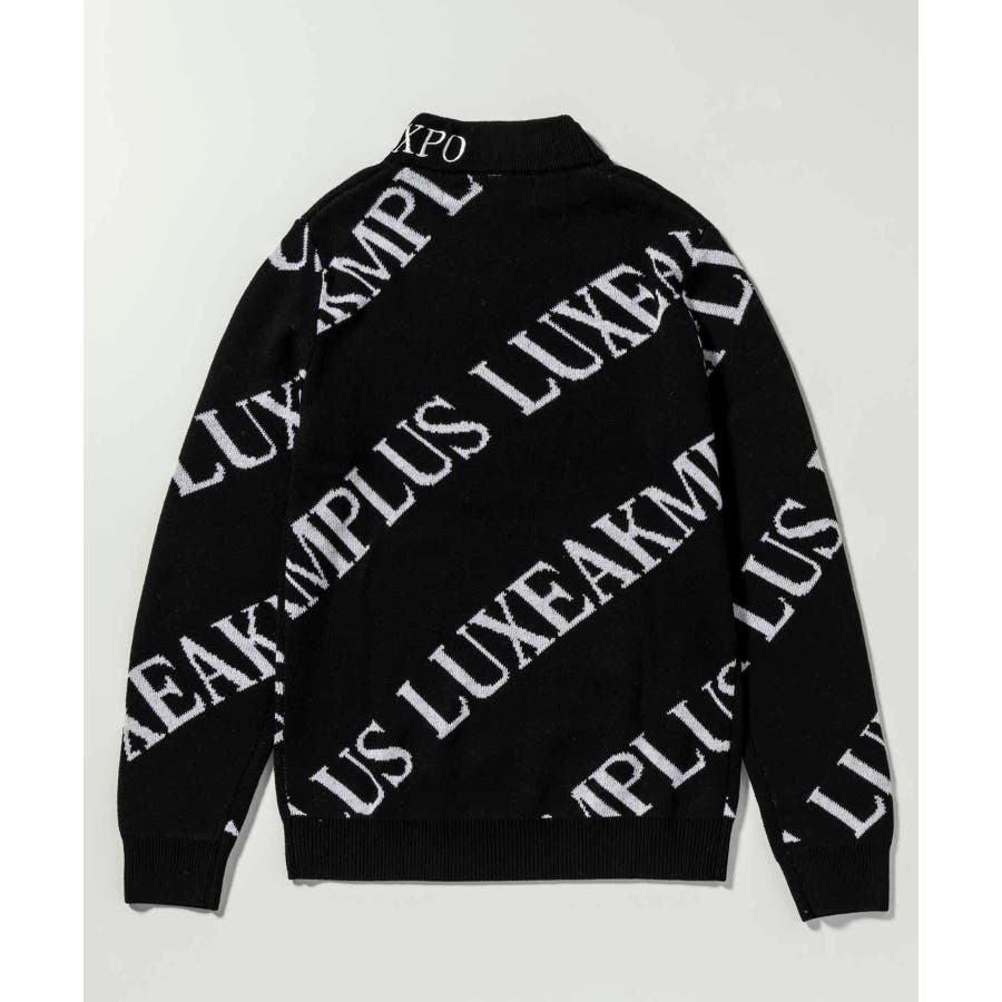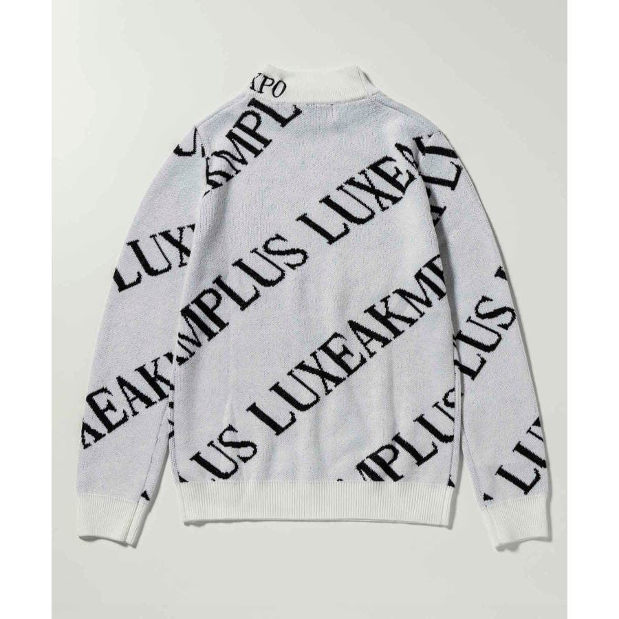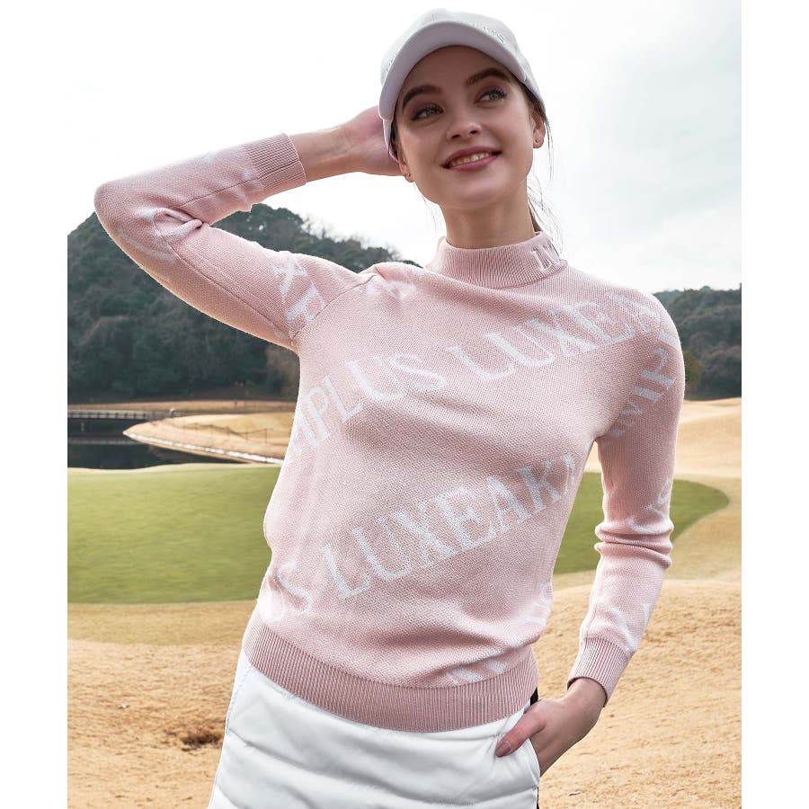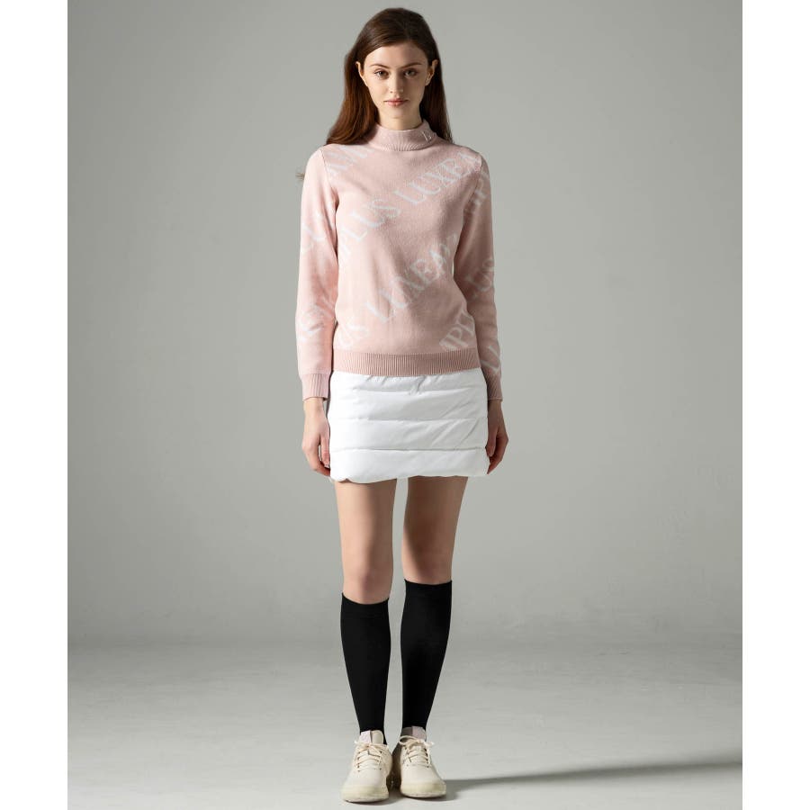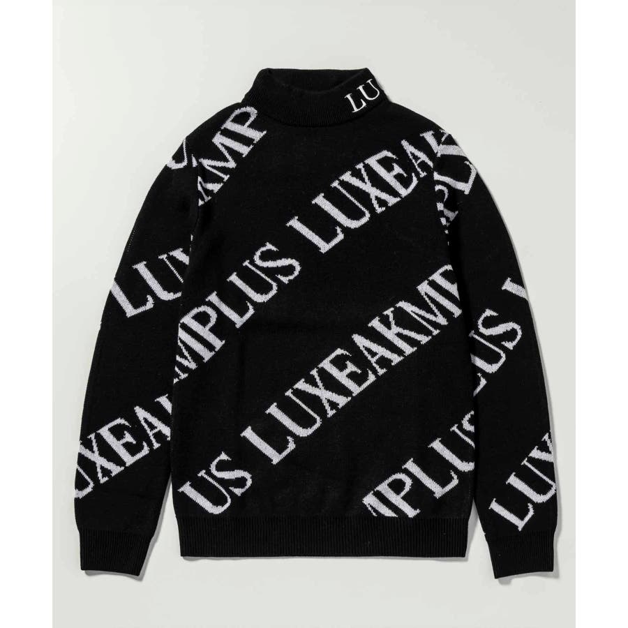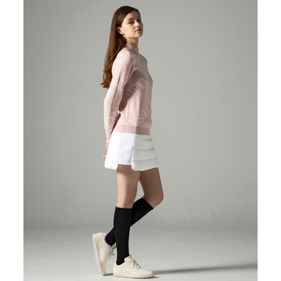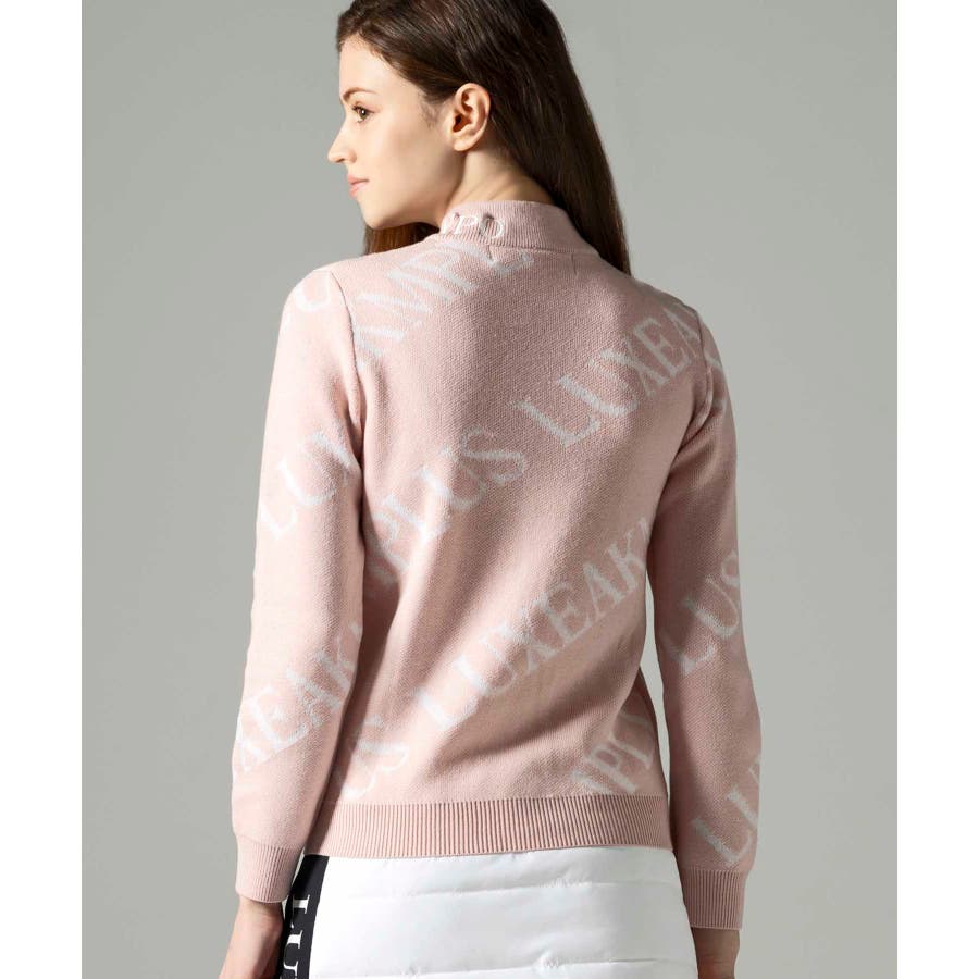 大胆に配置したブランドロゴがスタイリングを華やかに彩るモックネックニット。