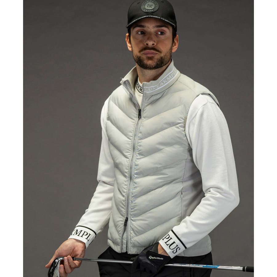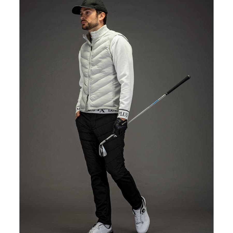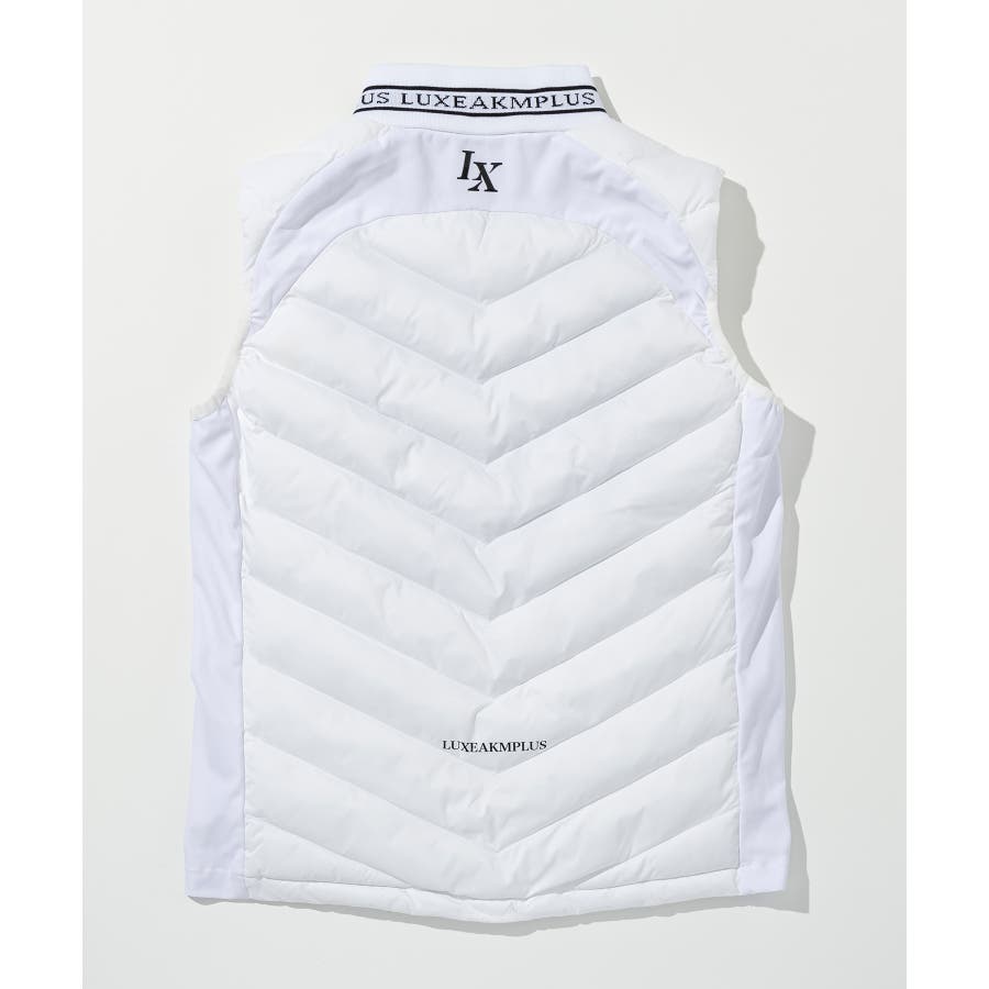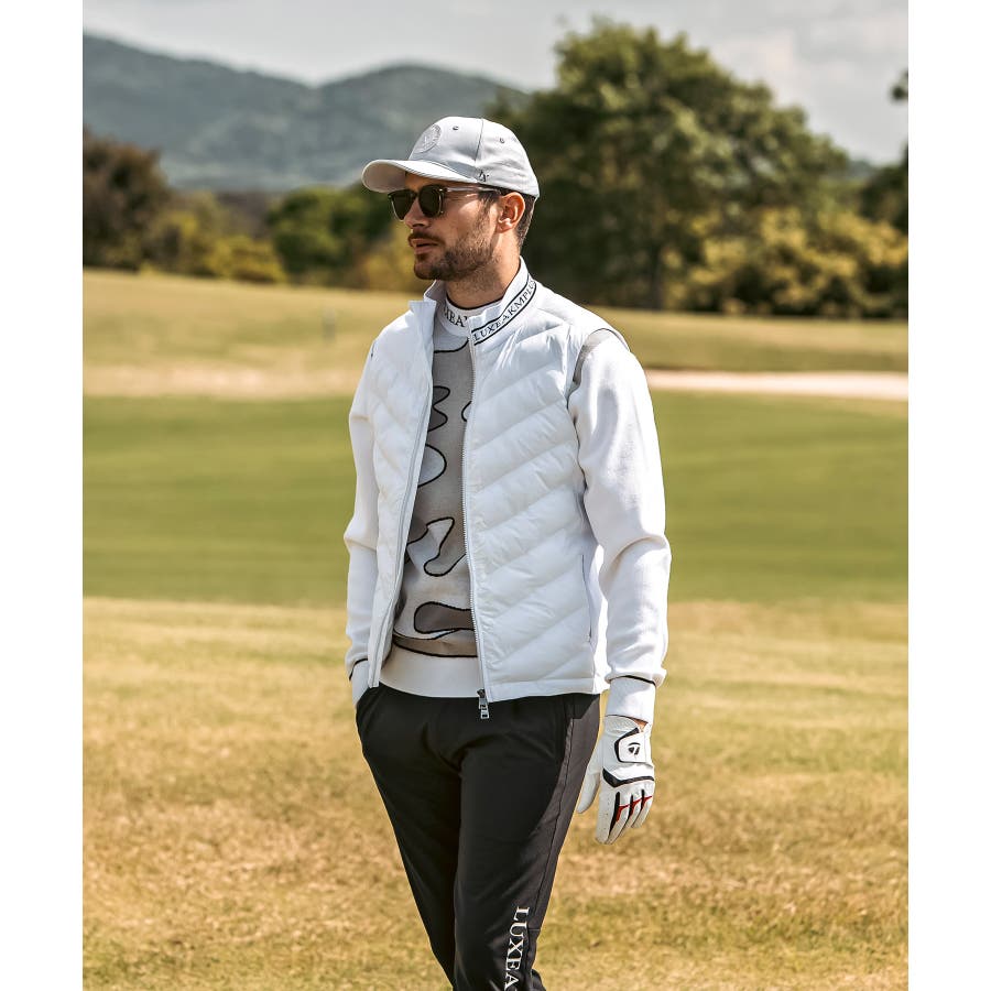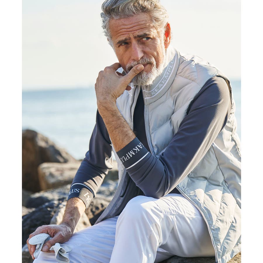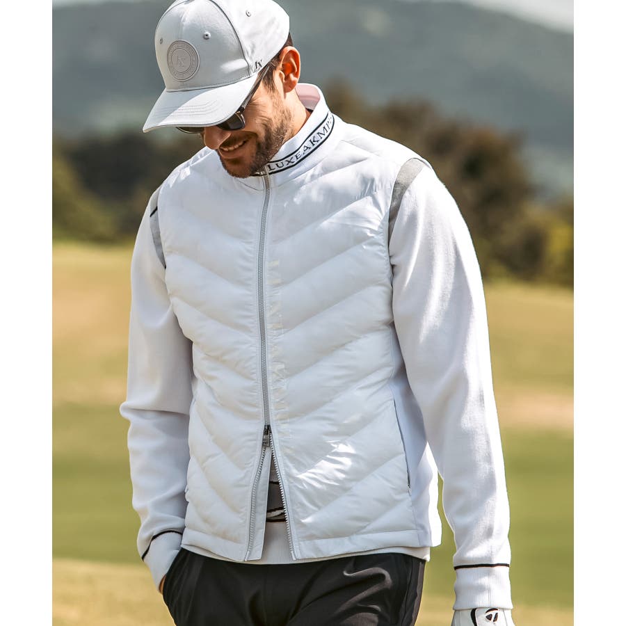 ロゴ入りのジャガードリブネックが特徴的な、多機能ベスト。