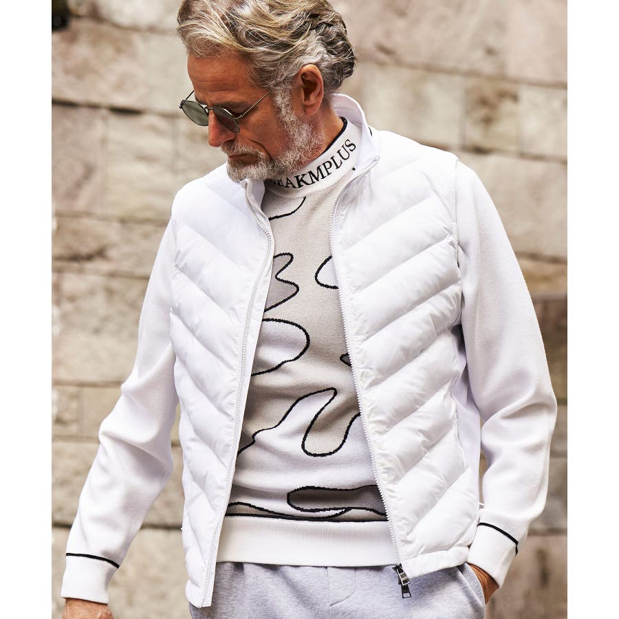 防風性に優れたストレッチニット素材を採用し、快適な着心地と動きやすさを両立。