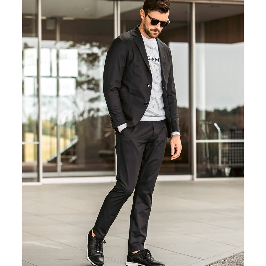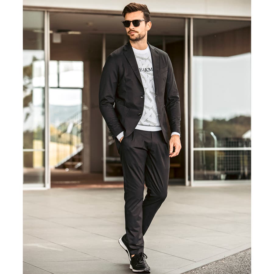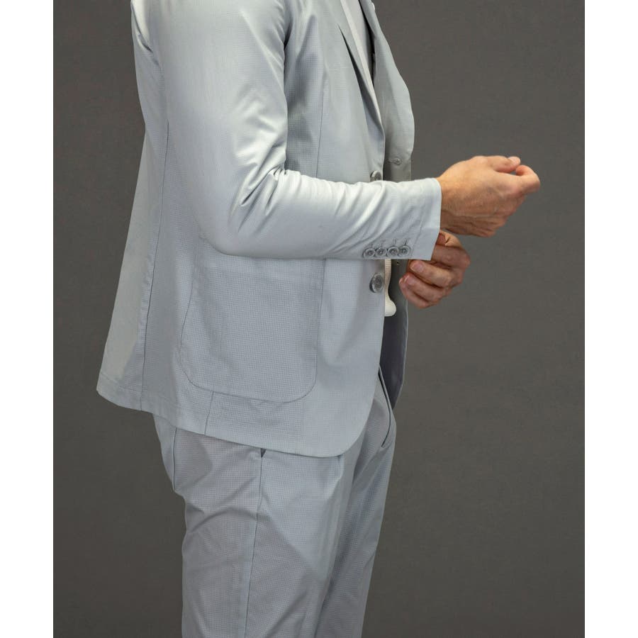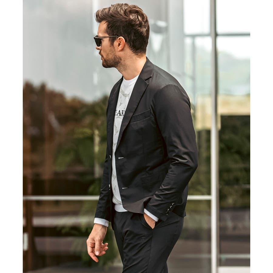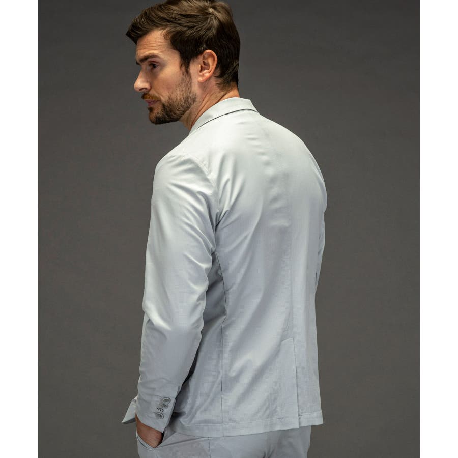軽量で通気性の高い快適機能素材を採用したテーラードジャケット。