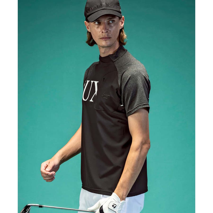 配色パターンがスタイリッシュな半袖モックネックTシャツ。