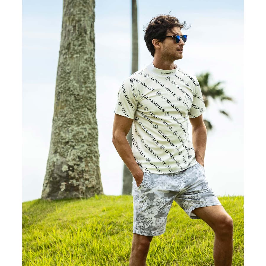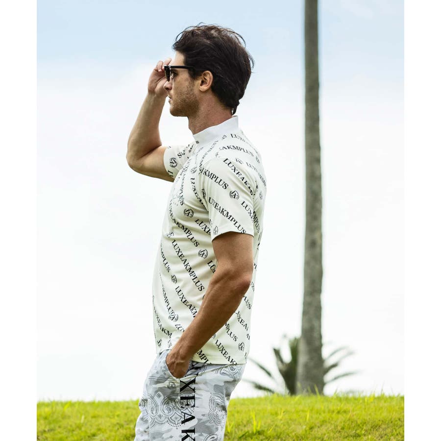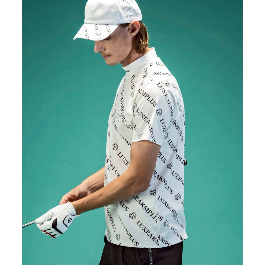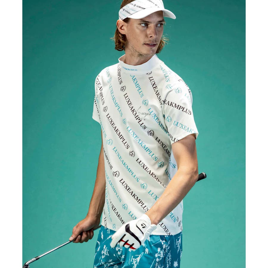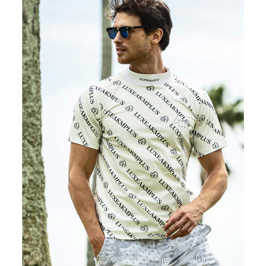 オリジナルのダイアゴナルロゴが目を惹く半袖モックネックTシャツ
