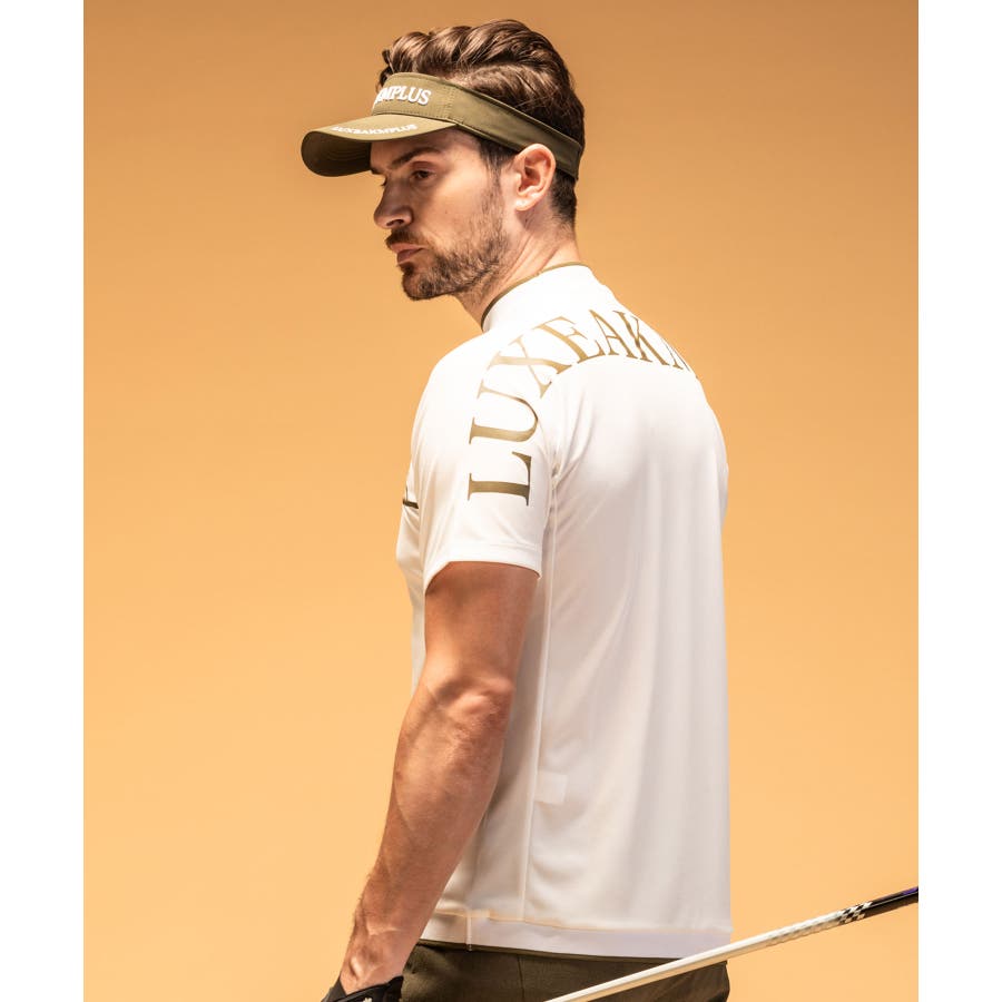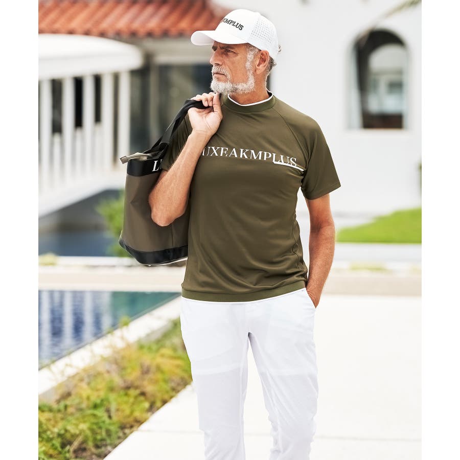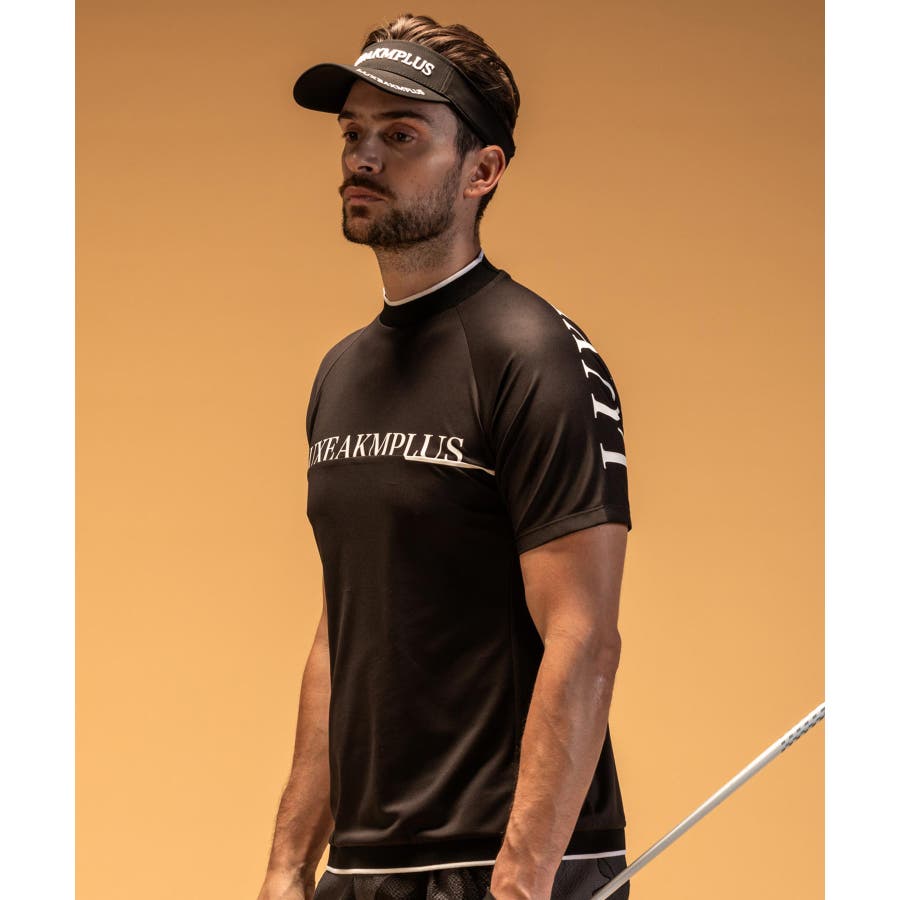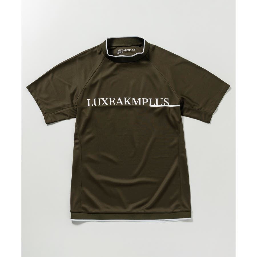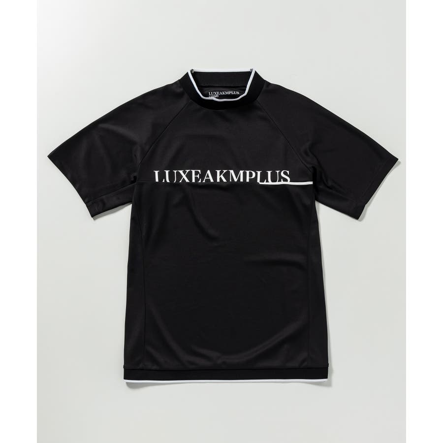 フロントとバックにロゴデザインを加えたモックネックTシャツ。
