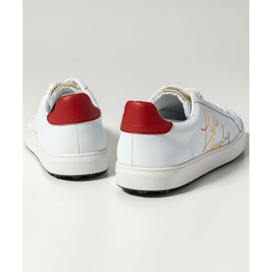 鮮やかなレインボーロゴがグリーンに映えるゴルフシューズ。