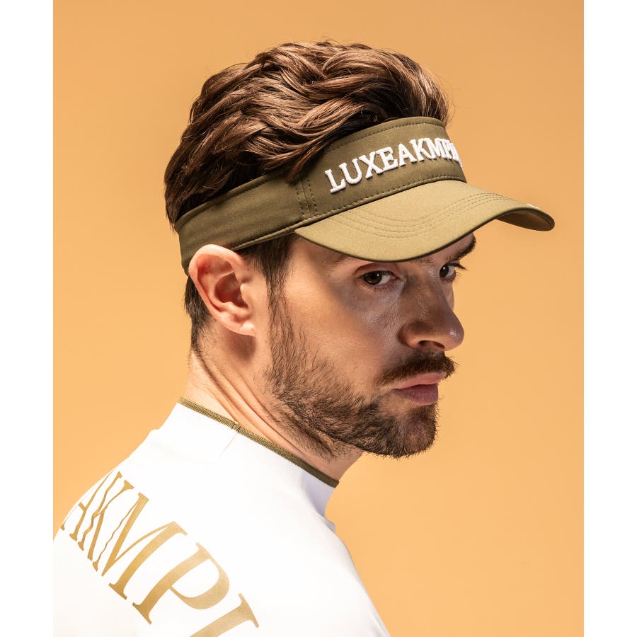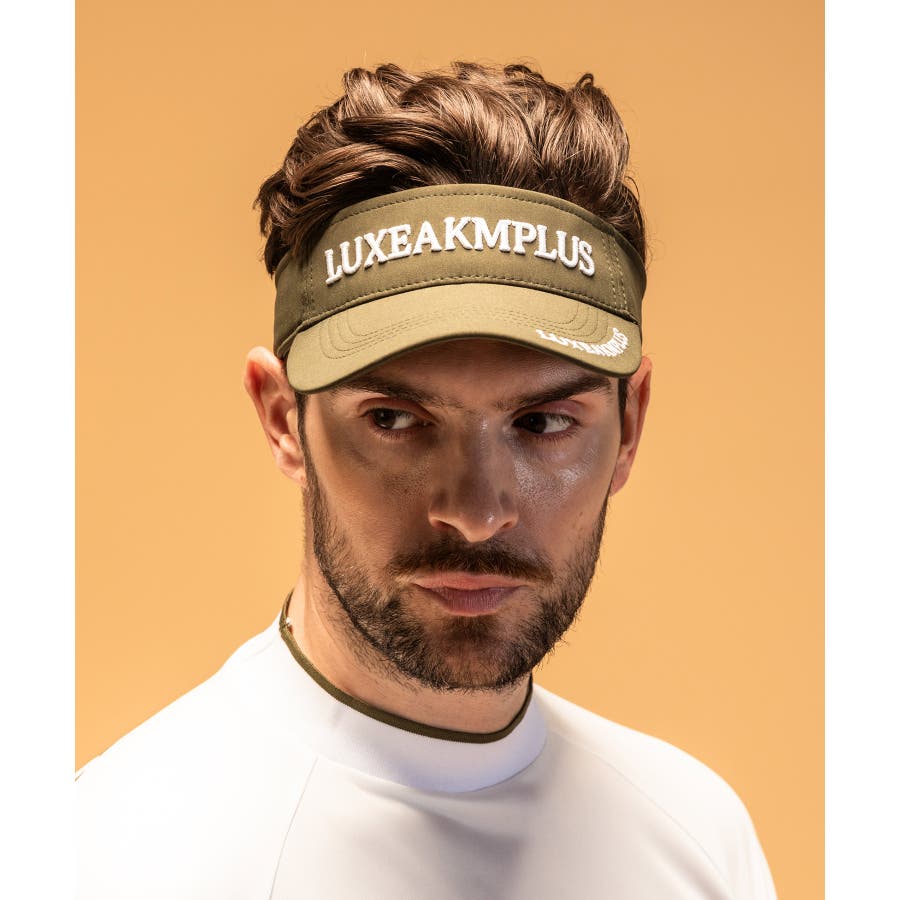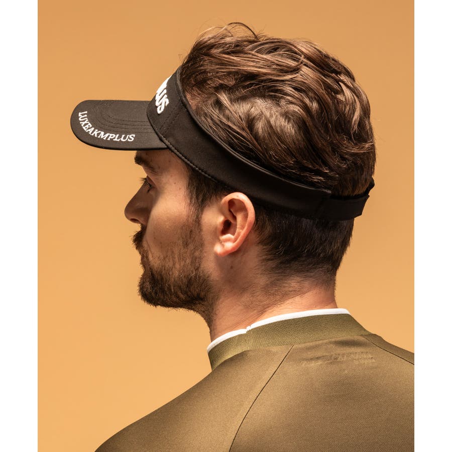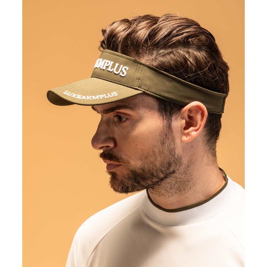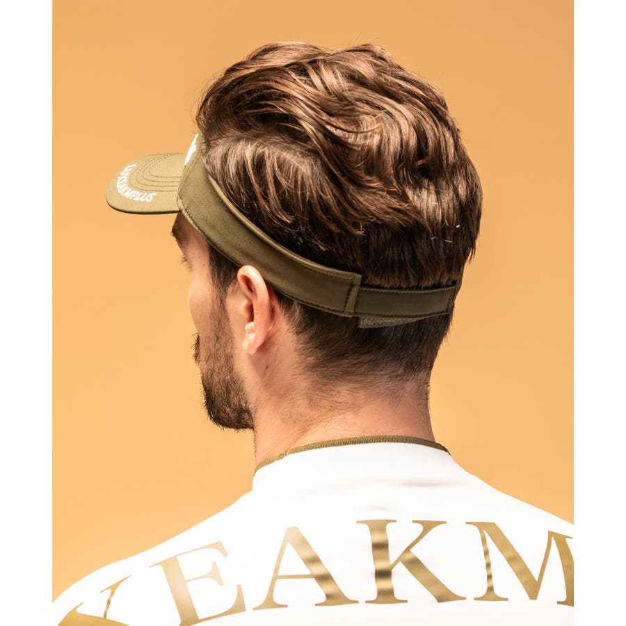 フロントとつばにブランドオリジナルロゴを配置したサンバイザー。