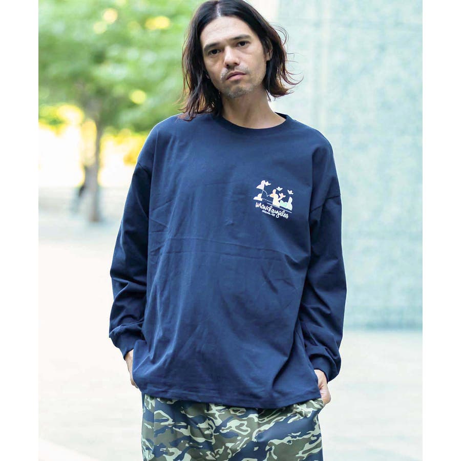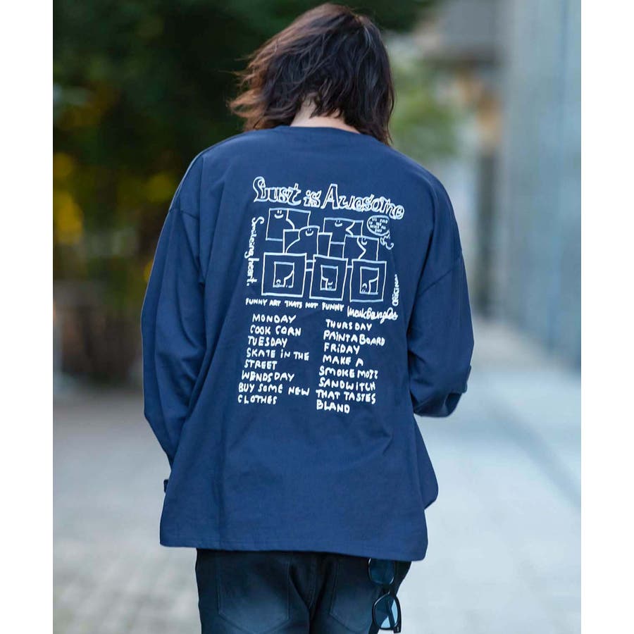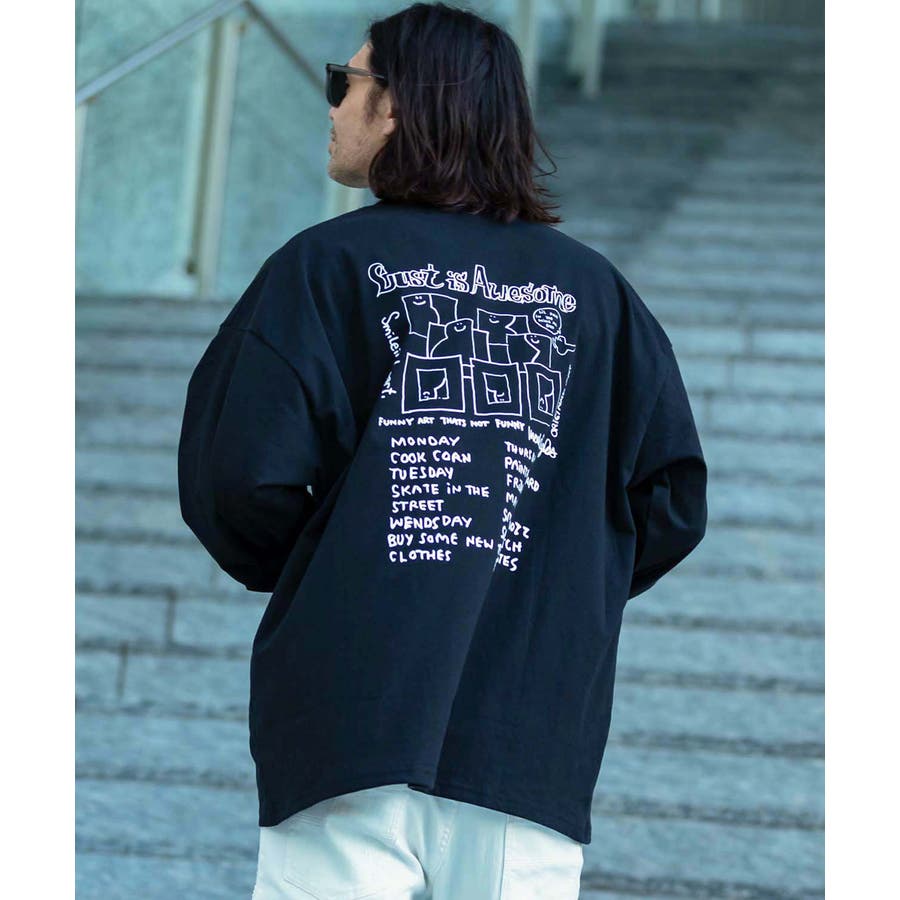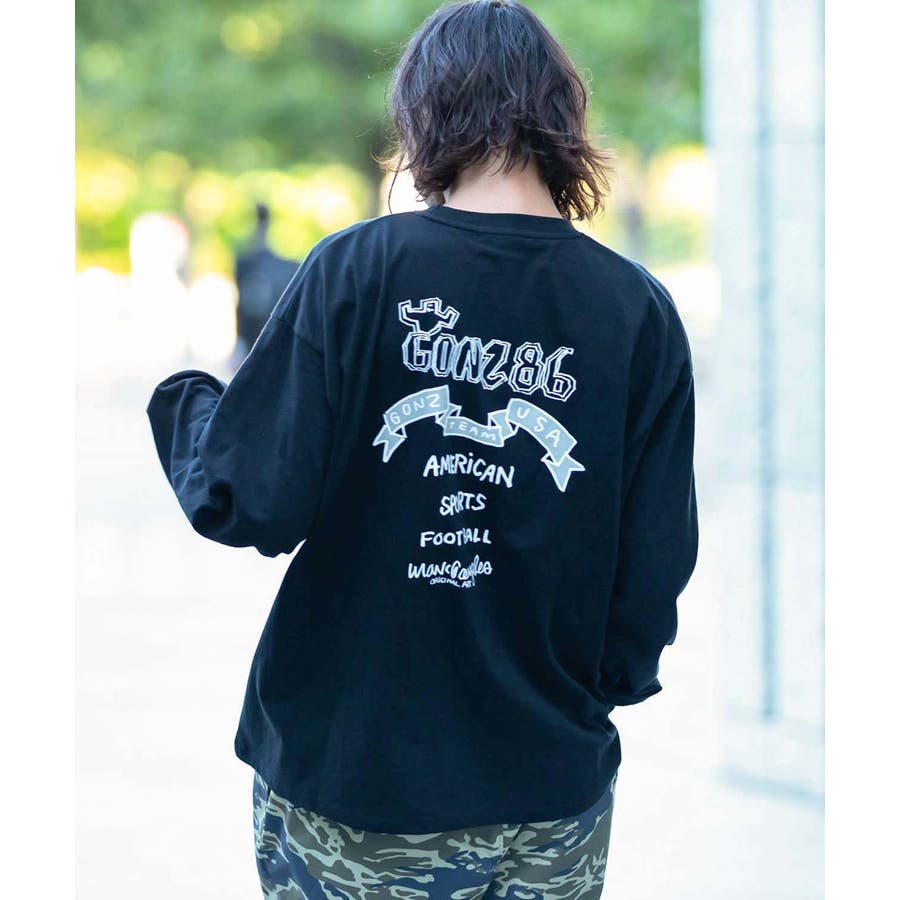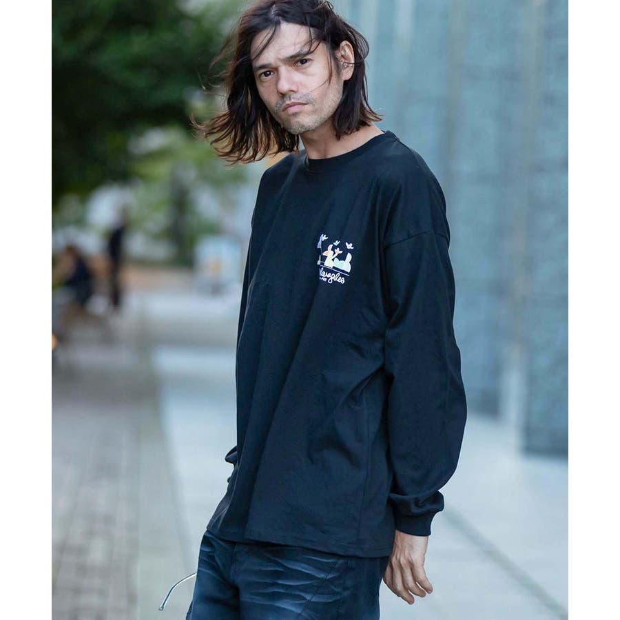 存在感のあるバックプリントを活かしたシンプルなスタイリングがおすすめ。