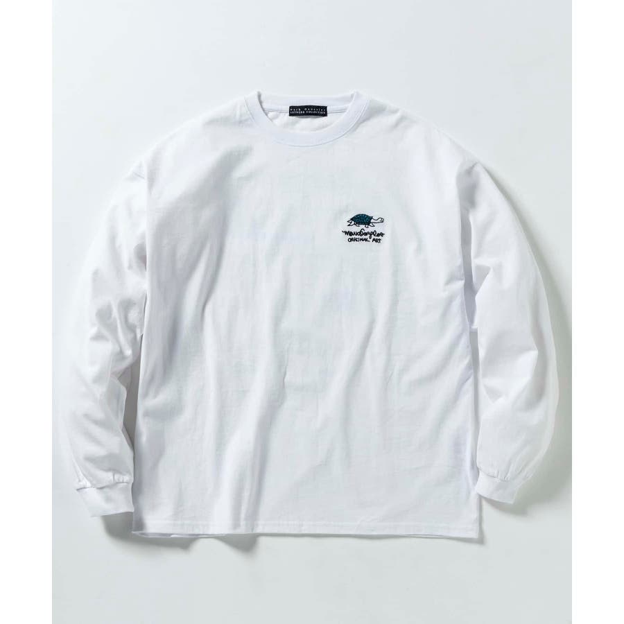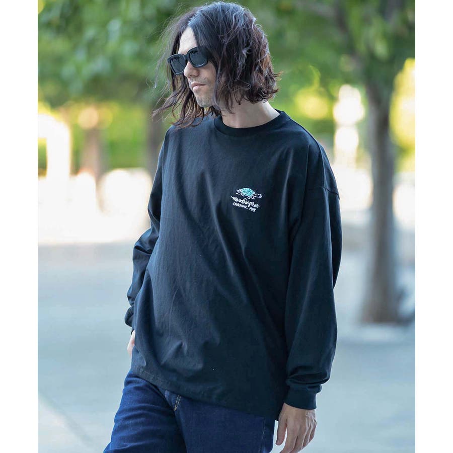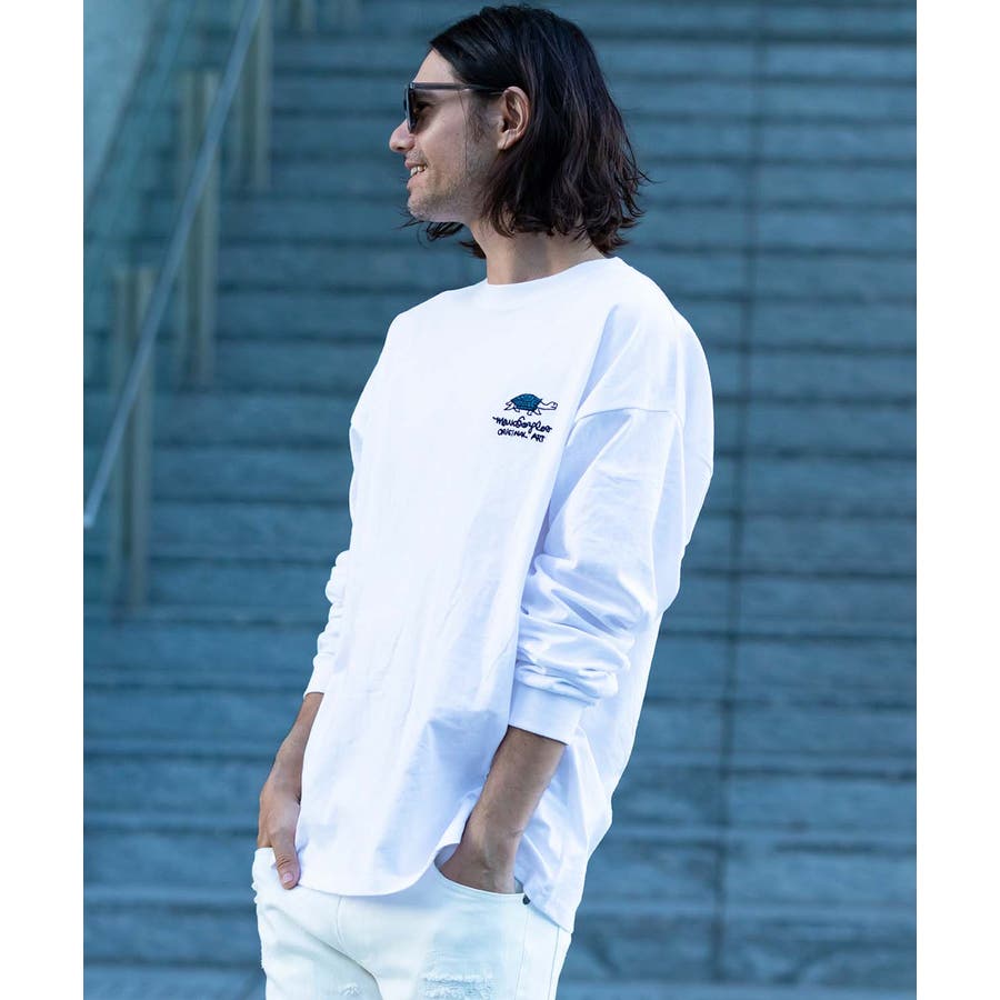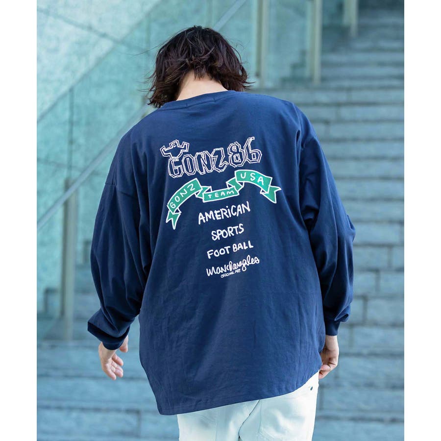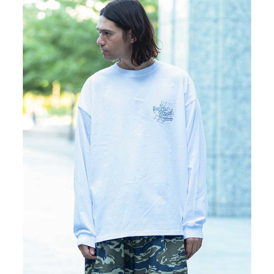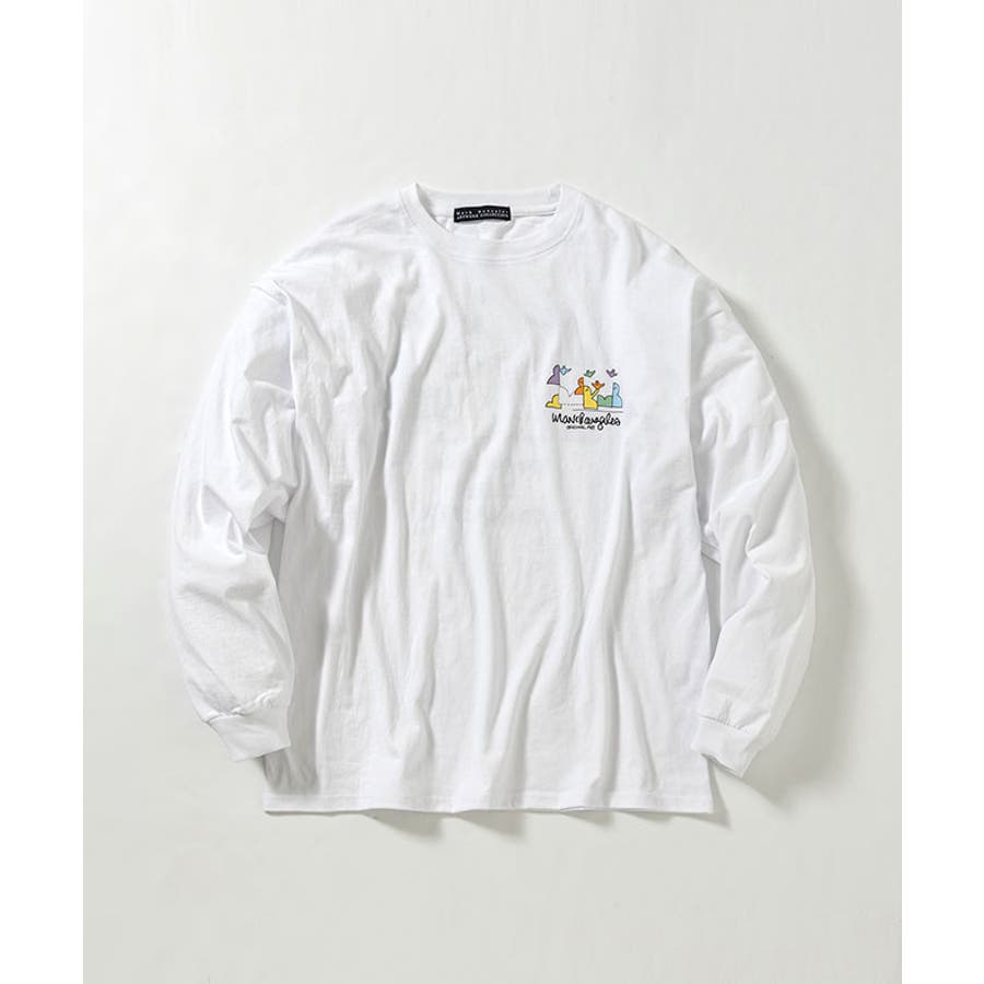 存在感のあるバックプリントを活かしたシンプルなスタイリングがおすすめ。