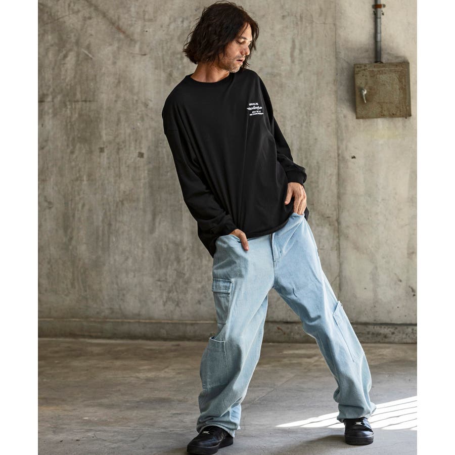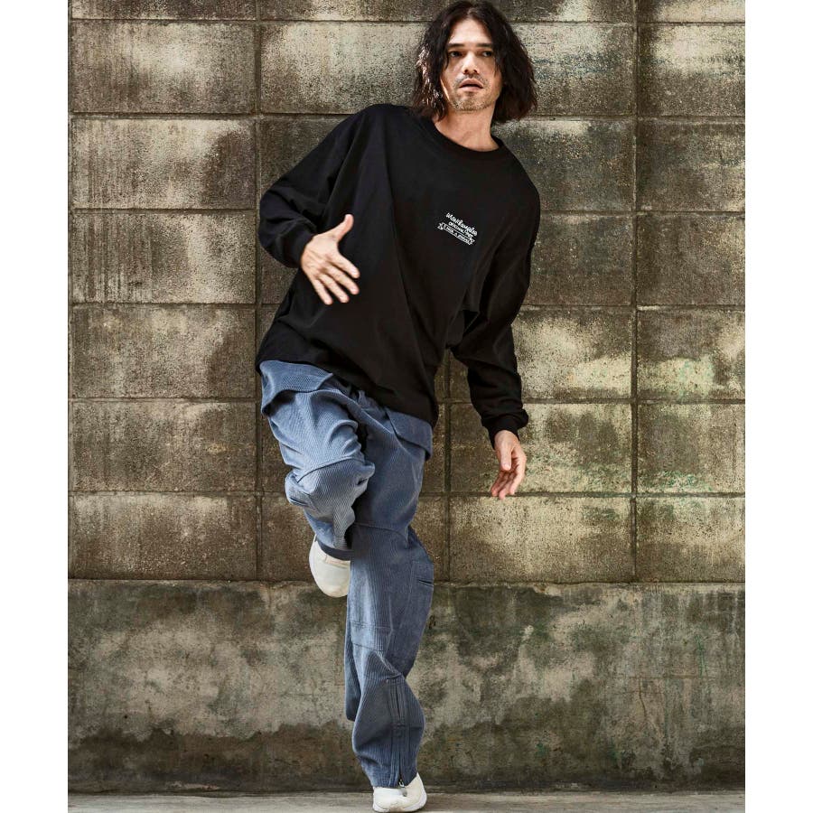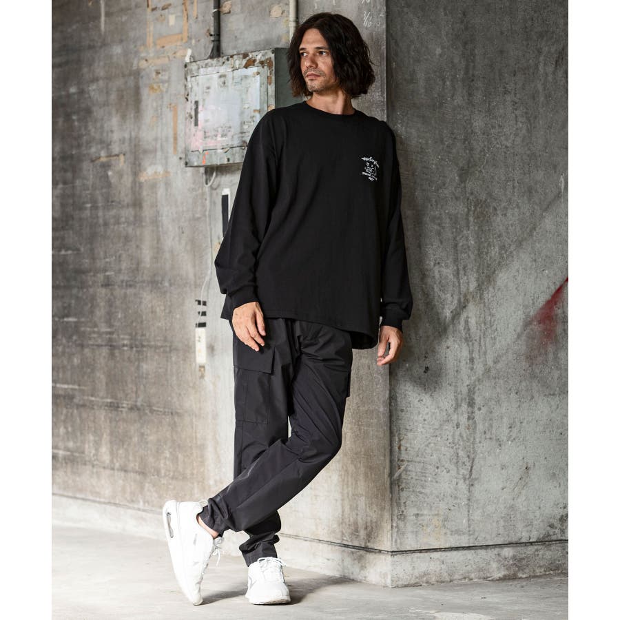 存在感のあるバックプリントを活かしたシンプルなスタイリングがおすすめ。