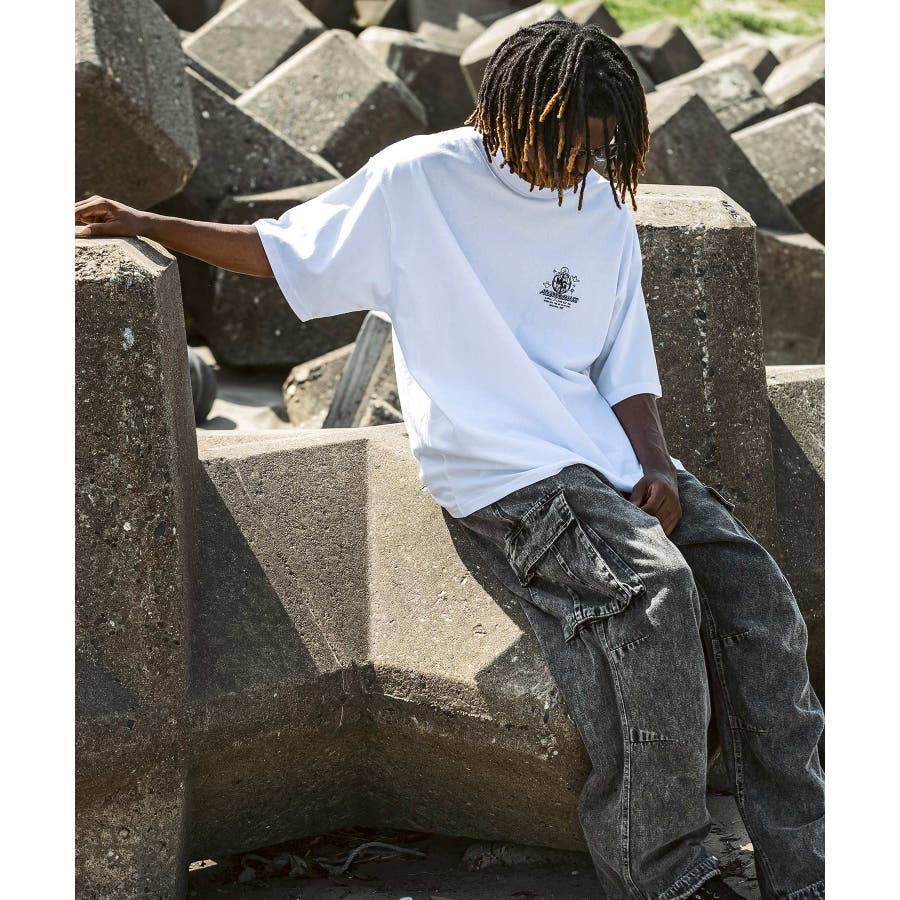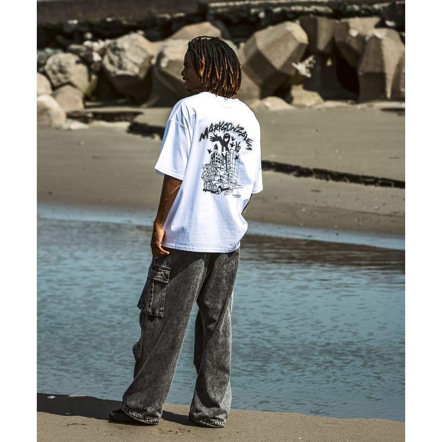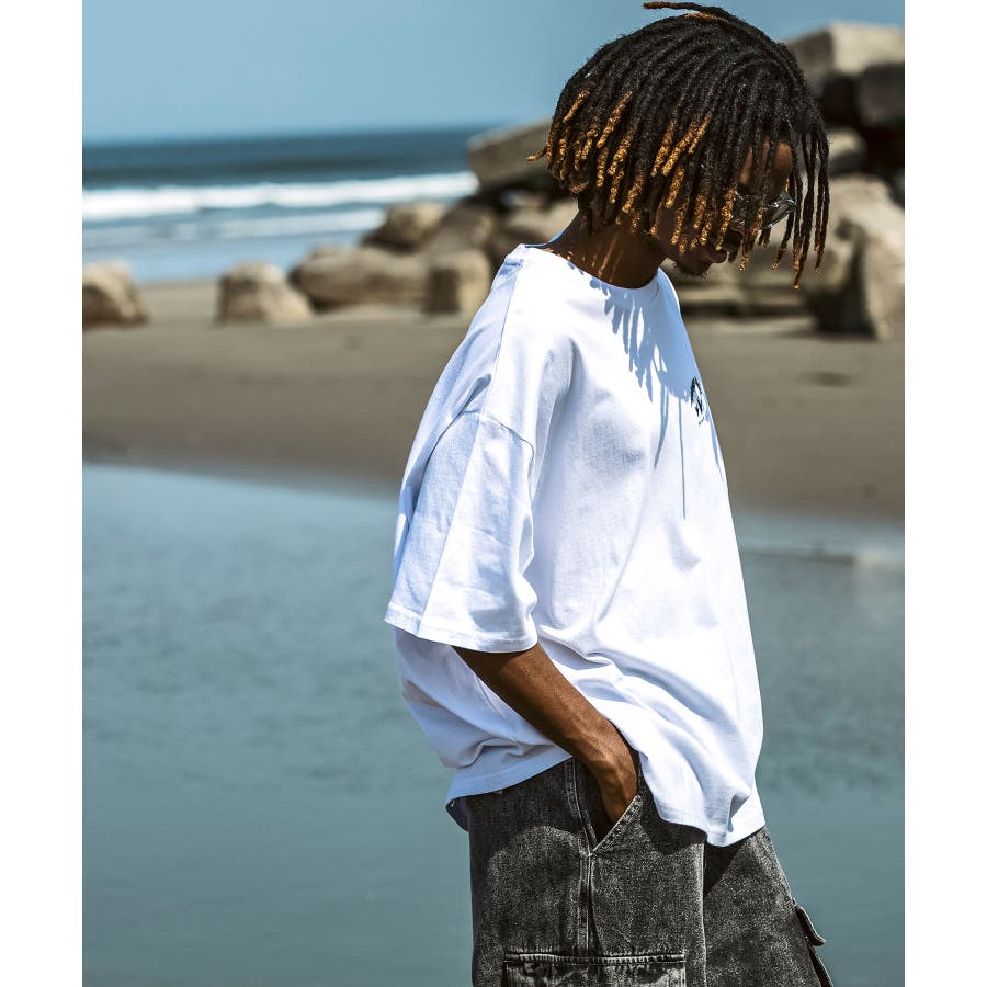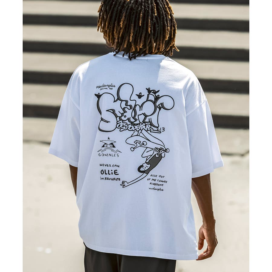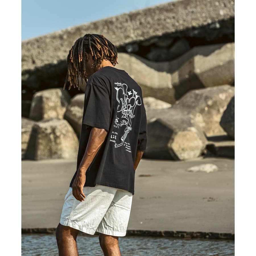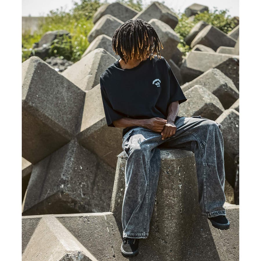 存在感のあるバックプリントを活かしたシンプルなスタイリングがおすすめ。