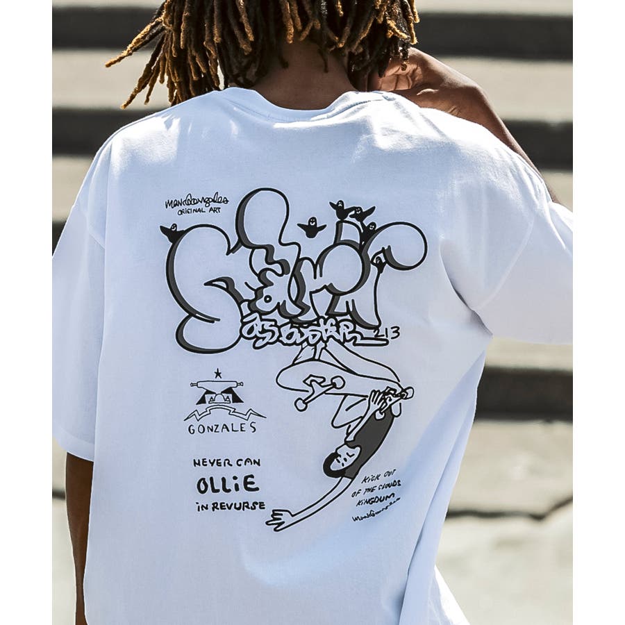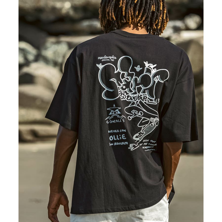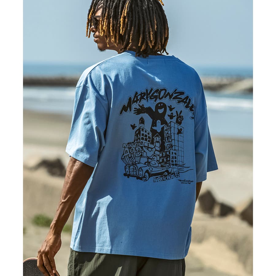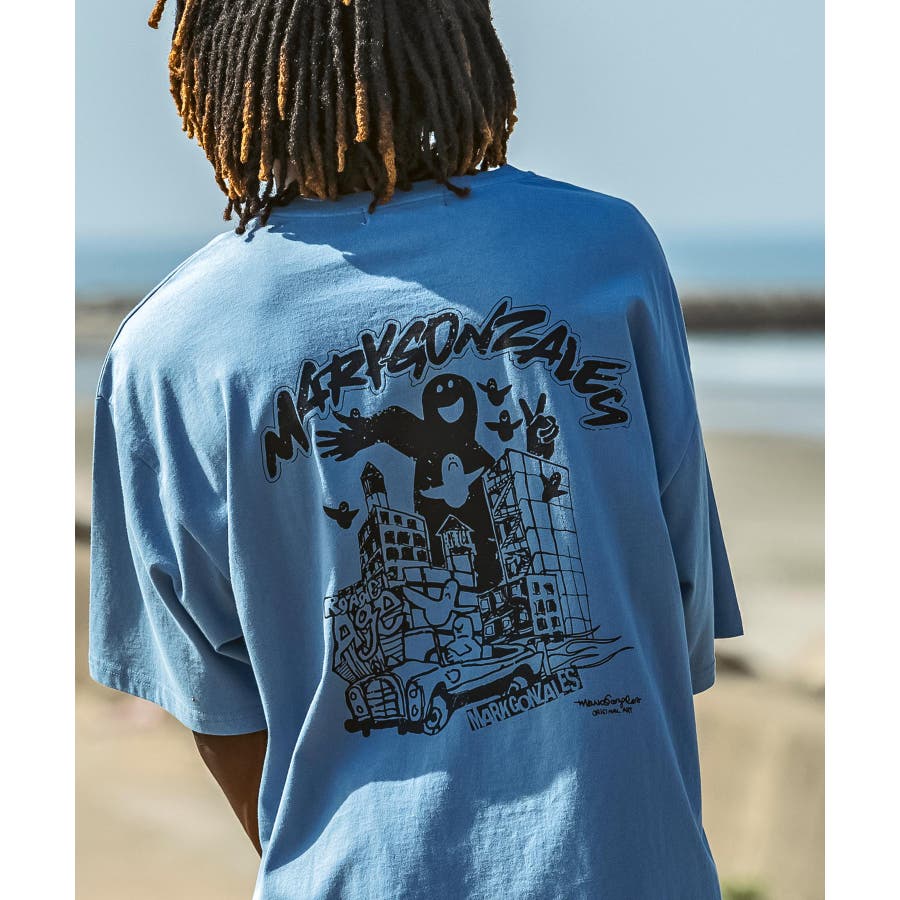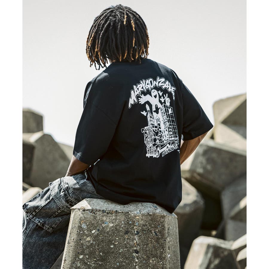 存在感のあるバックプリントを活かしたシンプルなスタイリングがおすすめ。