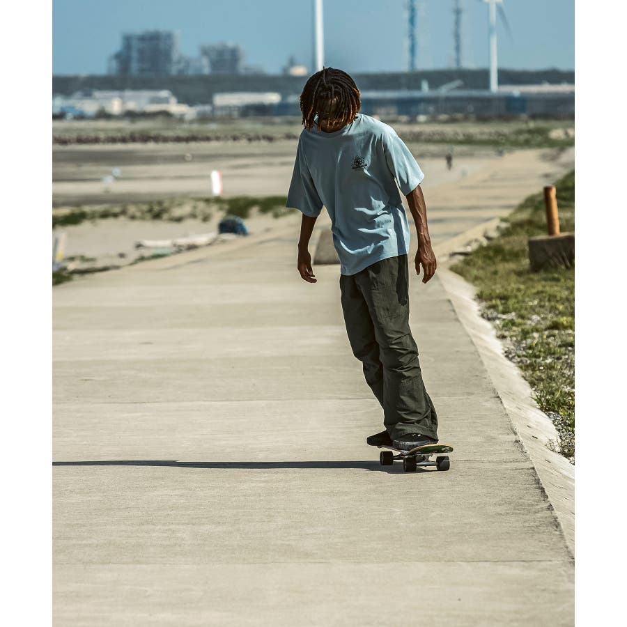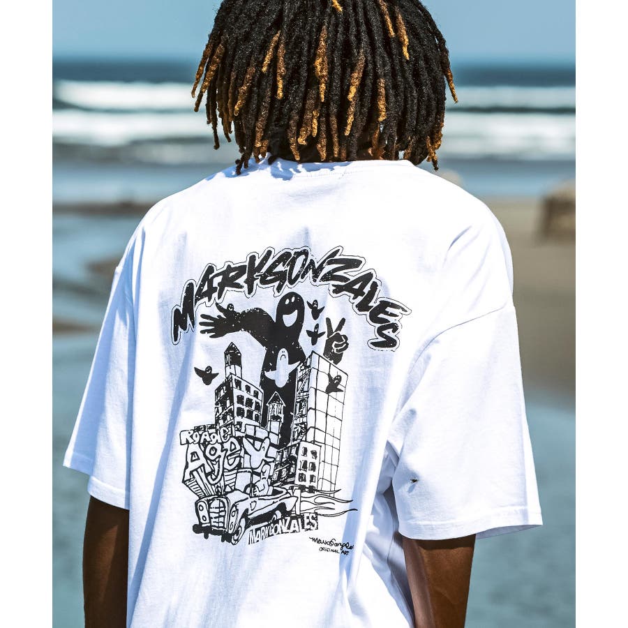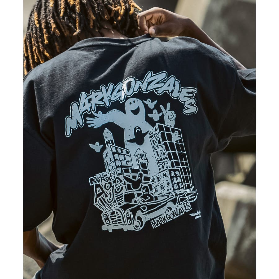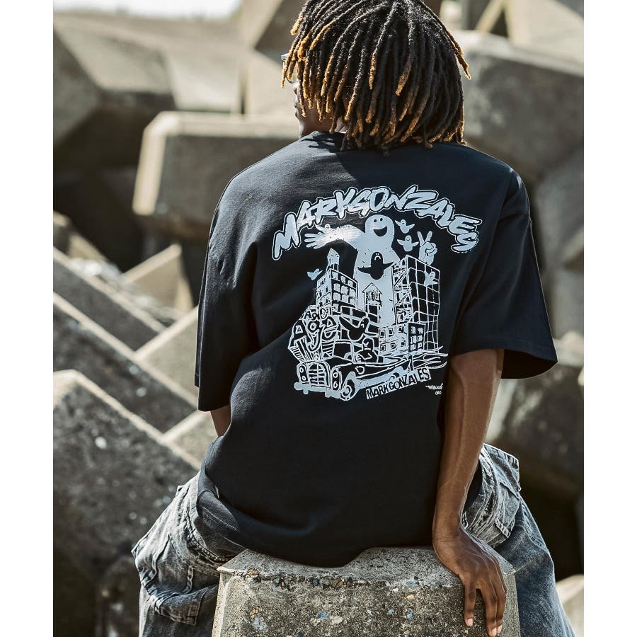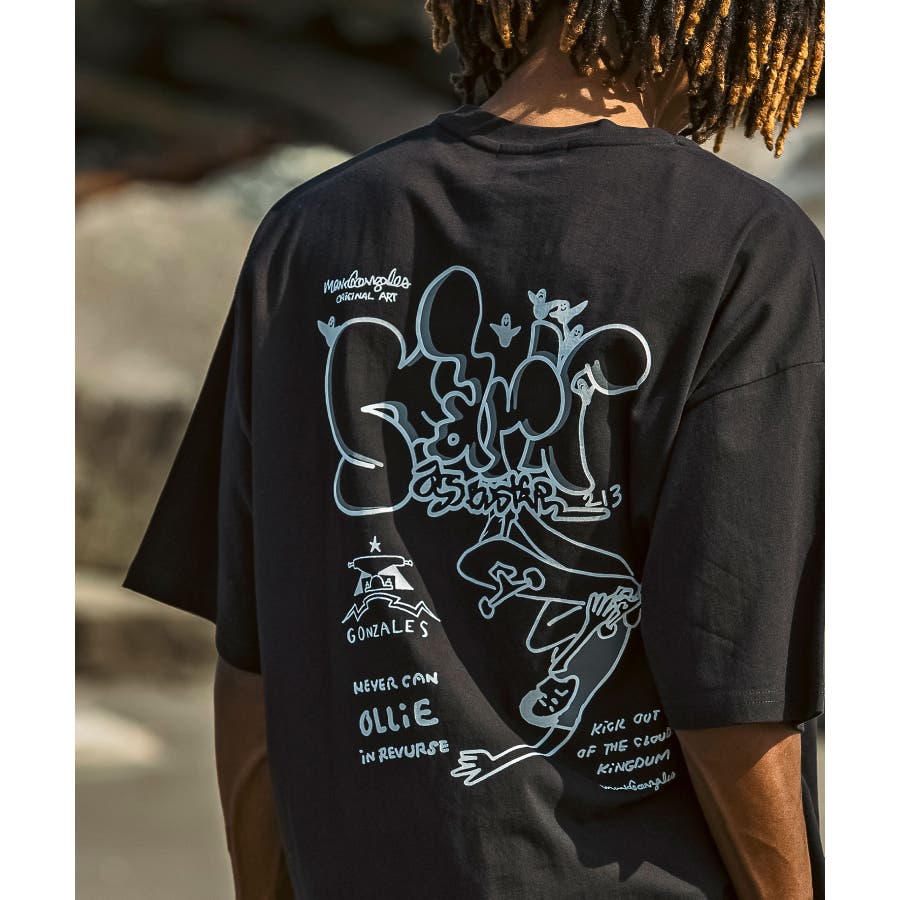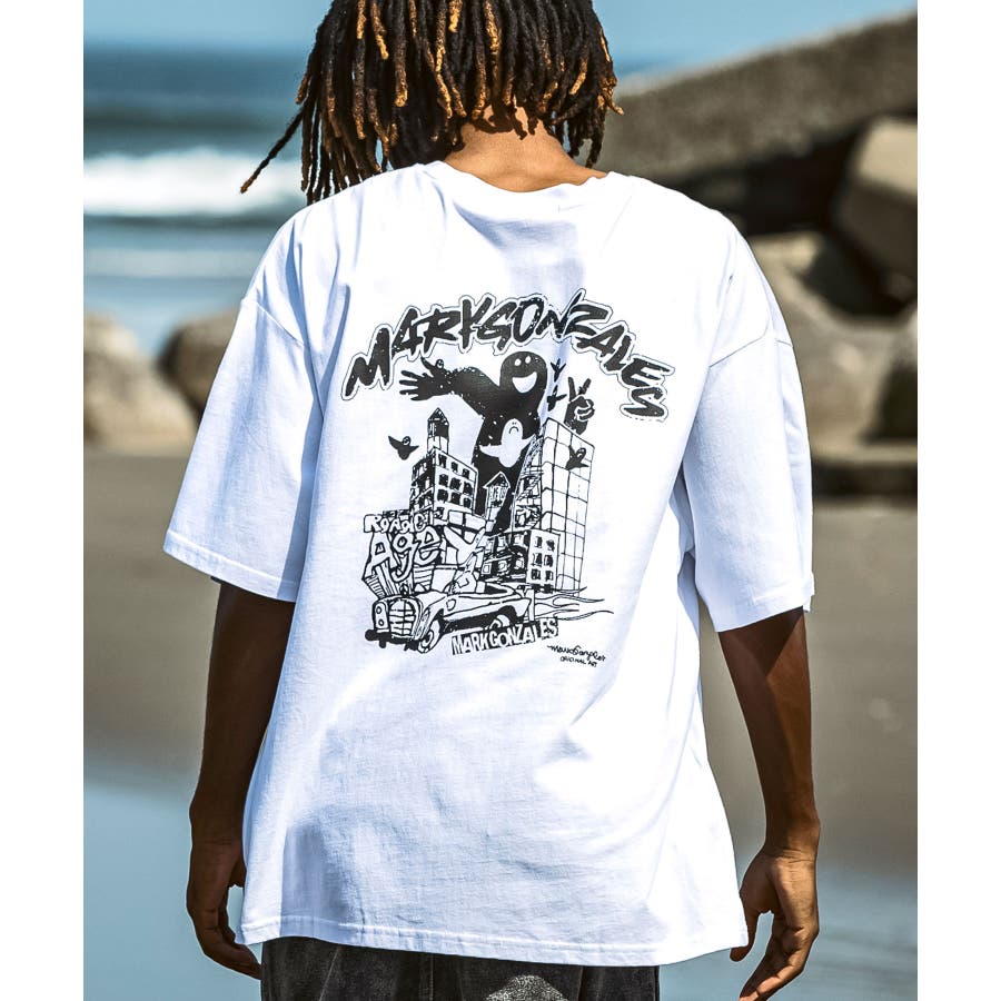 存在感のあるバックプリントを活かしたシンプルなスタイリングがおすすめ。