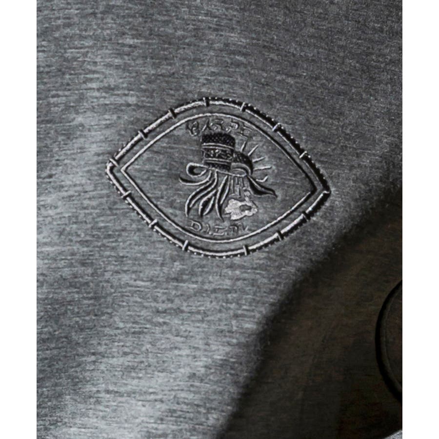 前見頃にブランドロゴ刺繍を施し、ブランドアイコンであるメタルチップを取り付けた遊び心のある一着です。