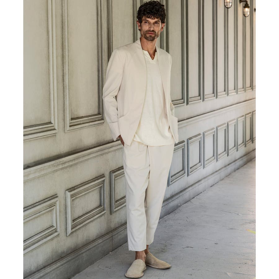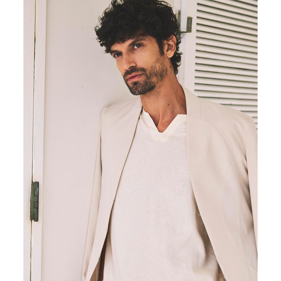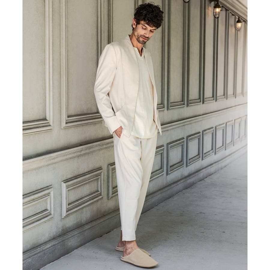 清涼感と軽さが特徴的なウール混のポリエステルギャバジンを使用しています。