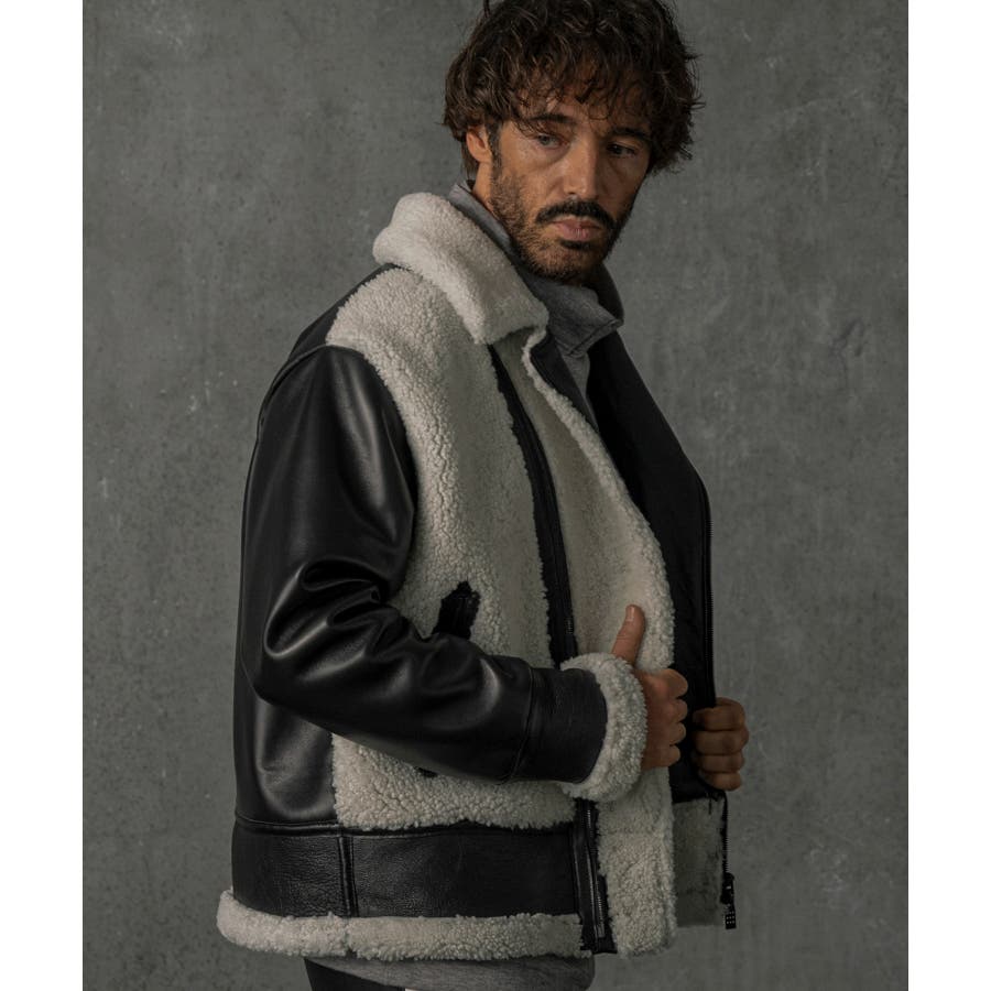 上質なムートンと羊革をコンビで使用した、迫力のあるボンバータイプのデザインです。