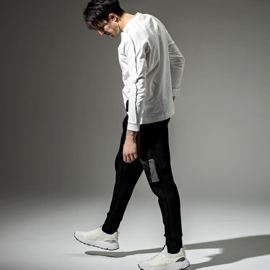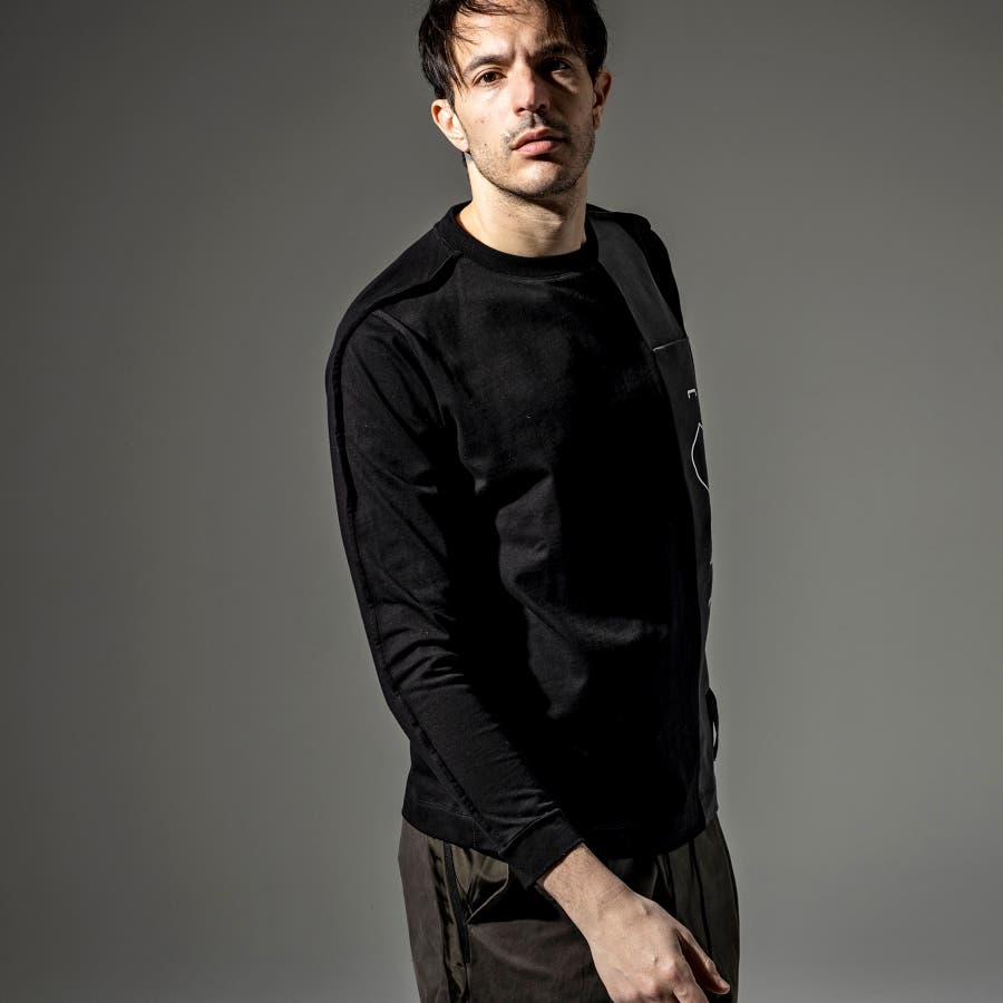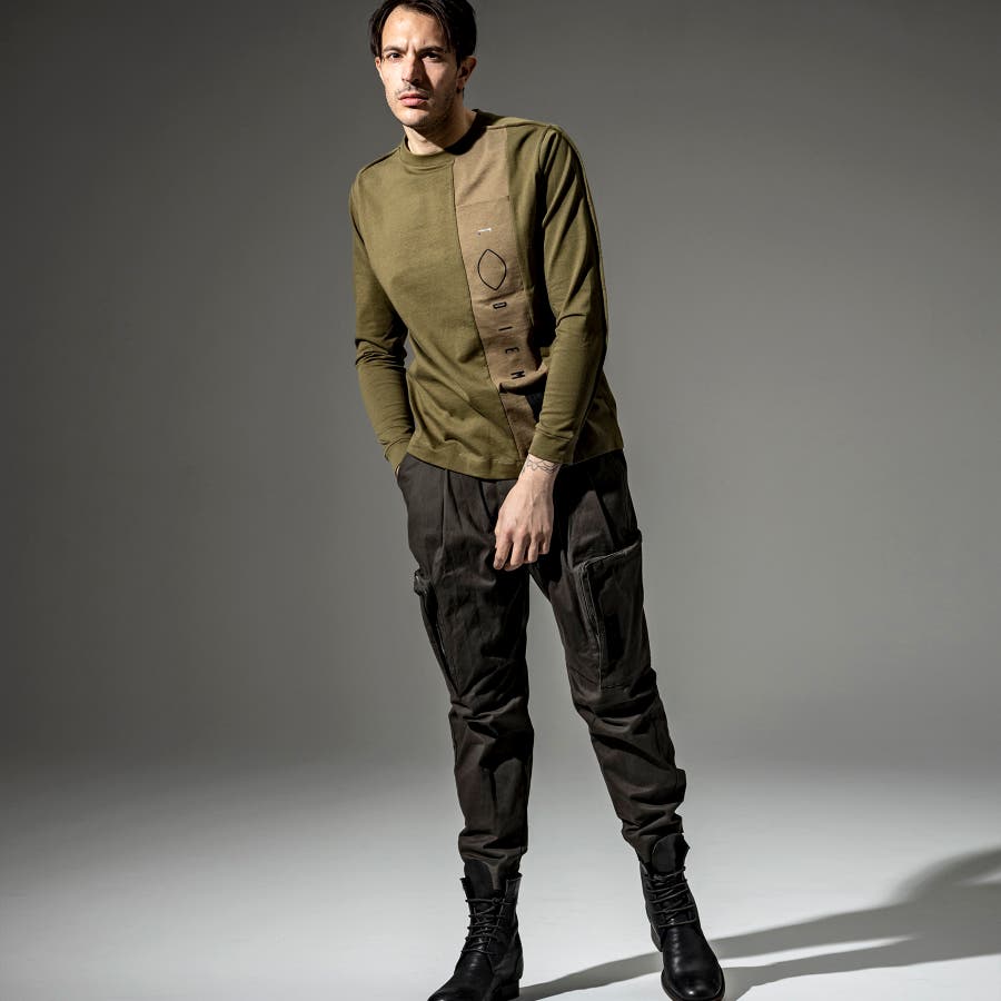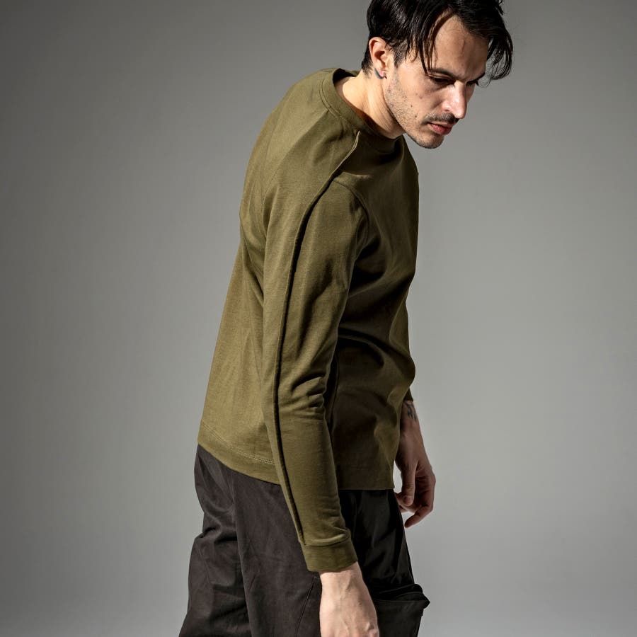 袖のタックを表にだしたような、ブランド独自のパターンワークが特徴のTシャツ。