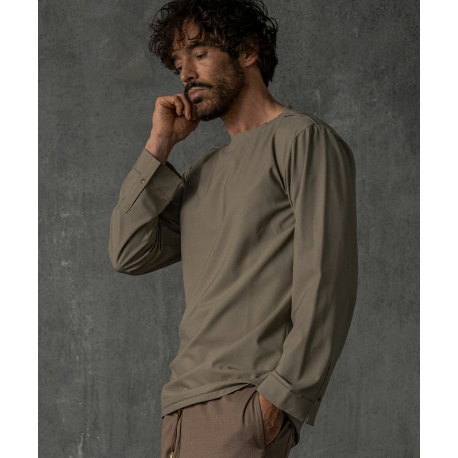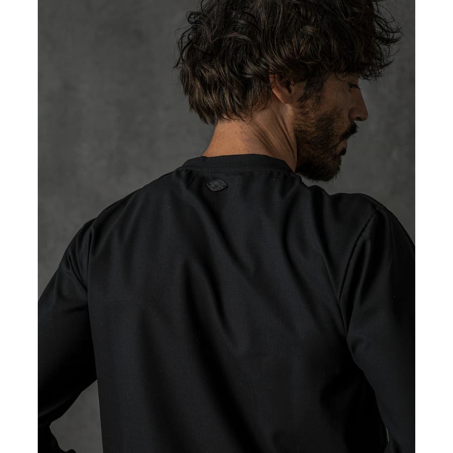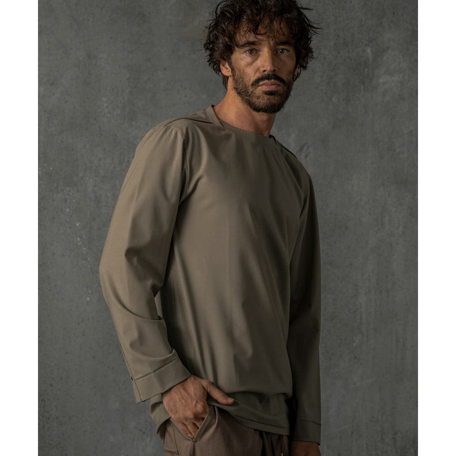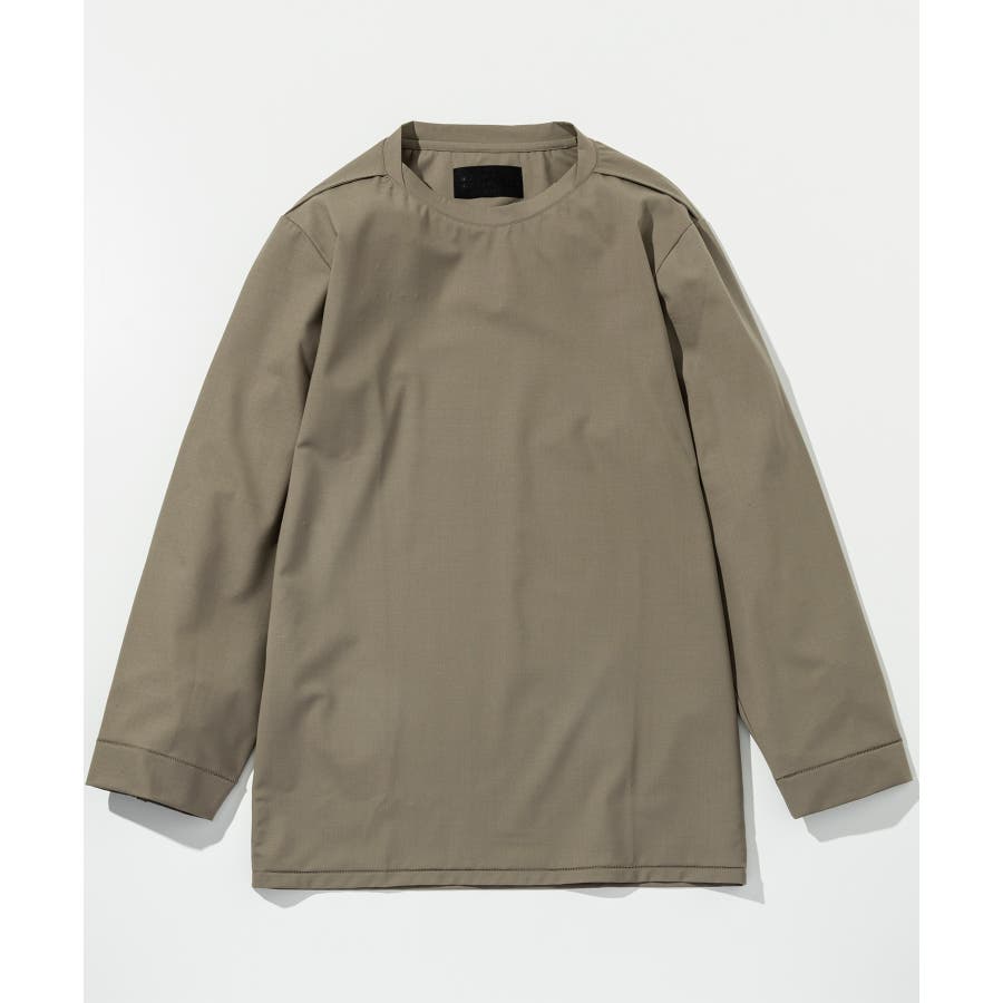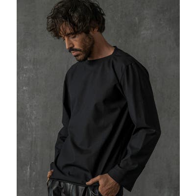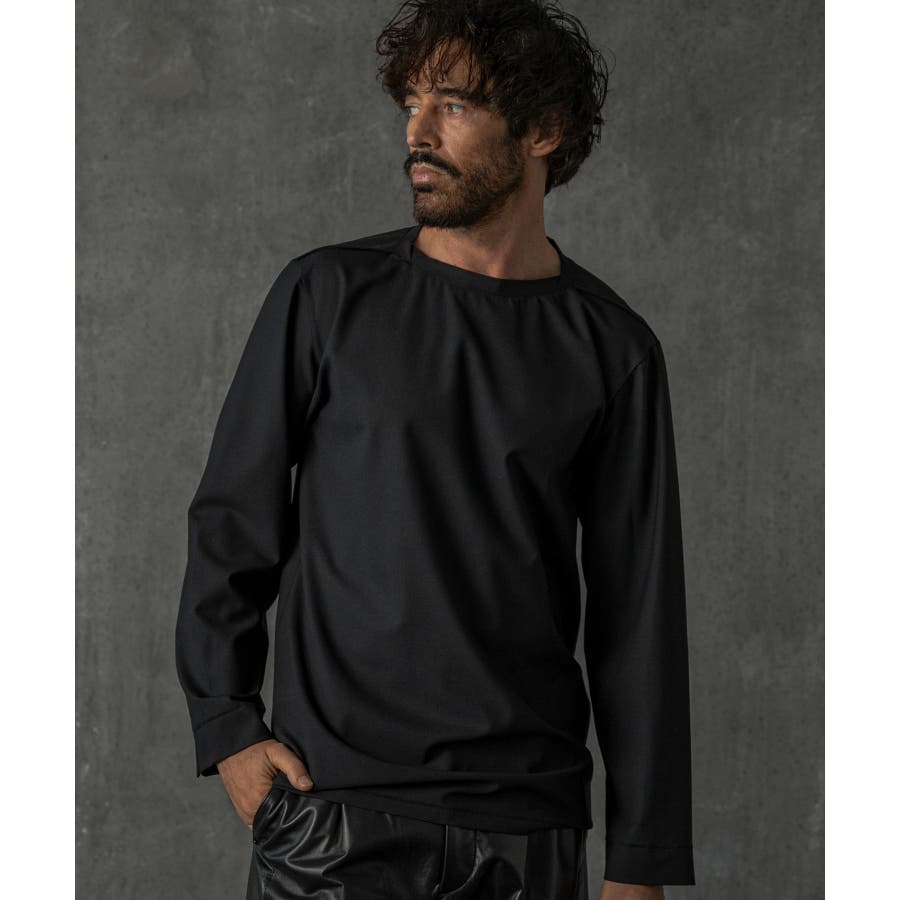 ラウンドカットの衿ぐりが特徴的なロングスリーブTシャツ。