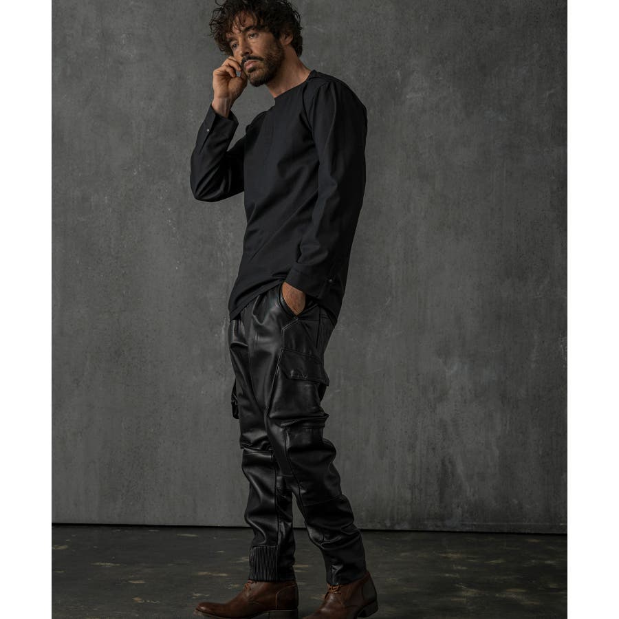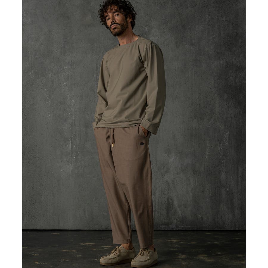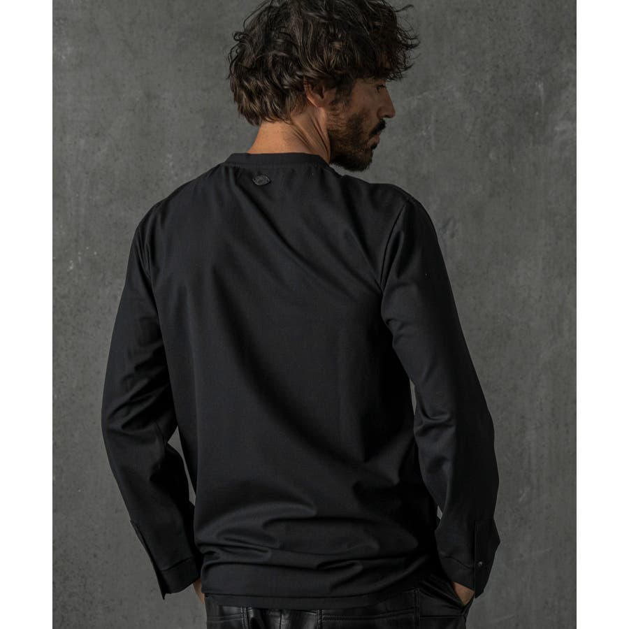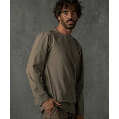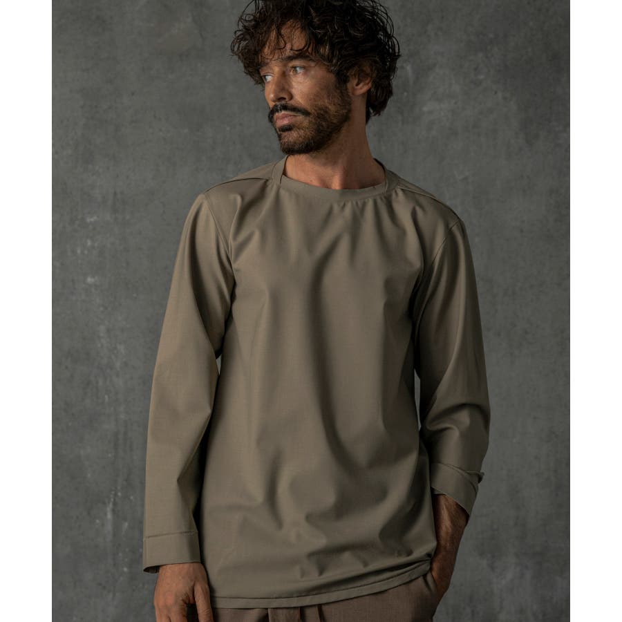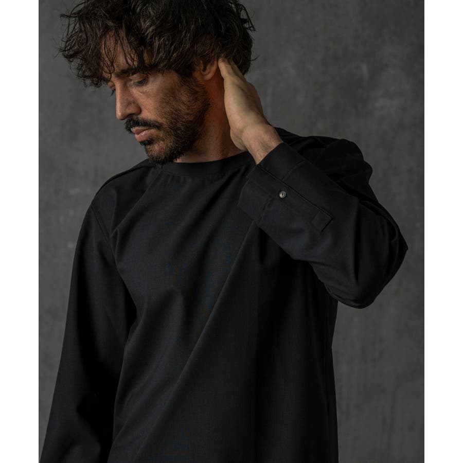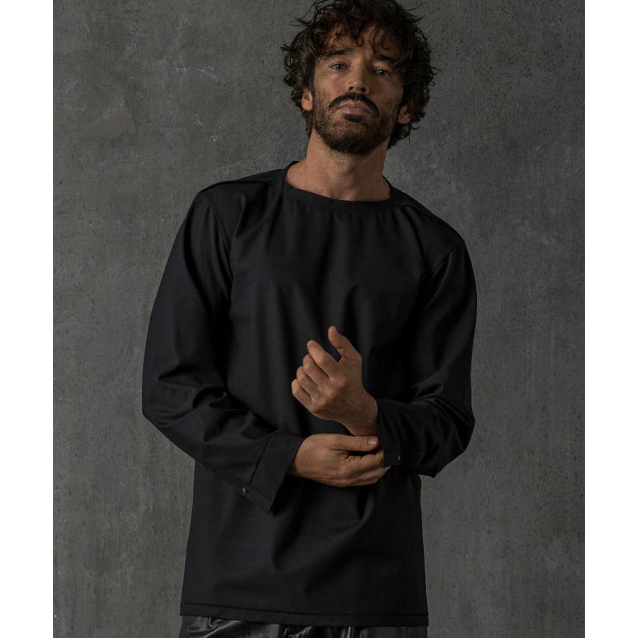 ラウンドカットの衿ぐりが特徴的なロングスリーブTシャツ。