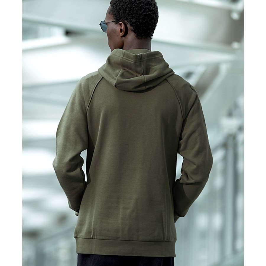 肌触りの良いコットン製で、便利なフロントポーチポケット、袖のコントラストロゴ、ストレッチニットのトリミングが特徴。