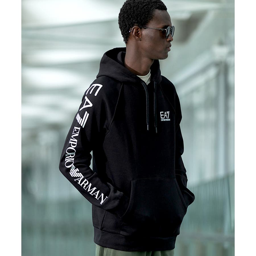 右袖にコントラストの効いたEmporio Armani EA7ロゴのプリント