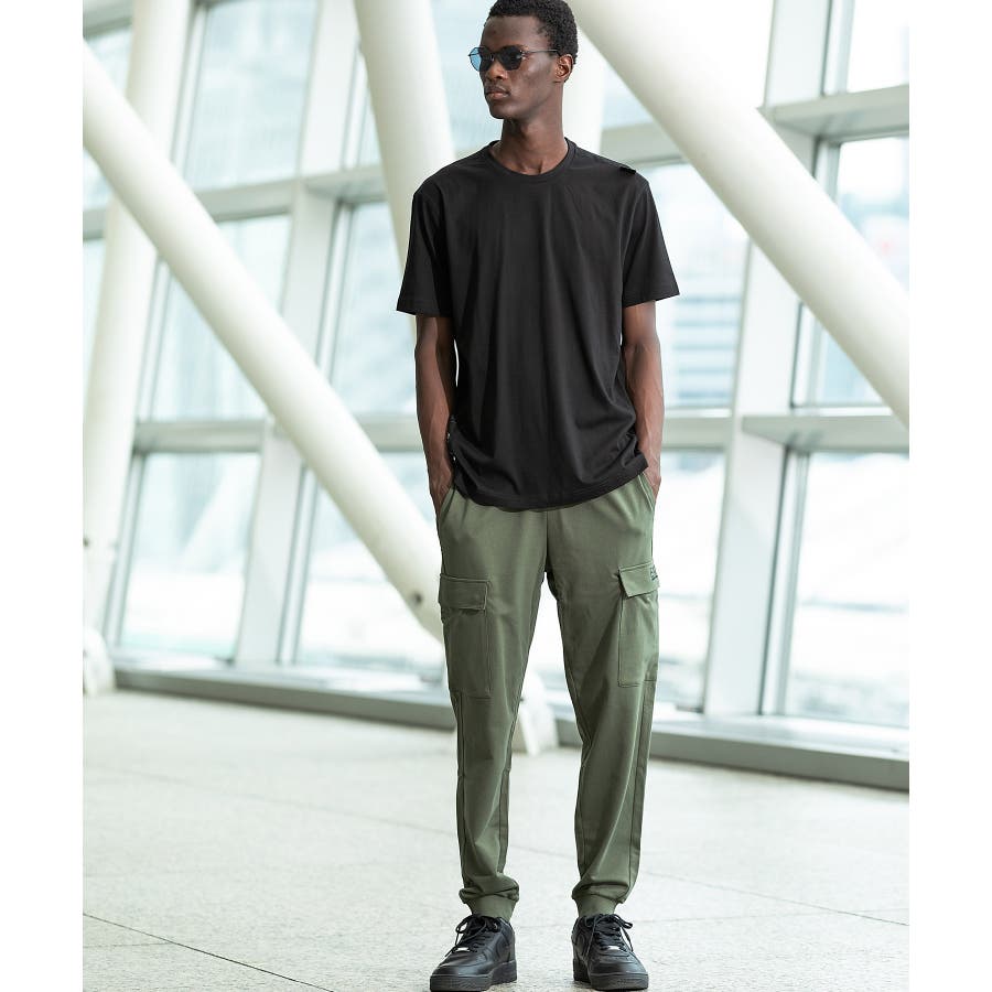 レギュラーフィットのスタイルで、右サイドにはロゴシリーズを彷彿とさせるコントラストの効いたロゴテープのディテールが施されています。