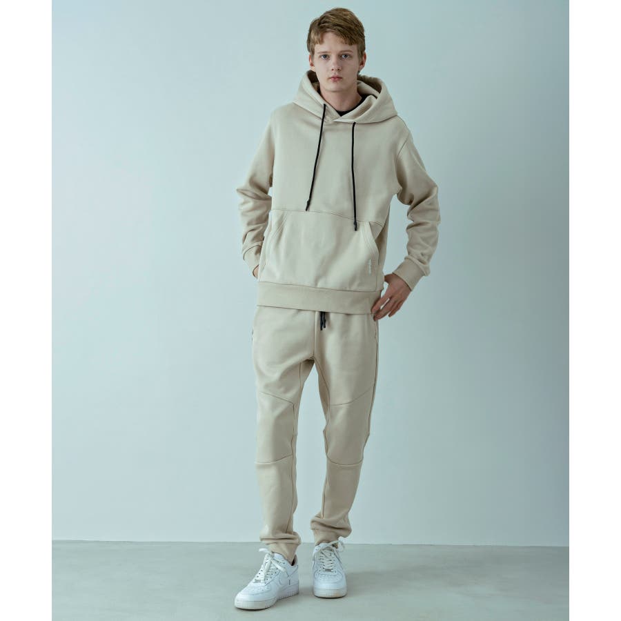 無駄を削ぎ落としたミニマルなデザインながら、構築的なラインが美しいシルエットを形成。 生地には保温性の高い裏起毛素材を採用し、柔らかく包み込むような極上の肌触りを実現しています。
