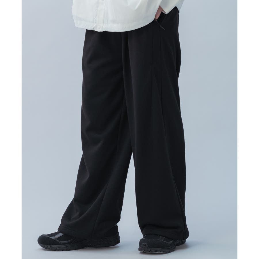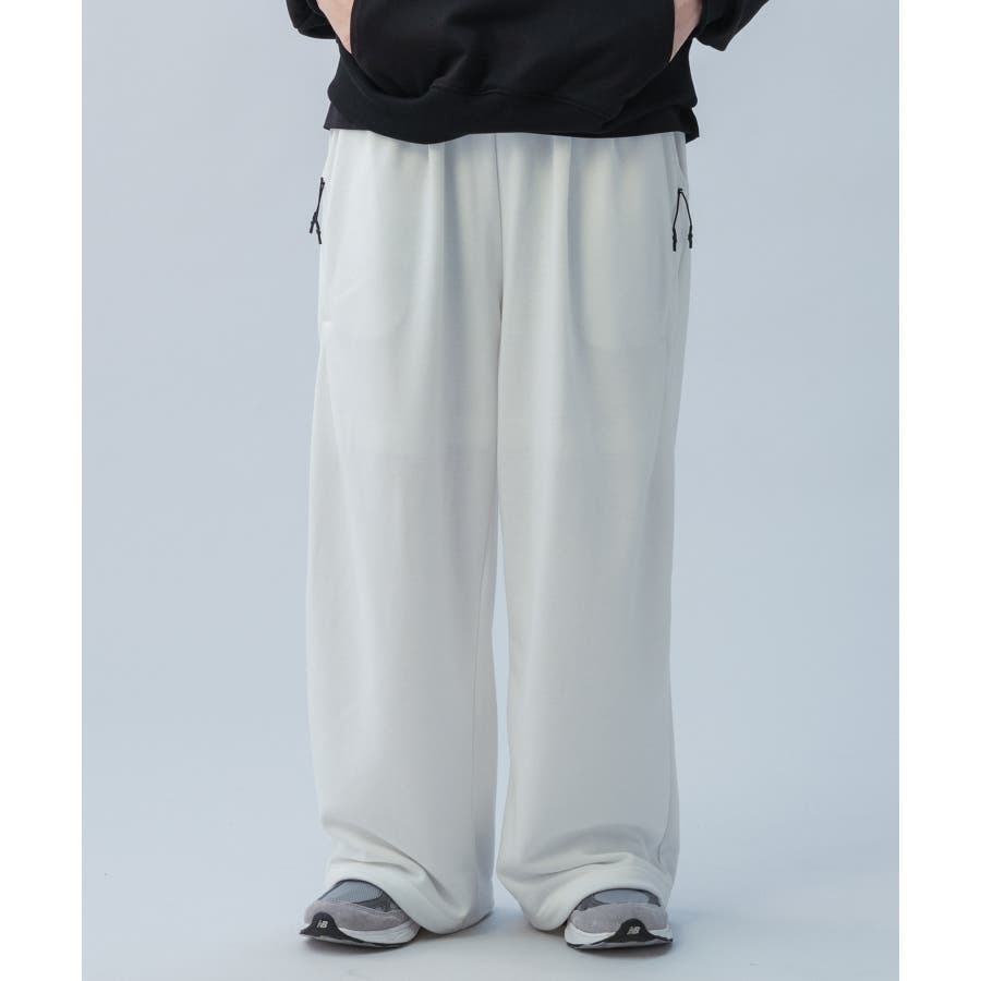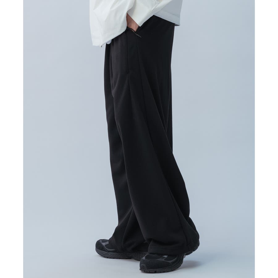 シルエットはトレンド感のあるワイドストレートで、ウエストには2タックを施しています。