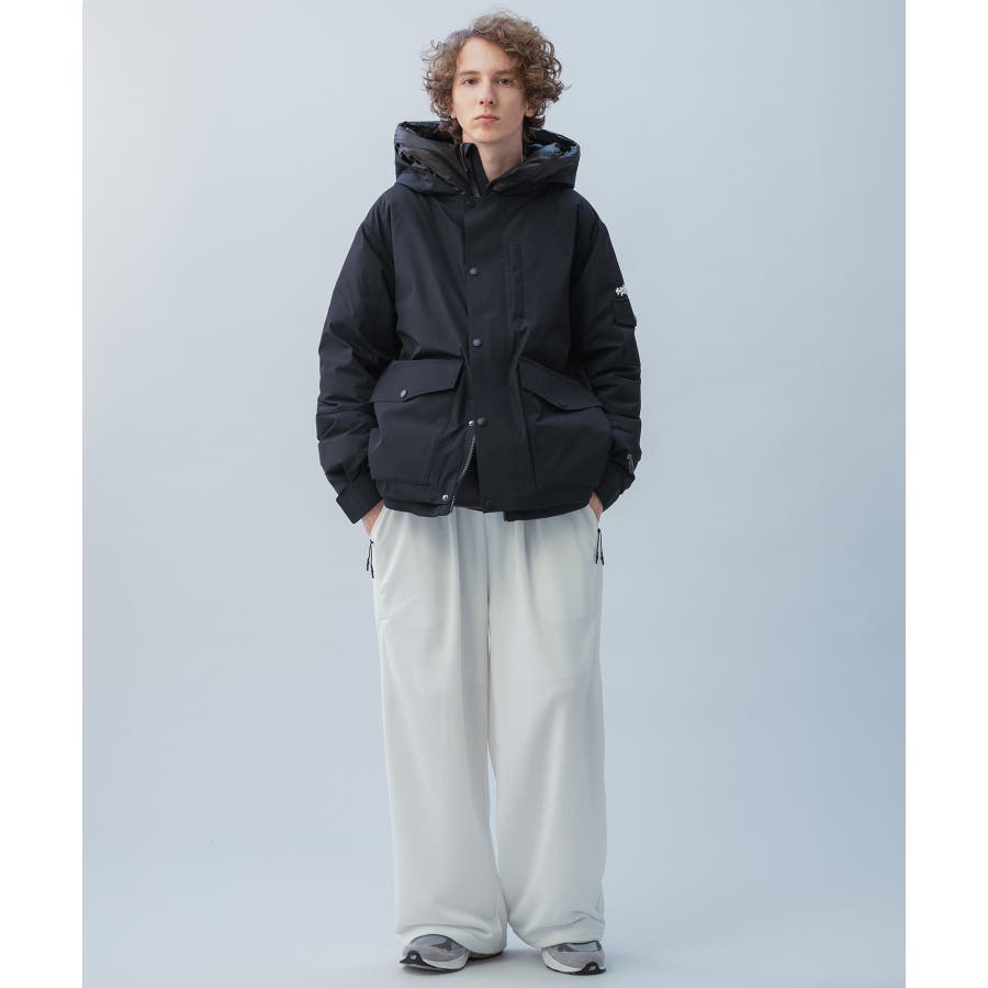 裾はドローコード仕様で、絞ることでワイドシルエットから丸みのあるコクーンシルエットへと変化。