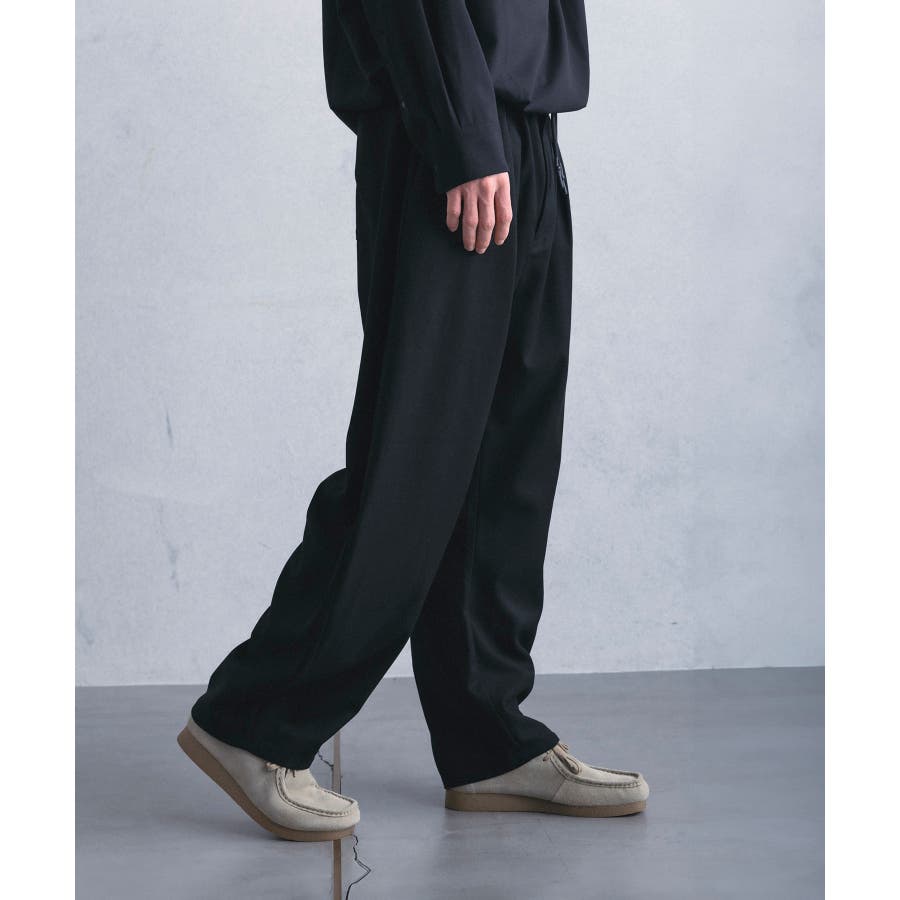 シルエットはゆったりとしていますが、センタープレスや落ち感のある生地のおかげで、キレイめなコーディネートとも相性抜群。
