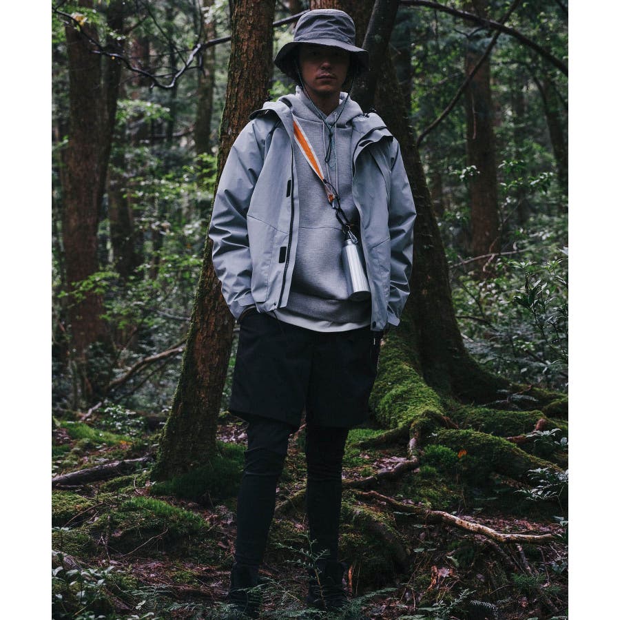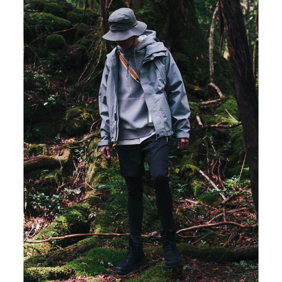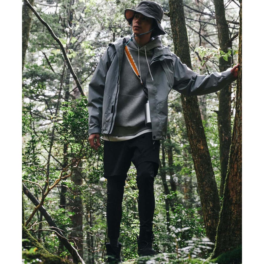 ・フードや裾口のドローストリングなど各所にアジャスターを備え、体温の調節に役立つことはもちろん、絞ってシルエットの調整を楽しむことも可能