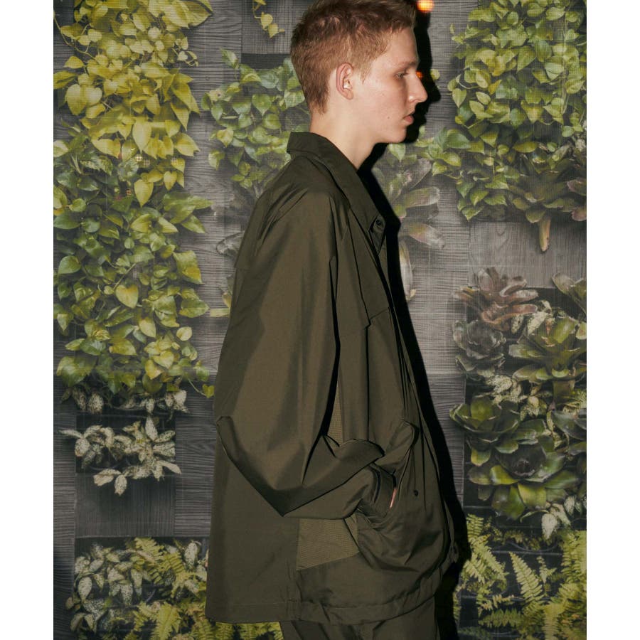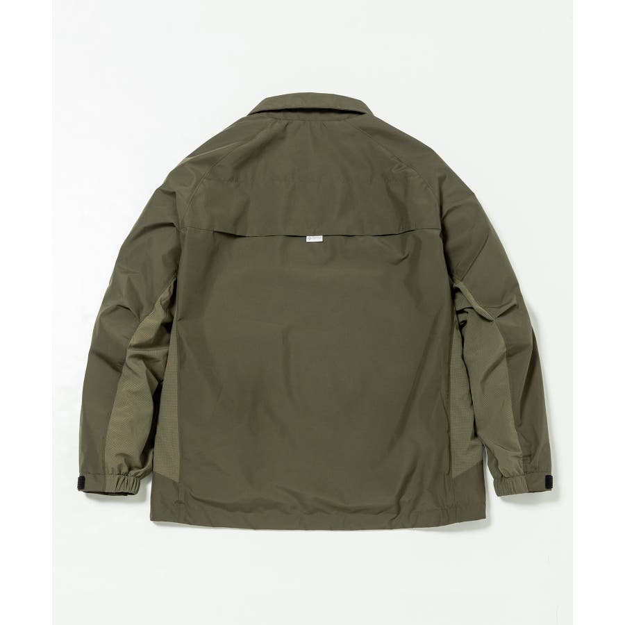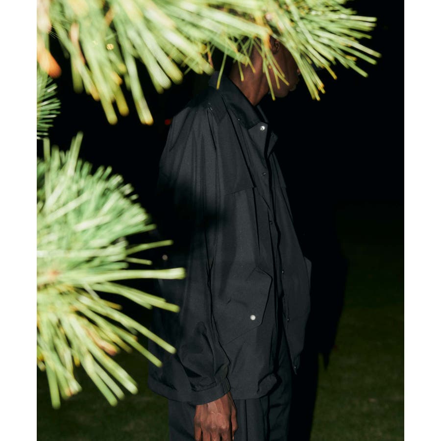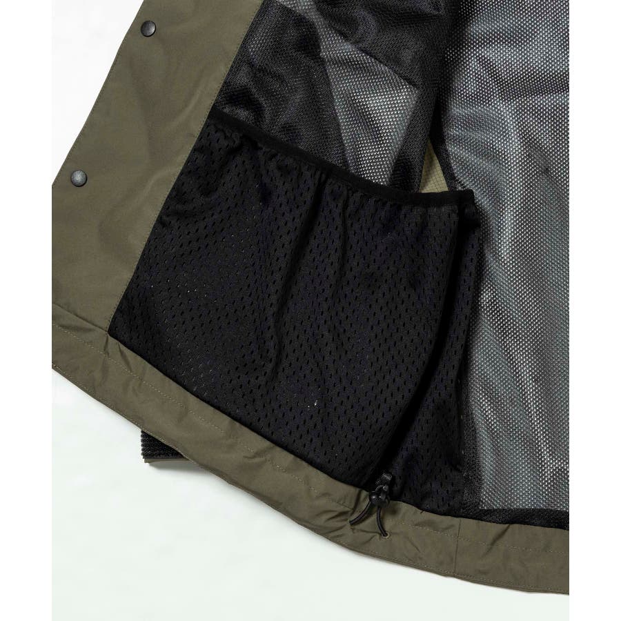 ストリートのド定番のコーチジャケットをハイスペックな生地と仕様でアウトドアでも対応可能なアイテムへと進化させています。ラミネーション生地において高温多湿な環境下での使用は蒸れと熱気が弱点でしたが、高通気撥水生地を腋下に使用することでその弱点を克服。雨の侵入を撥水機能で防ぎつつ、高通気生地で常に熱気と蒸れを効率的にリリースさせます。