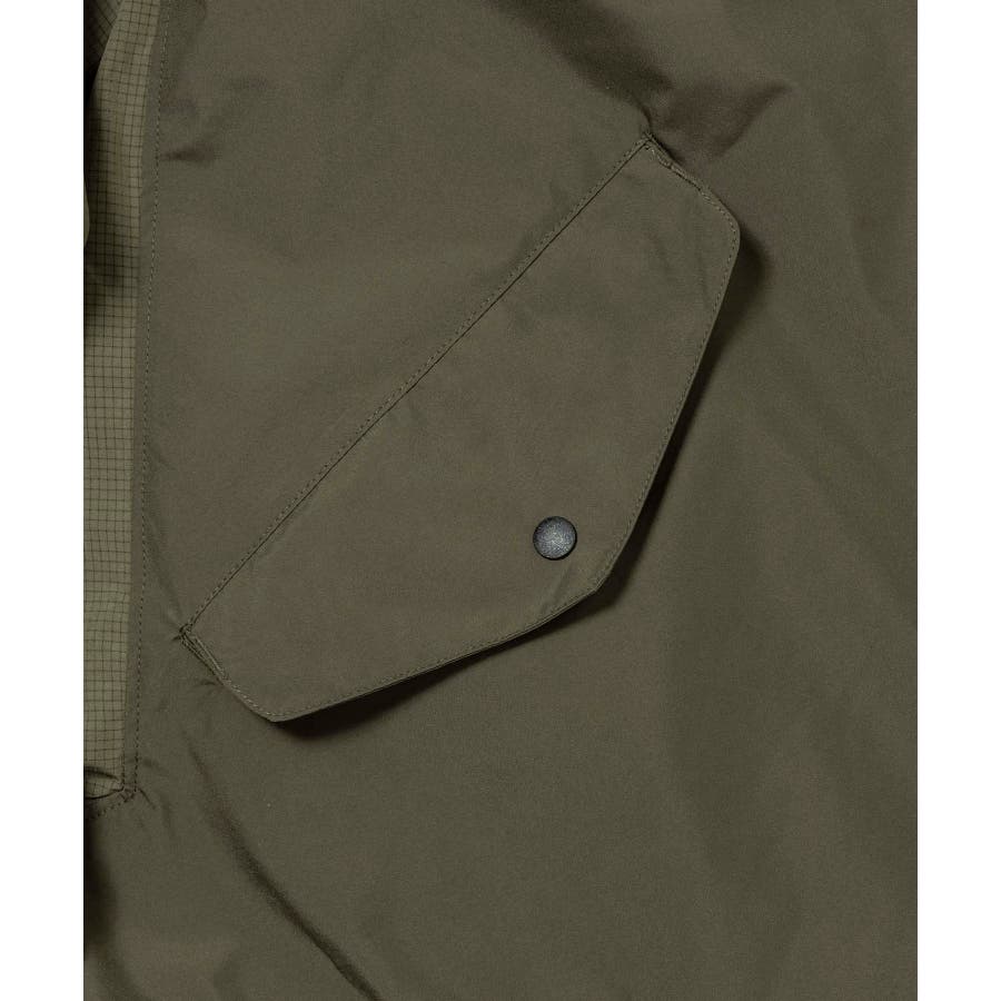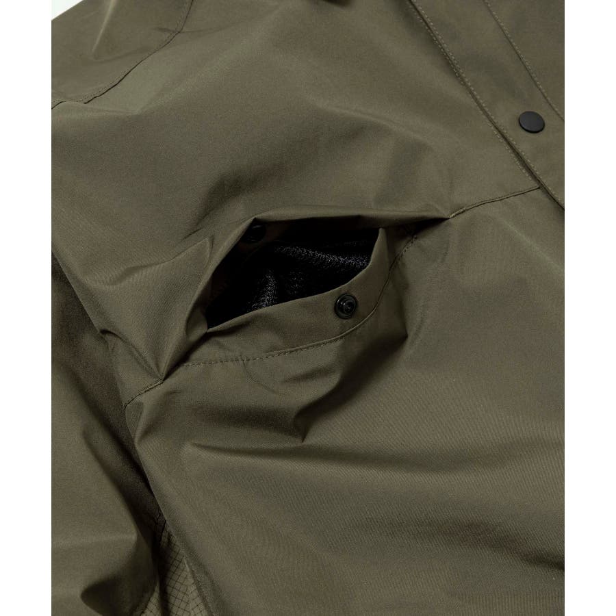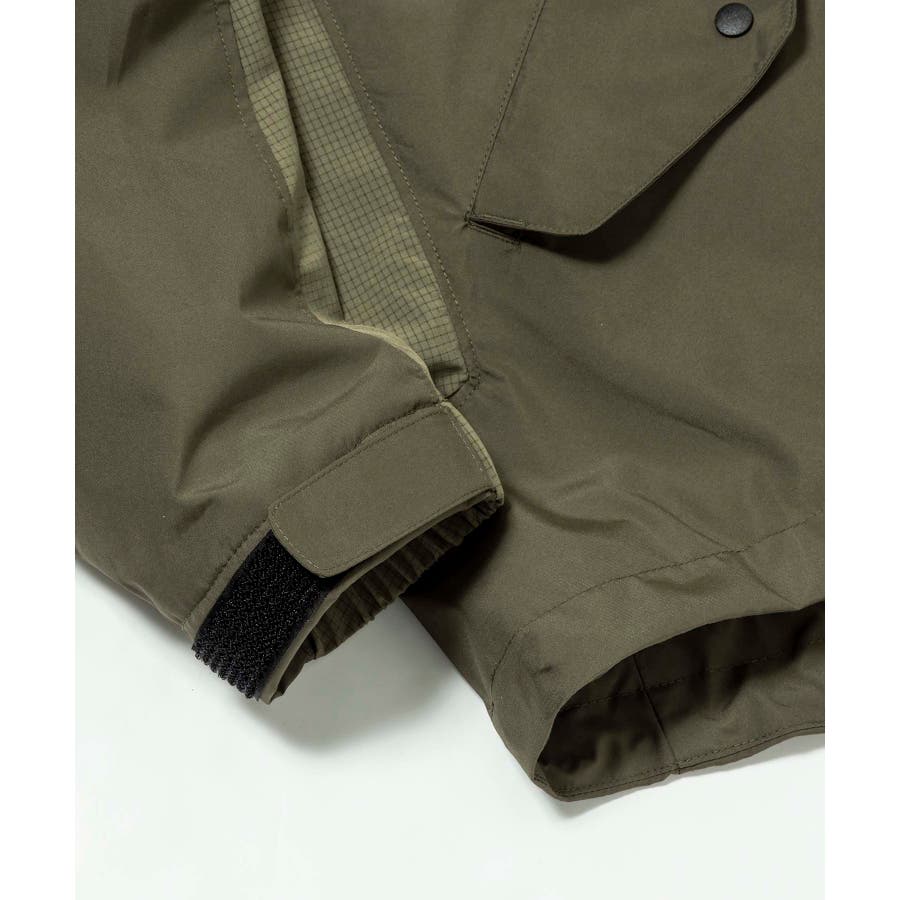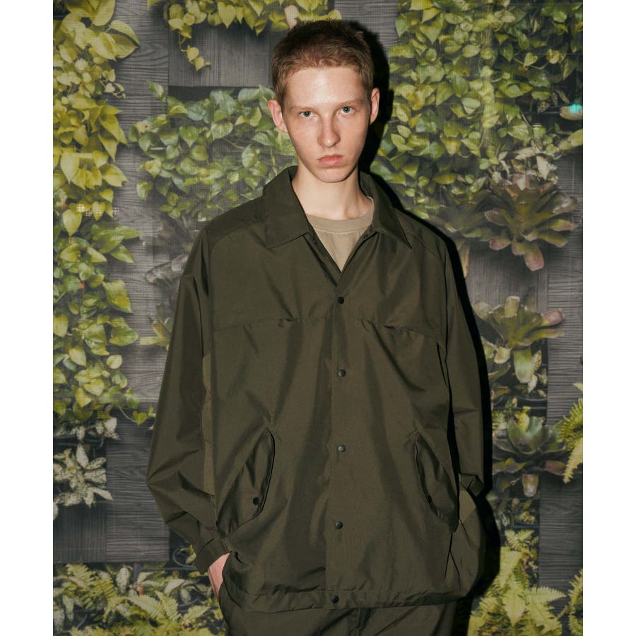 ストリートのド定番のコーチジャケットをハイスペックな生地と仕様でアウトドアでも対応可能なアイテムへと進化させています。ラミネーション生地において高温多湿な環境下での使用は蒸れと熱気が弱点でしたが、高通気撥水生地を腋下に使用することでその弱点を克服。雨の侵入を撥水機能で防ぎつつ、高通気生地で常に熱気と蒸れを効率的にリリースさせます。