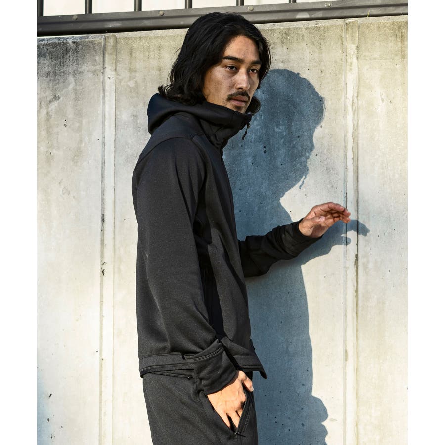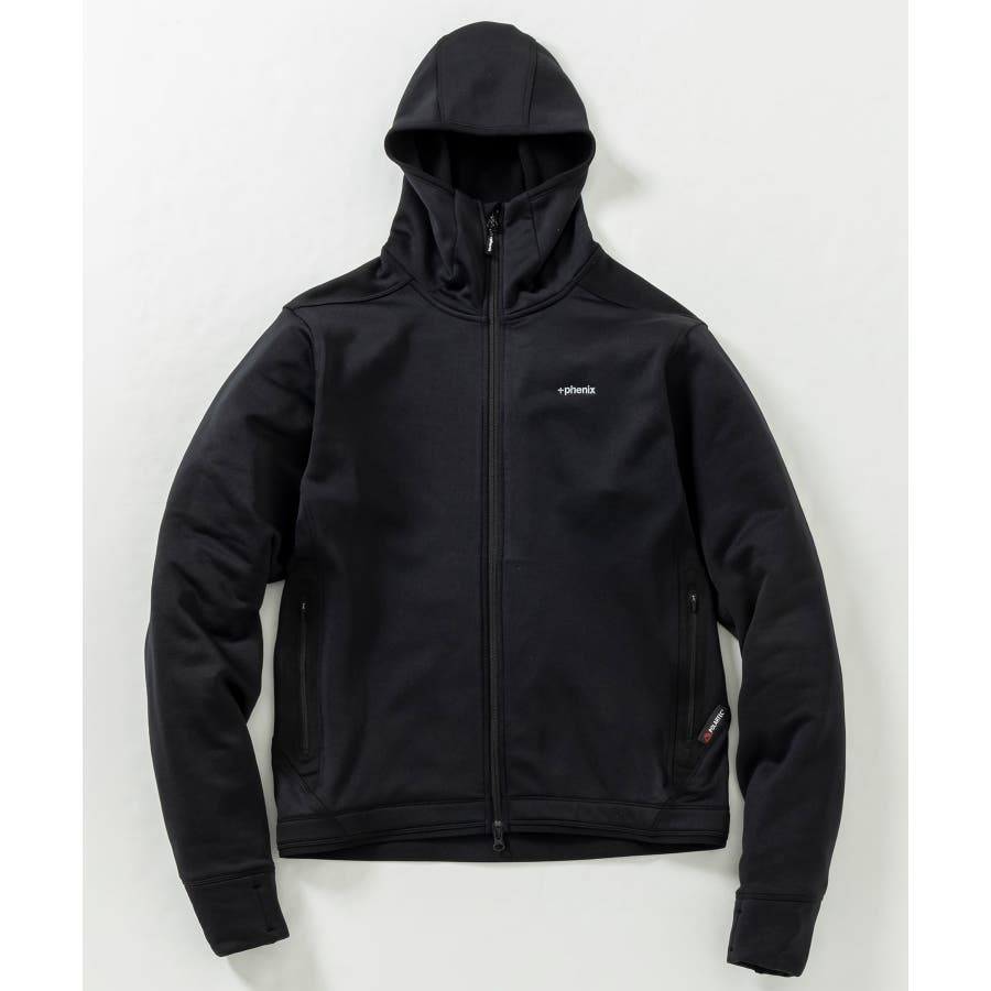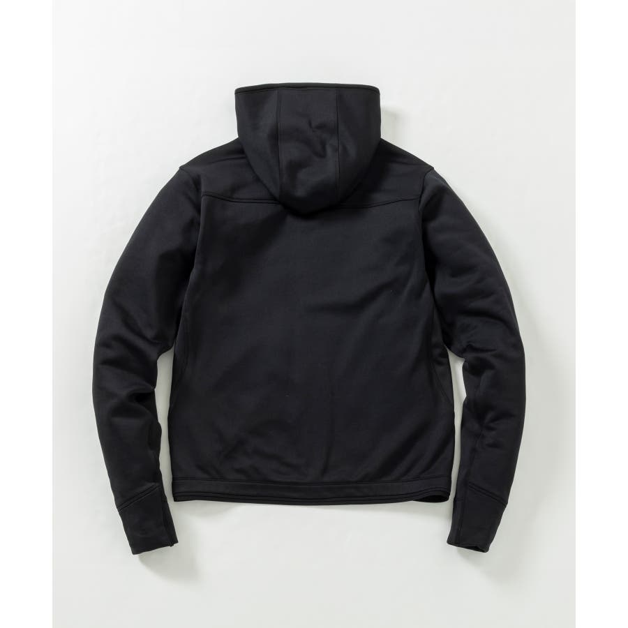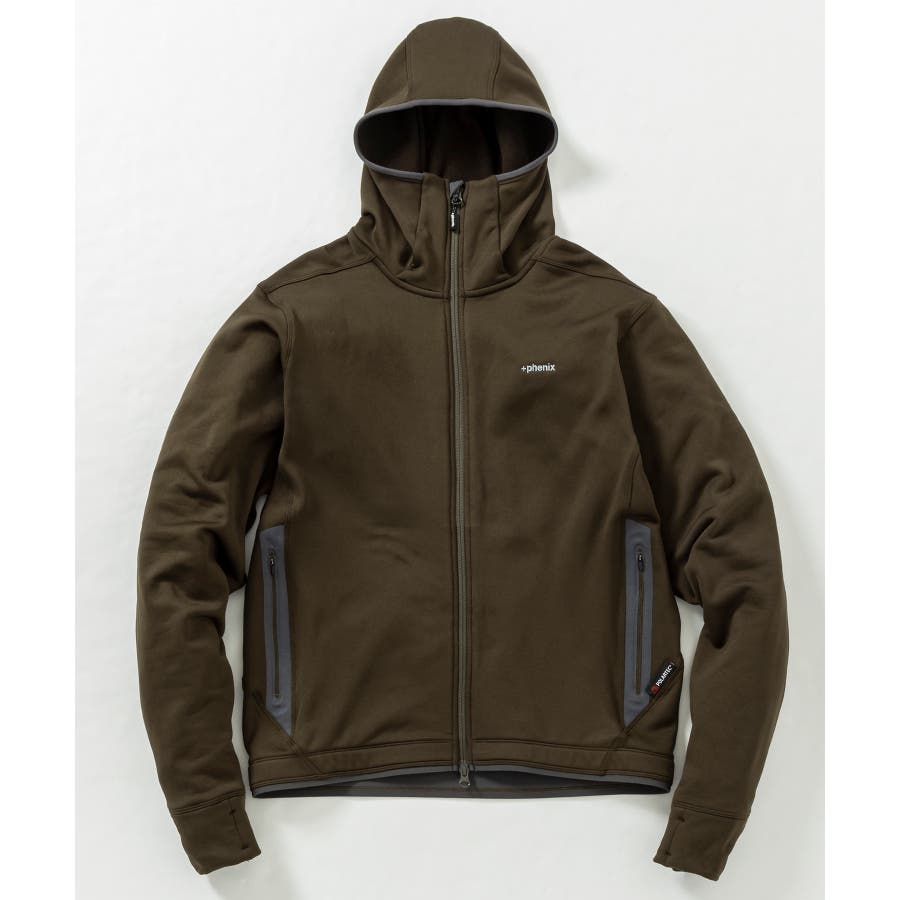 ポーラテック社製のパワーストレッチ素材を使用しており、着用時の快適さを追求しているジップアップフーディー。