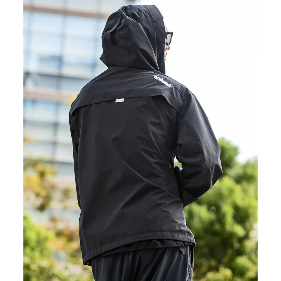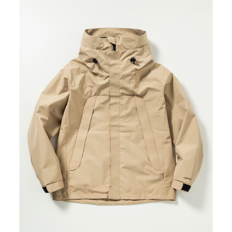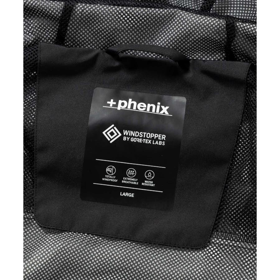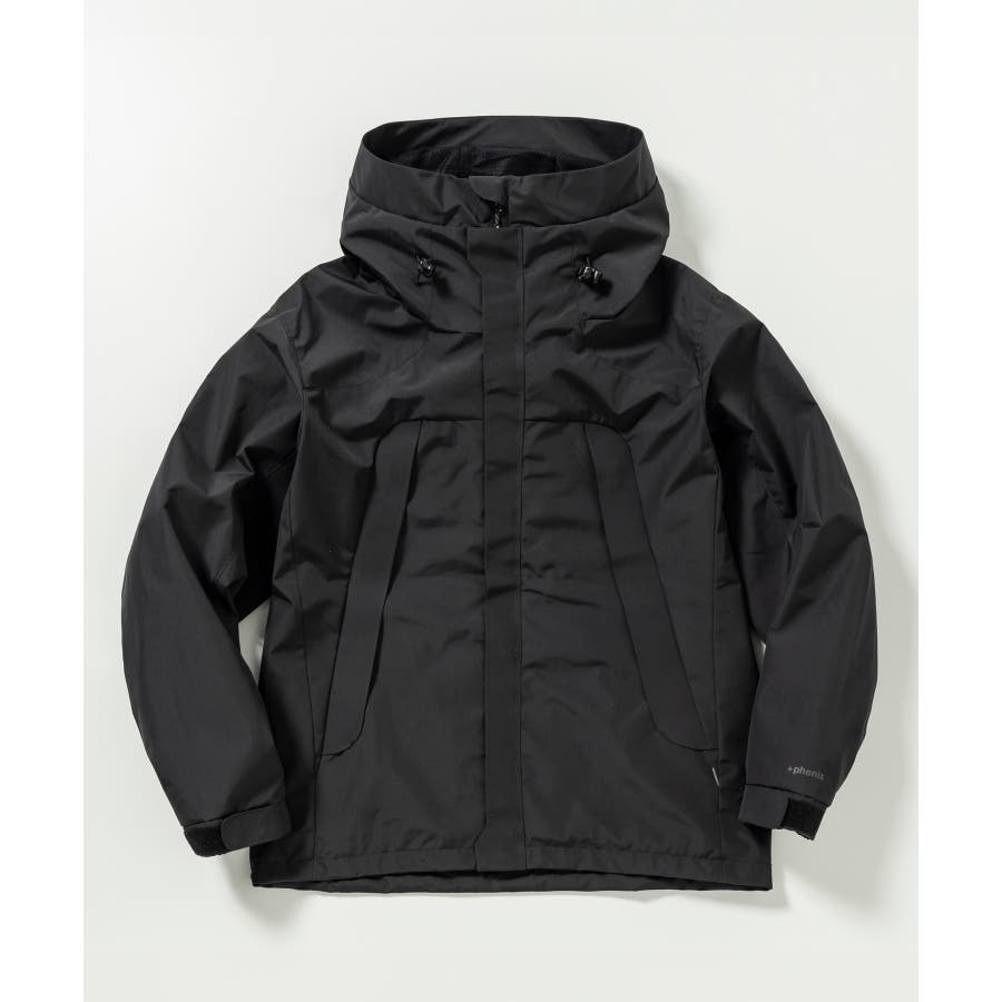背中に施された「+phenix」の立体的な3D刺繍が印象的な、洗練されたデザインのマウンテンパーカー。