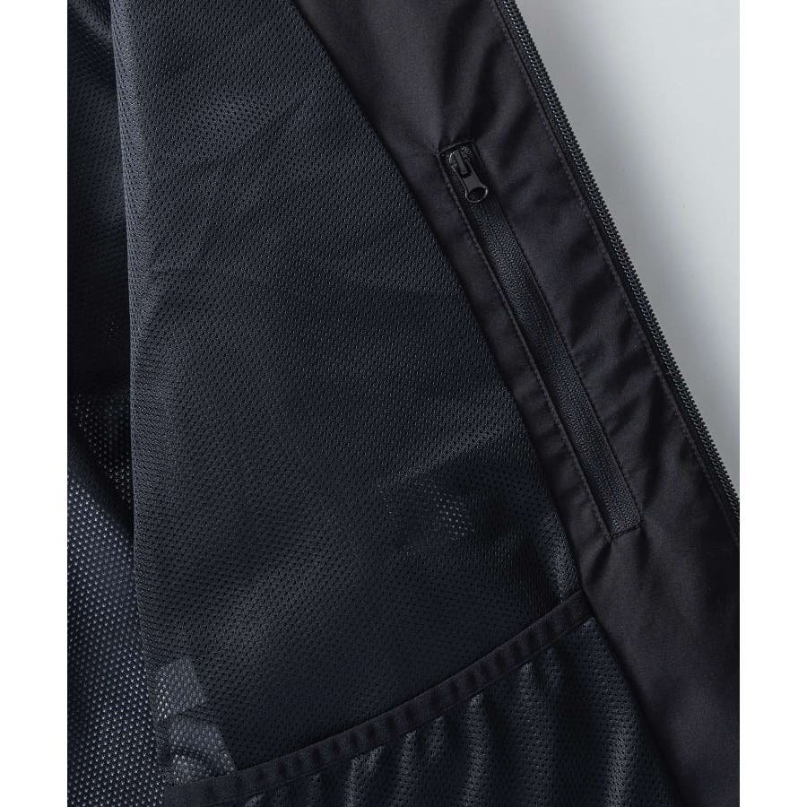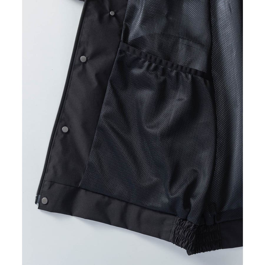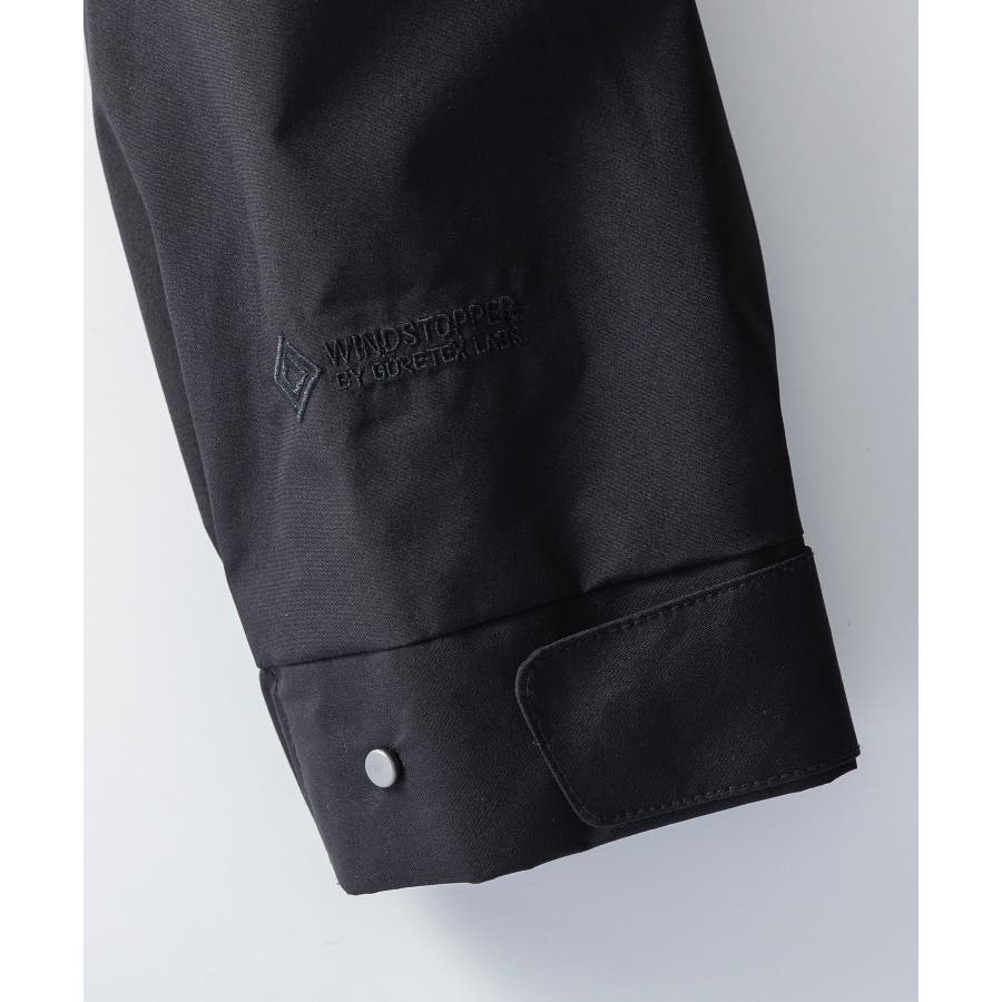 WINDSTOPPER ファブリックを採用し、優れた防風性に加え、多少の雨なら十分に凌げる耐水性も備えた一着。